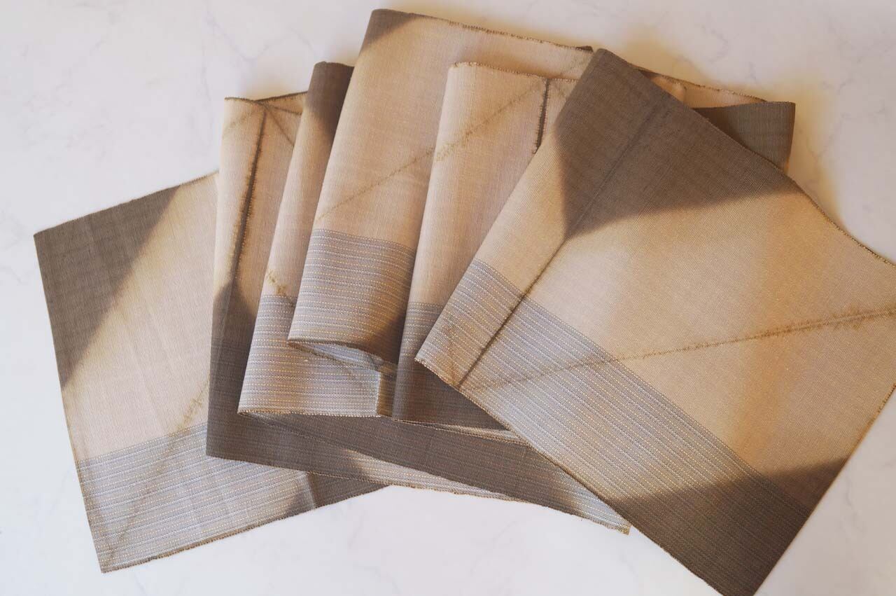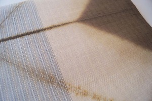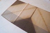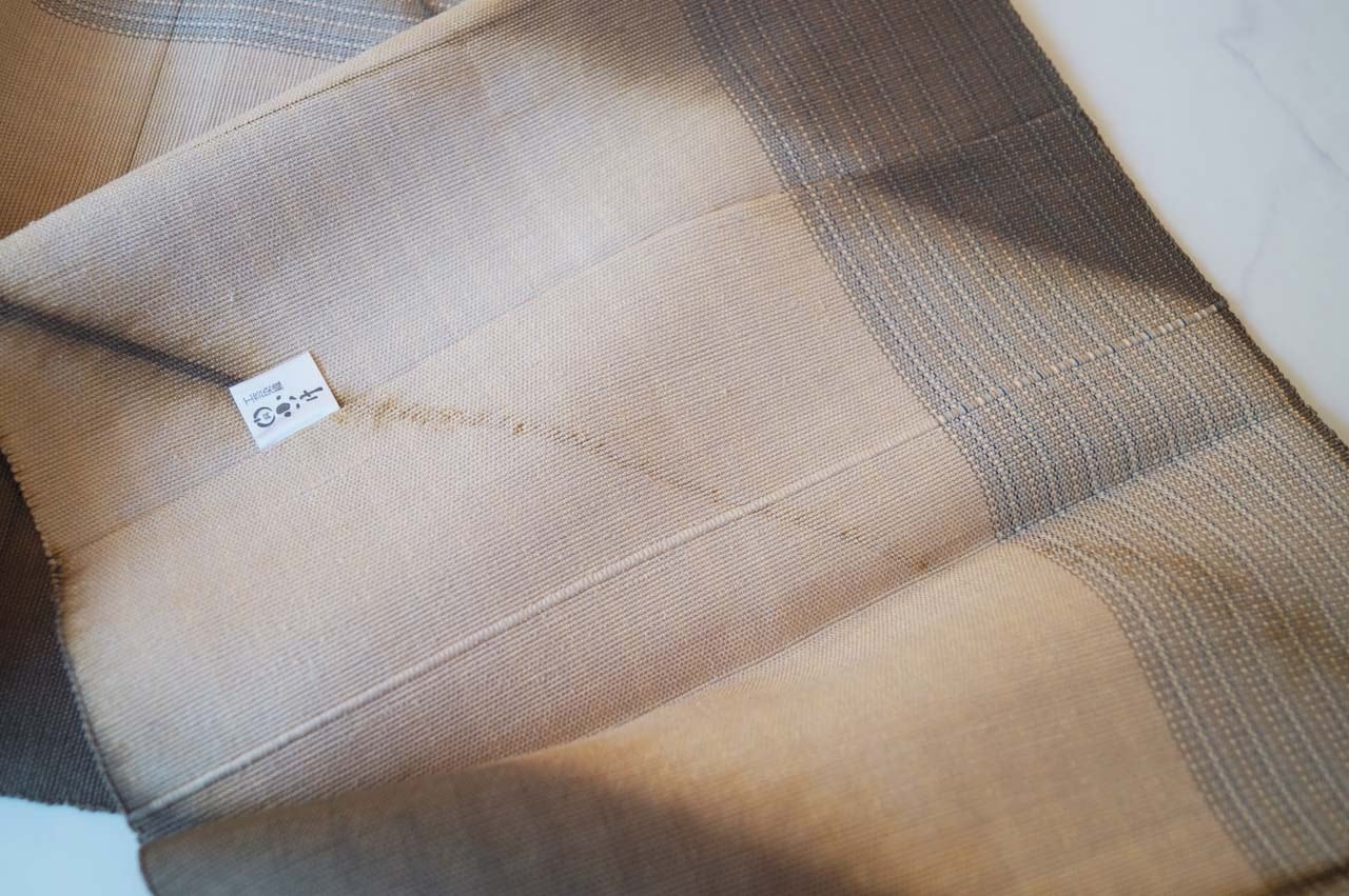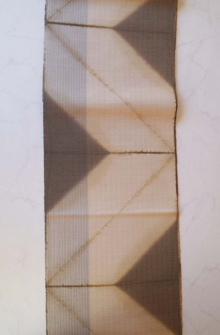亜麻色×涅色の縞に板締め絞り