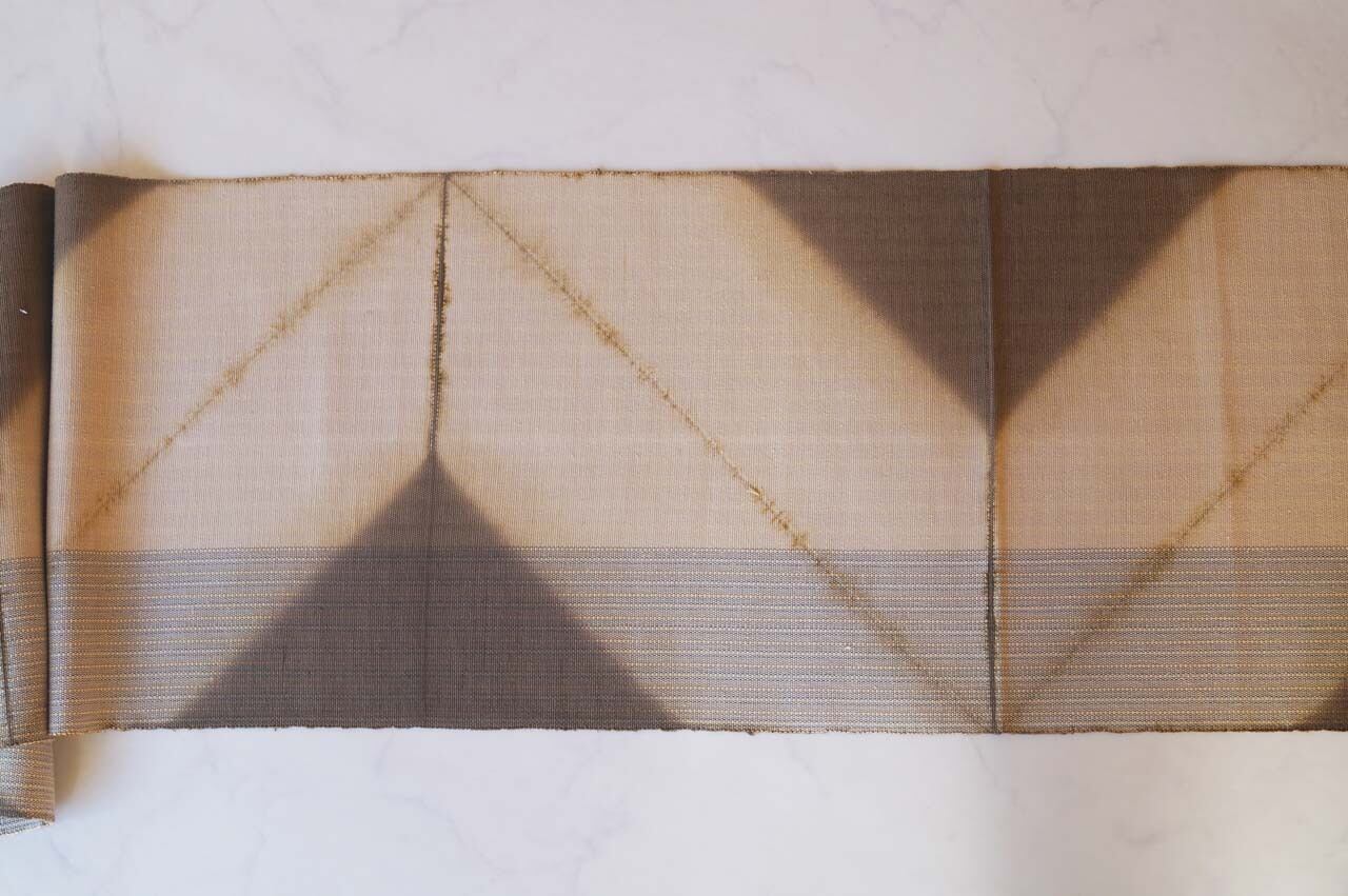 そして大きく三角に涅色で板締め絞り