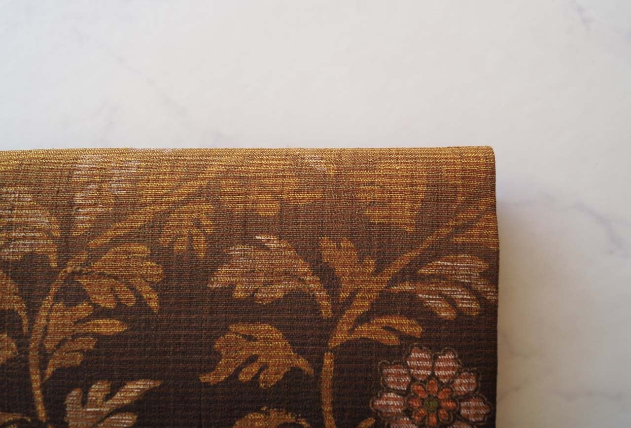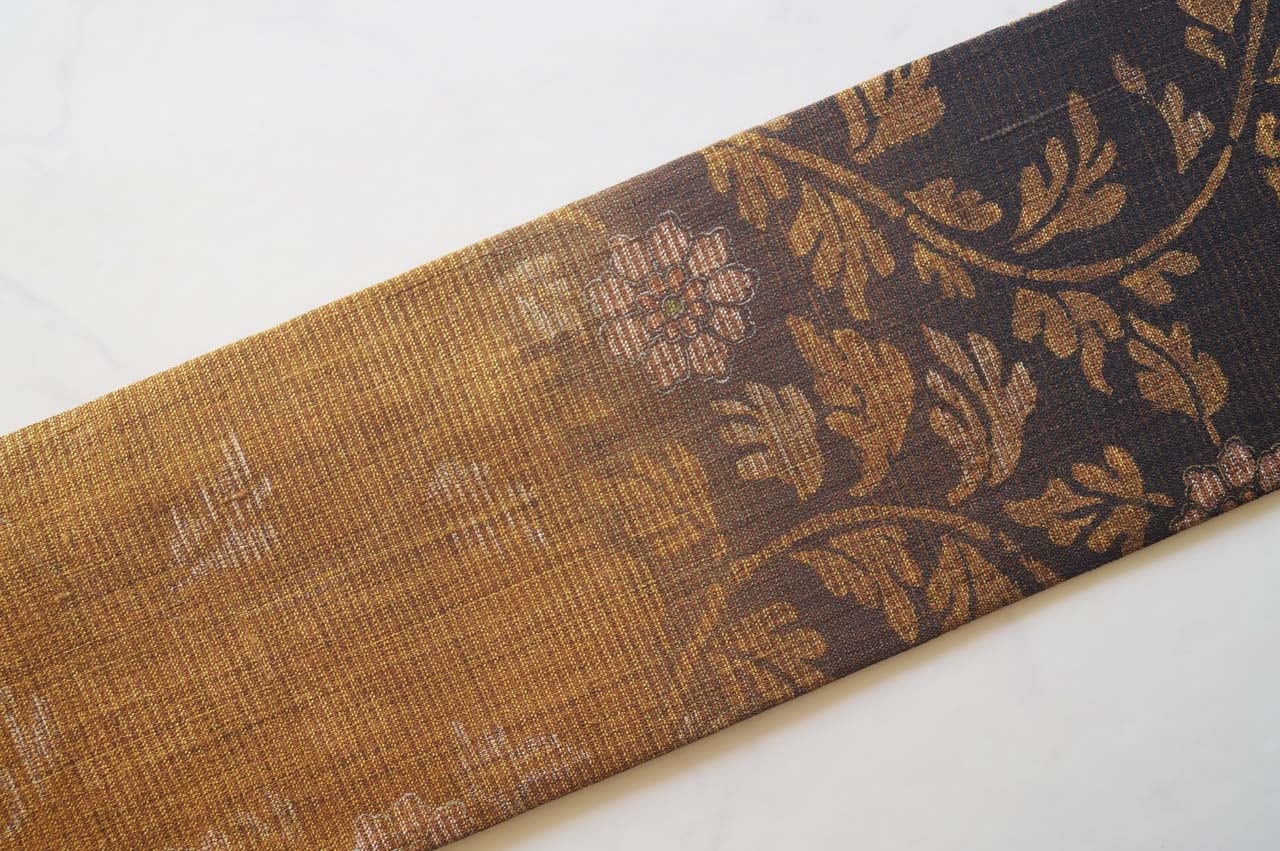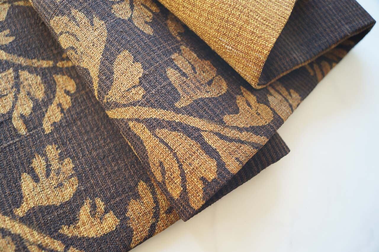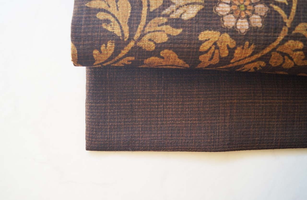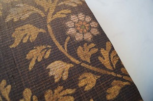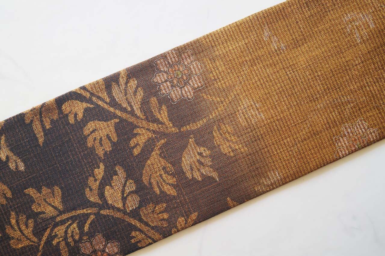 【なごや帯】柿渋染 抽象植物文 しょうざん生紬 なごや帯 証紙付き