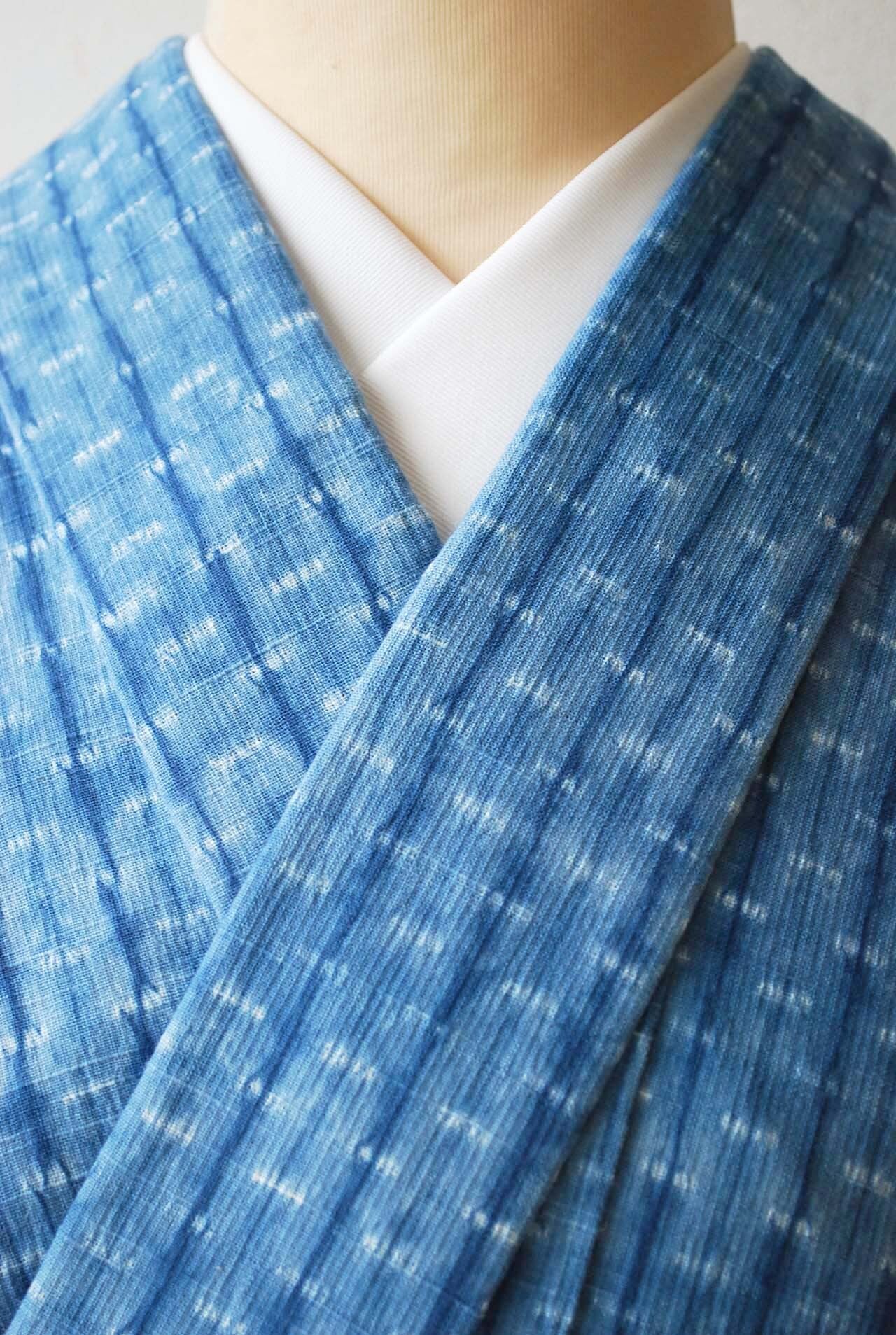 【単衣】小千谷織物 紺仁謹製 越後片貝絞り 薄縹色 単衣着物