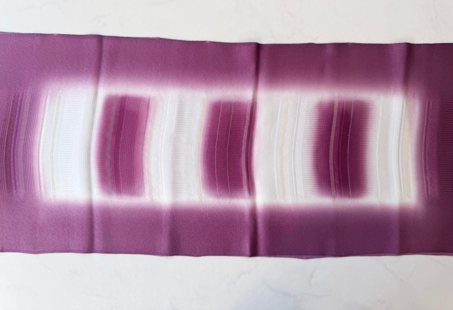 【帯揚げ】蒲葡×白 升目暈かしに変わり段地紋 帯揚げ 250909㉚