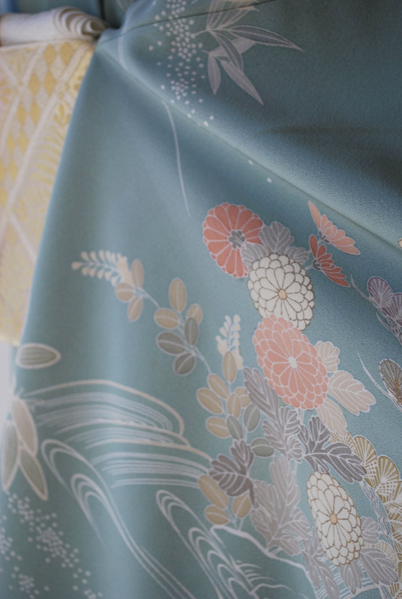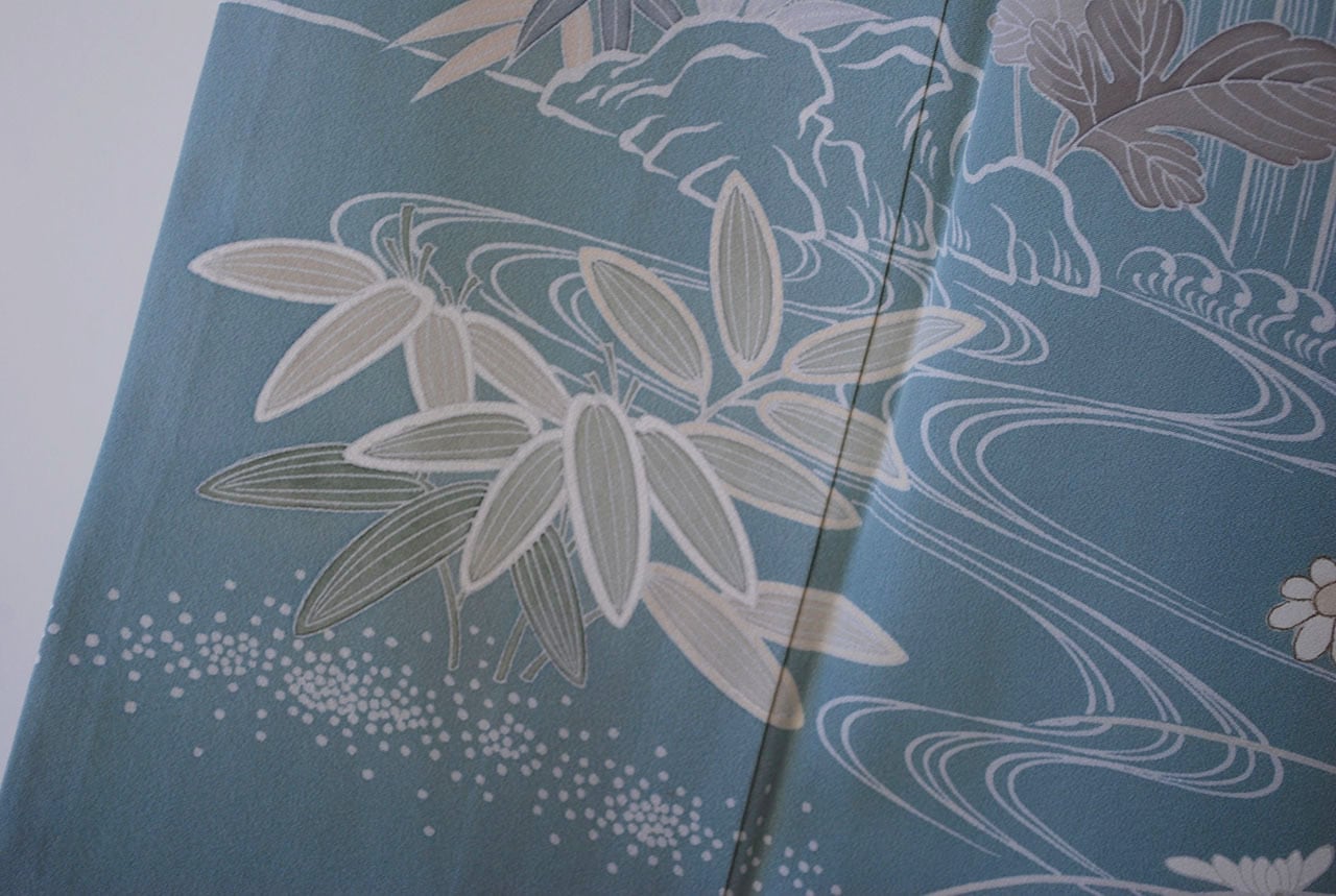 滝の流れは、日本の染織芸術において特に吉祥的で格調高い文様です。
