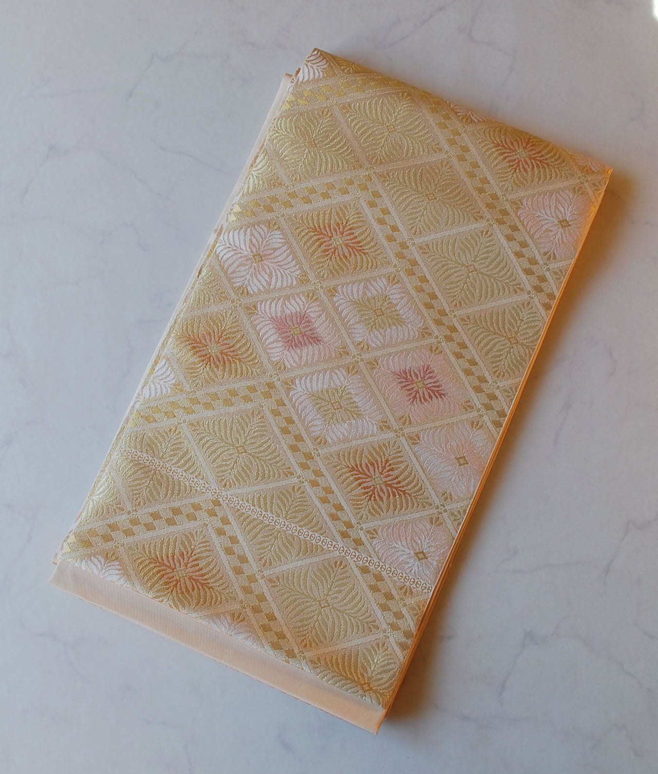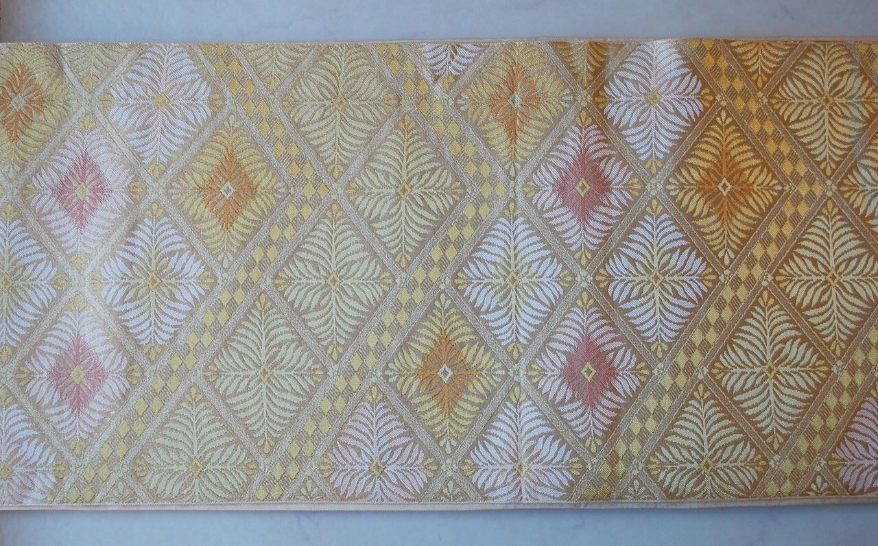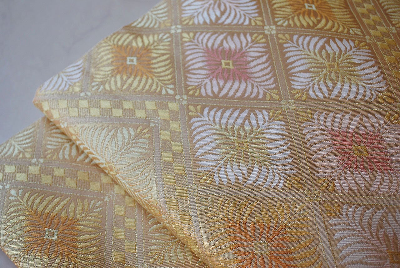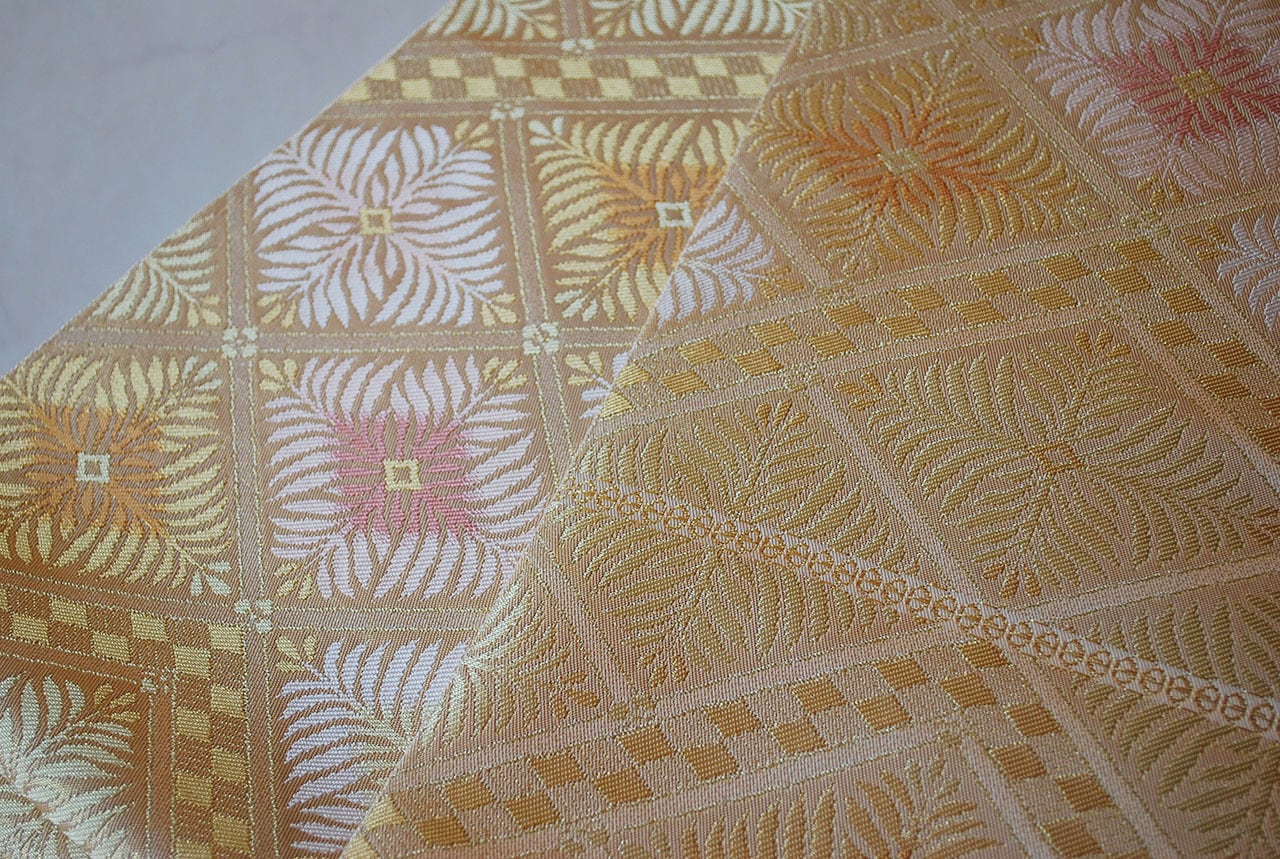 【ふくろ帯】淡金色に紅梅色 松葉菱 ふくろ帯