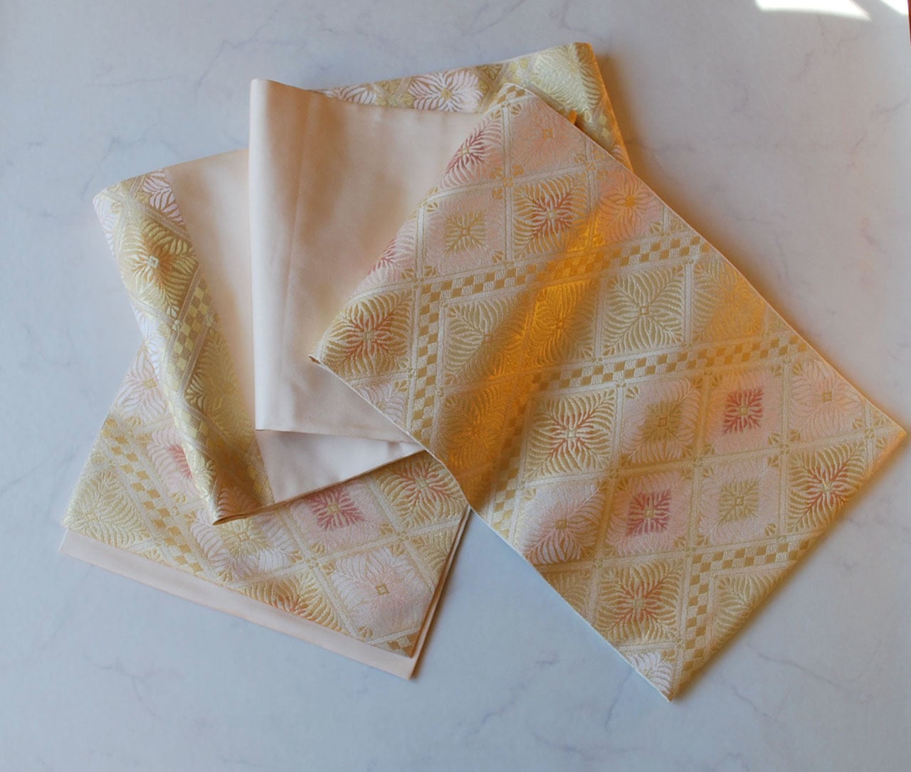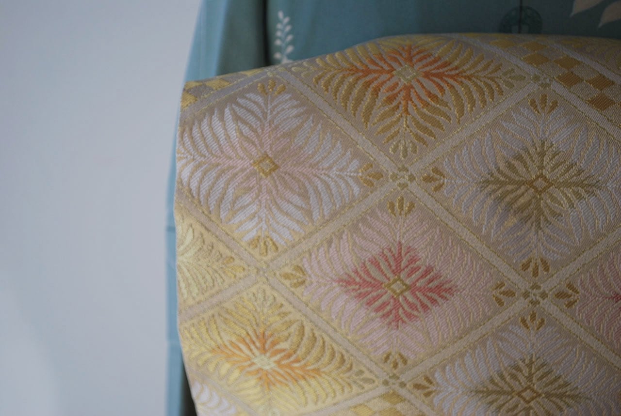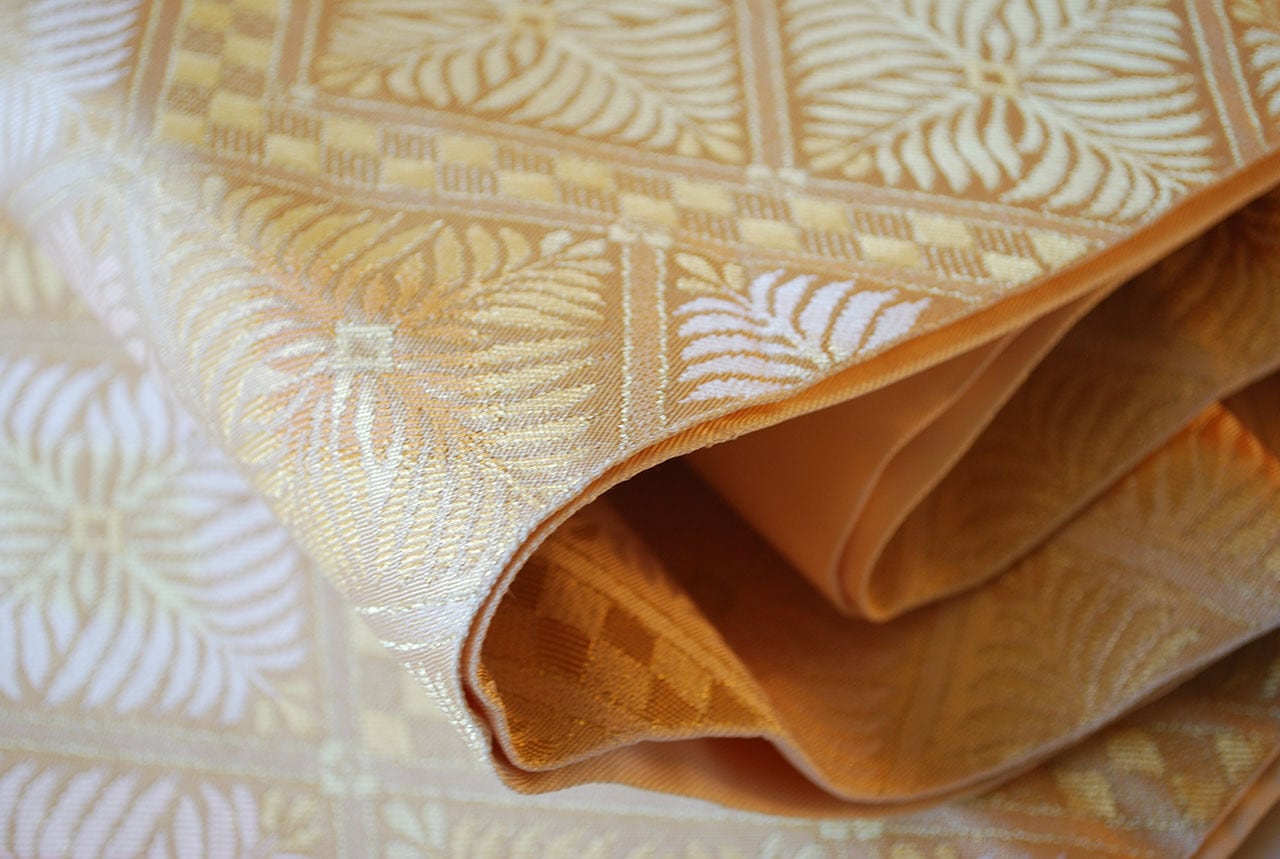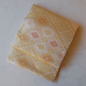 【ふくろ帯】淡金色に紅梅色 松葉菱 ふくろ帯