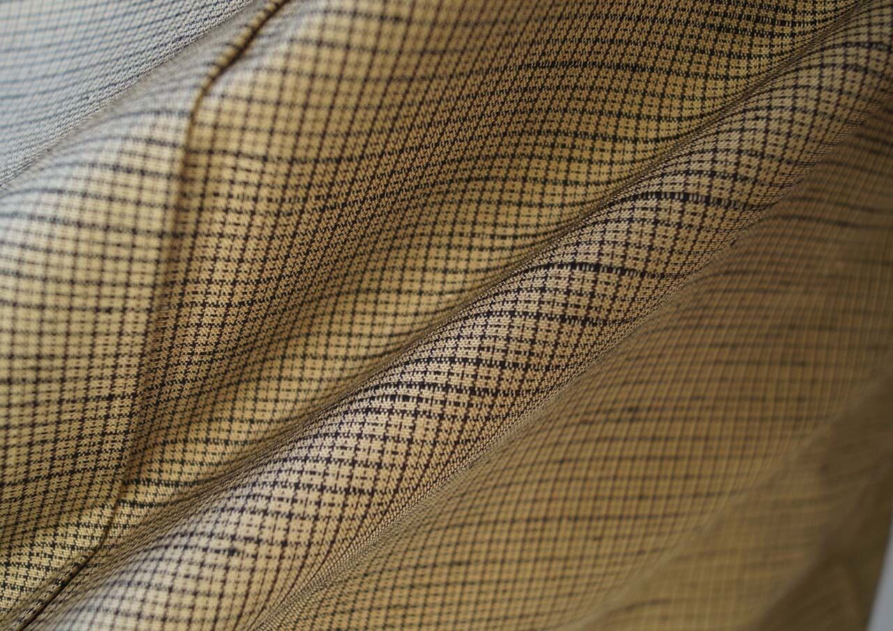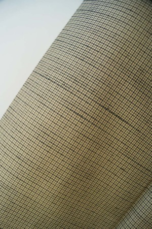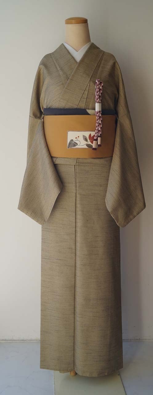 木蘭色地に細い格子文の紬です。