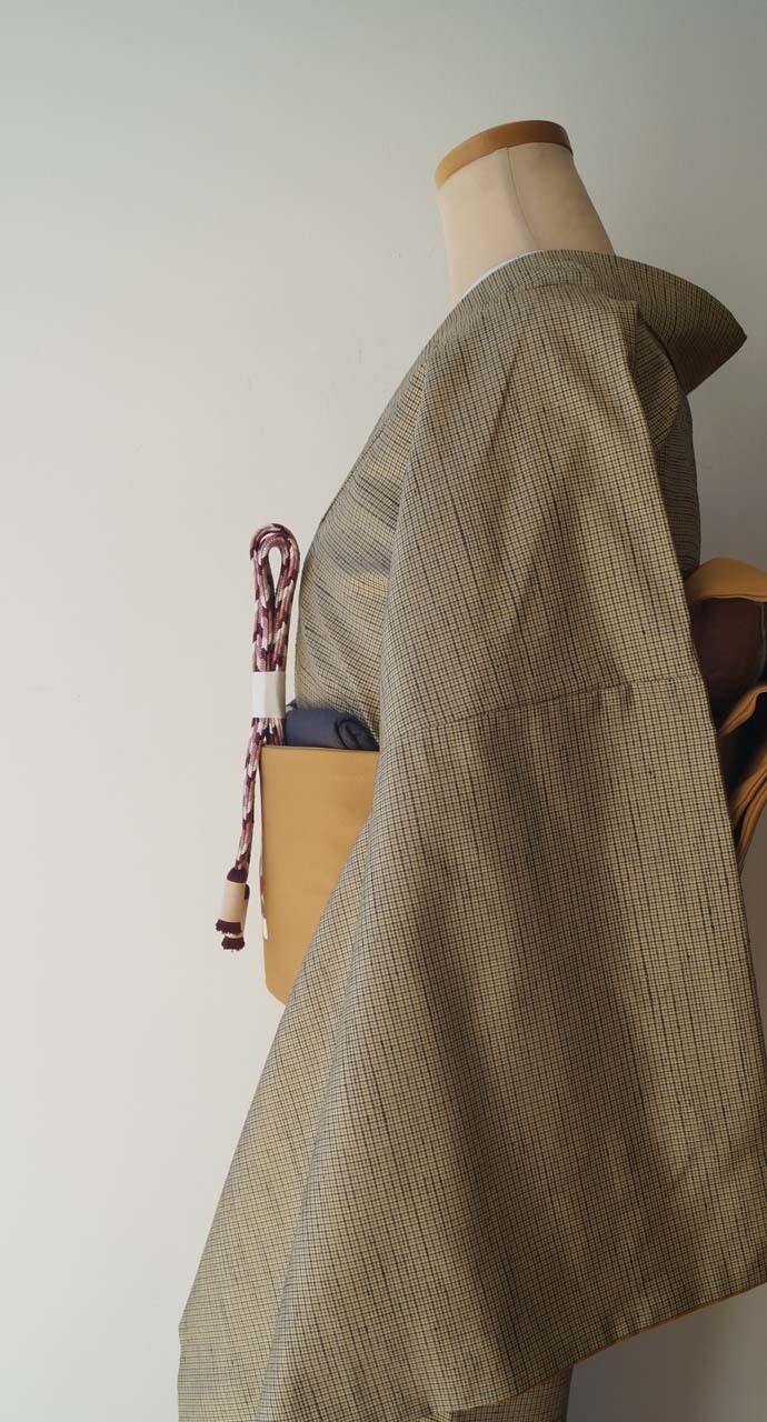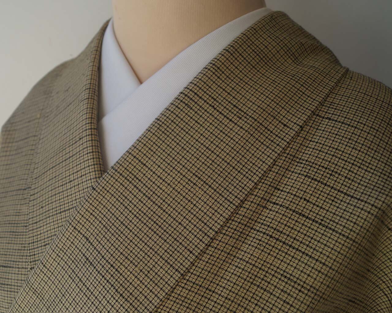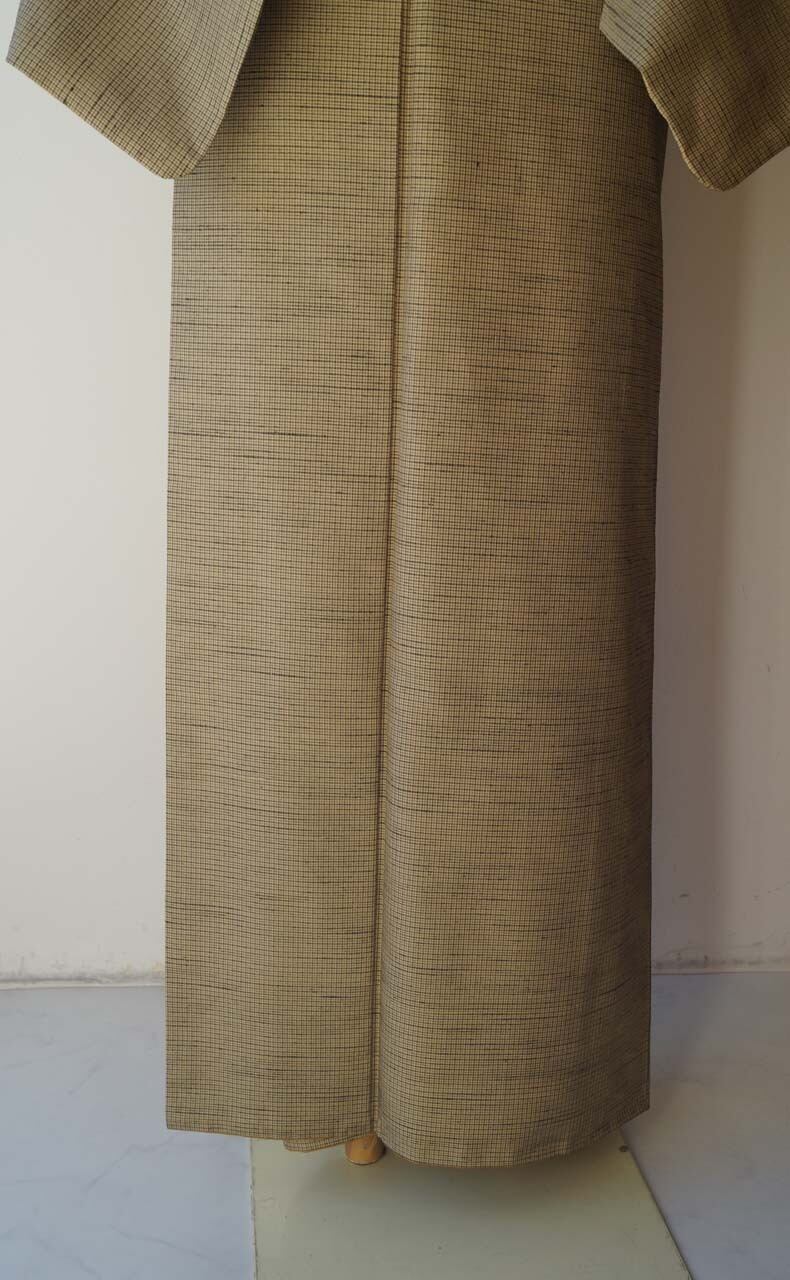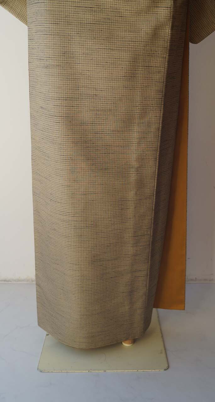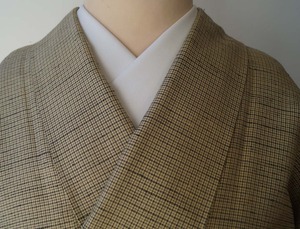 【袷】木蘭色地 格子文 紬