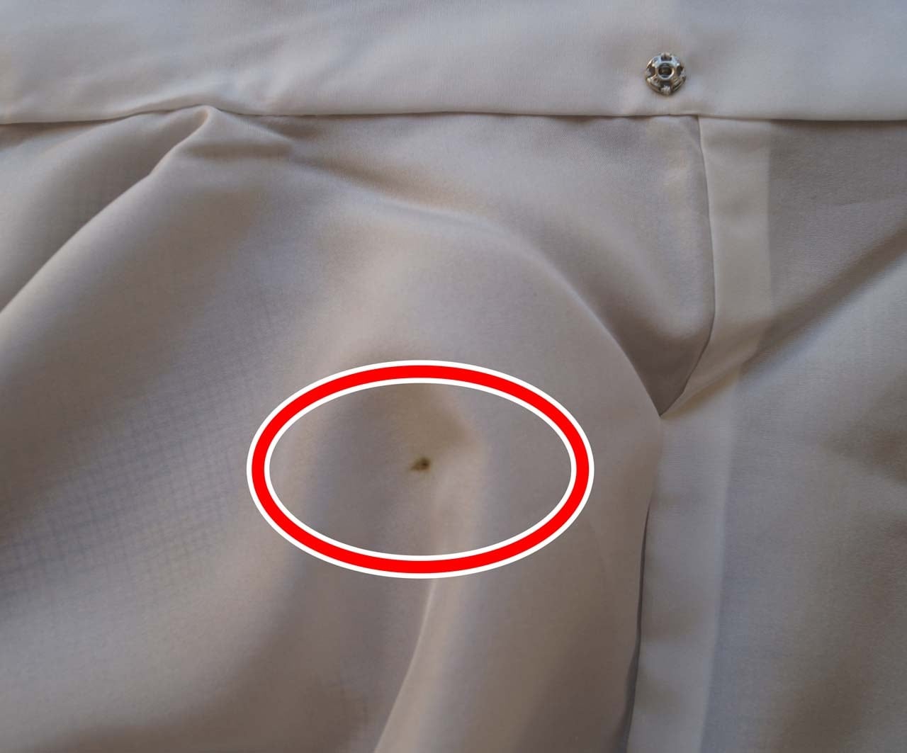 ・胴裏衿付け近くに緑青のような汚れがあります(画像16)