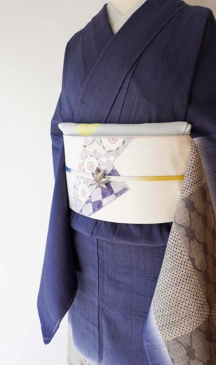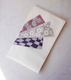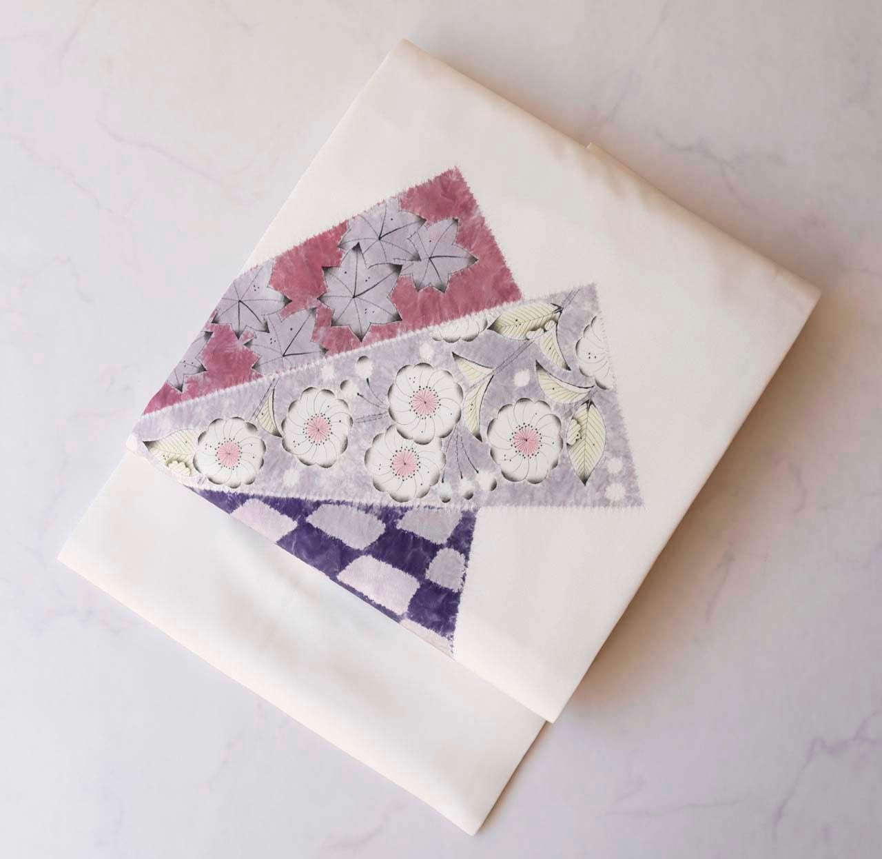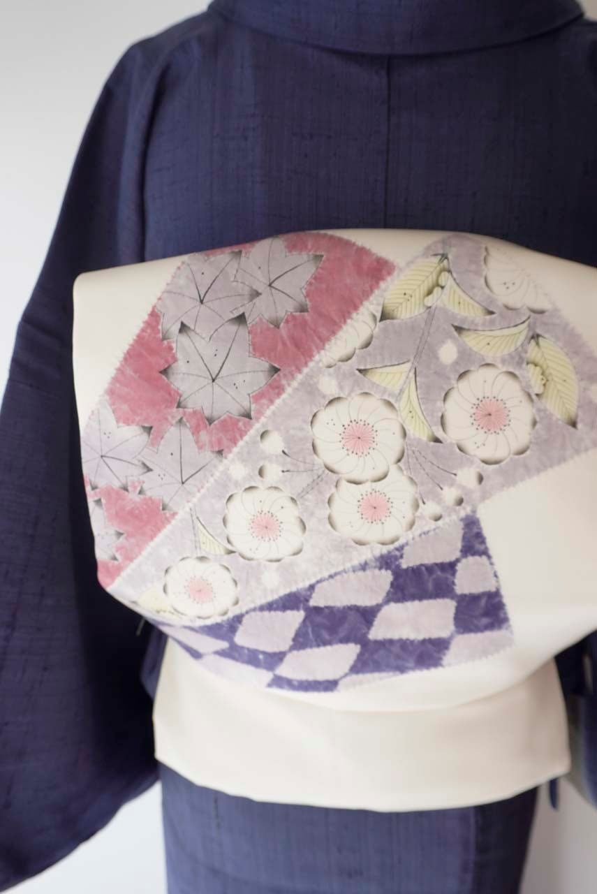 【なごや帯】小倉淳史作 胡粉色 辻が花と抽象文 塩瀬なごや帯