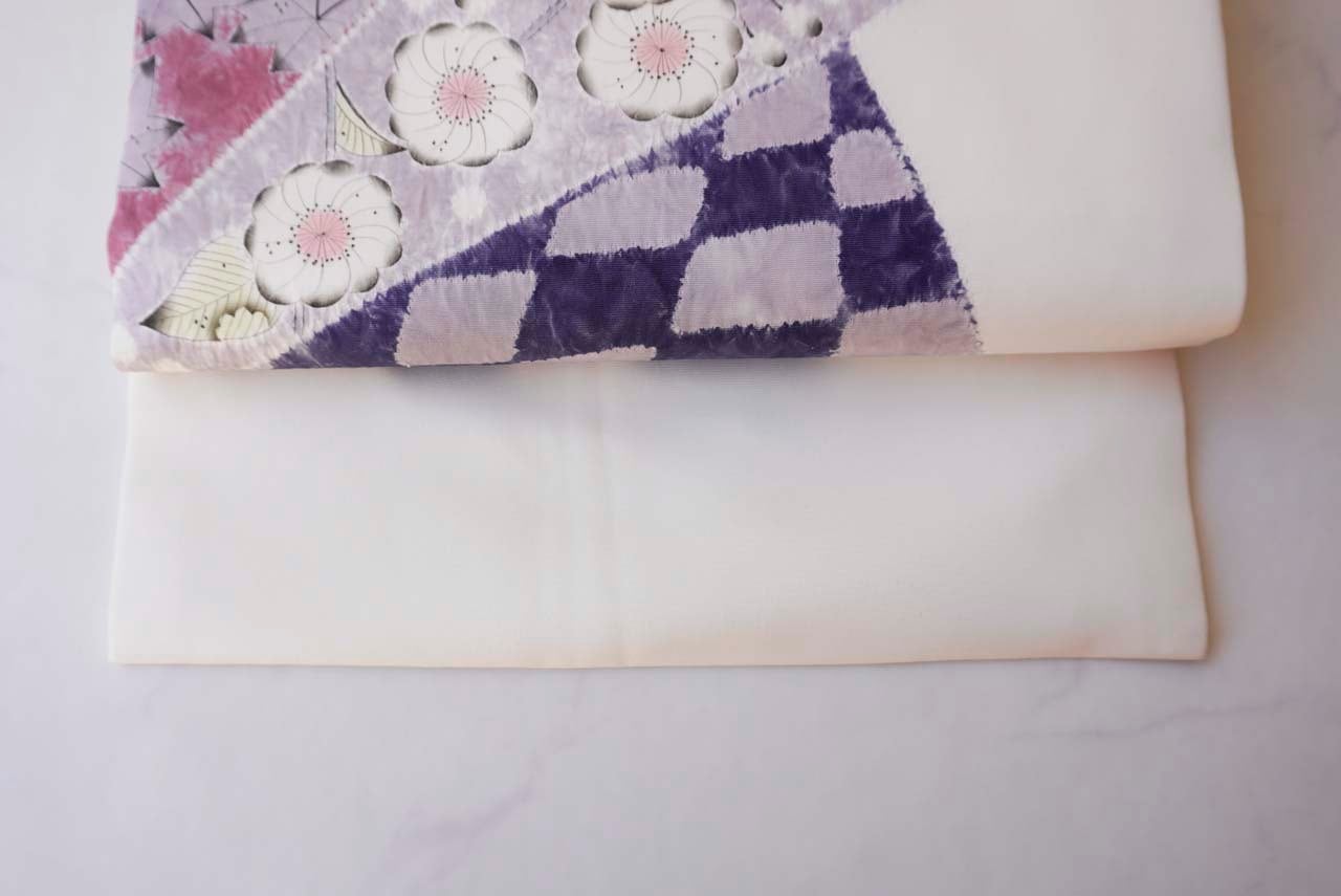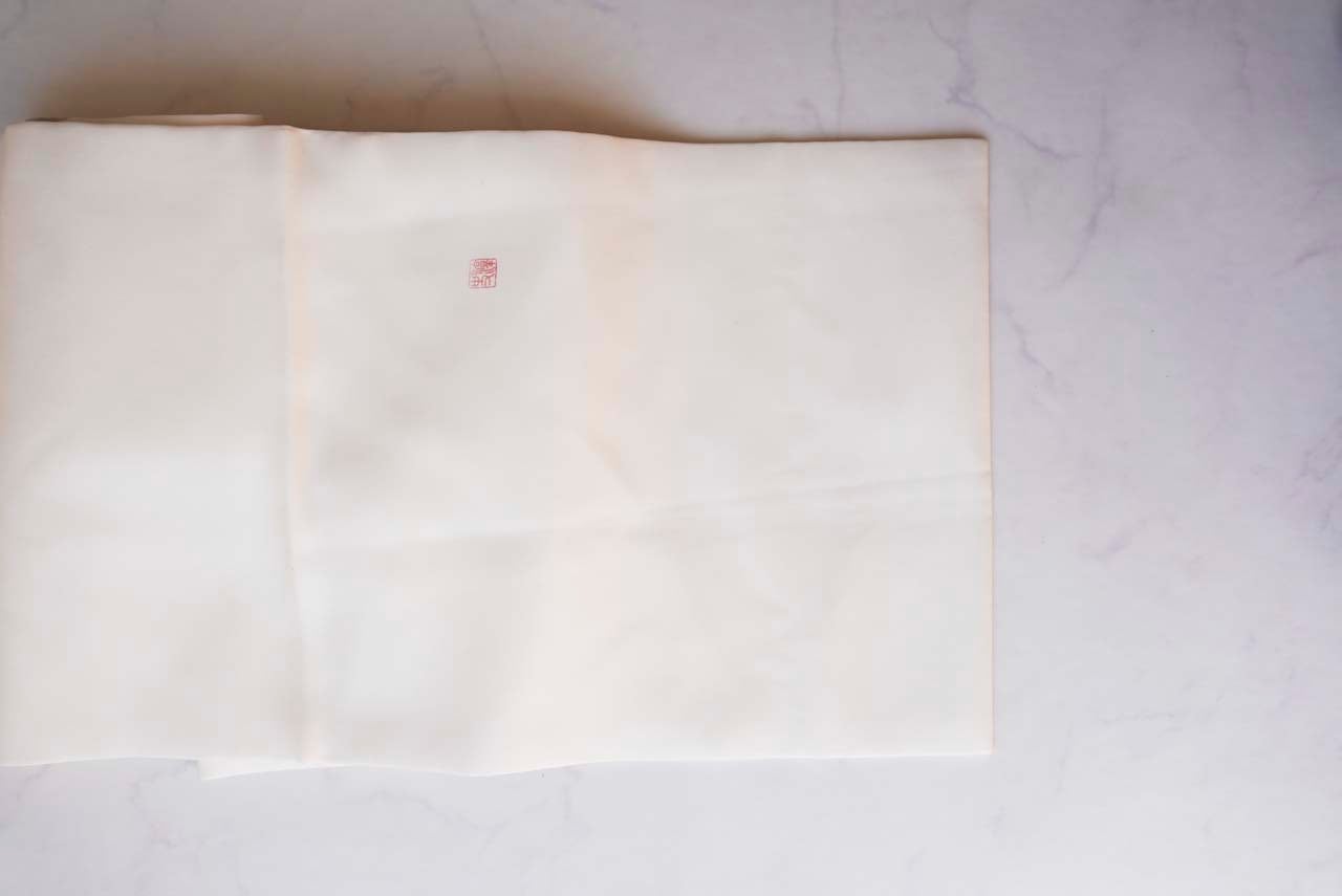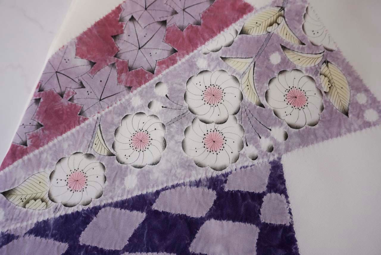 【なごや帯】小倉淳史作 胡粉色 辻が花と抽象文 塩瀬なごや帯