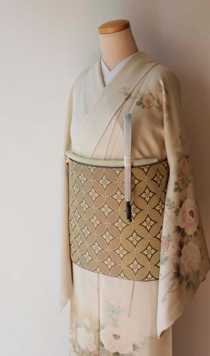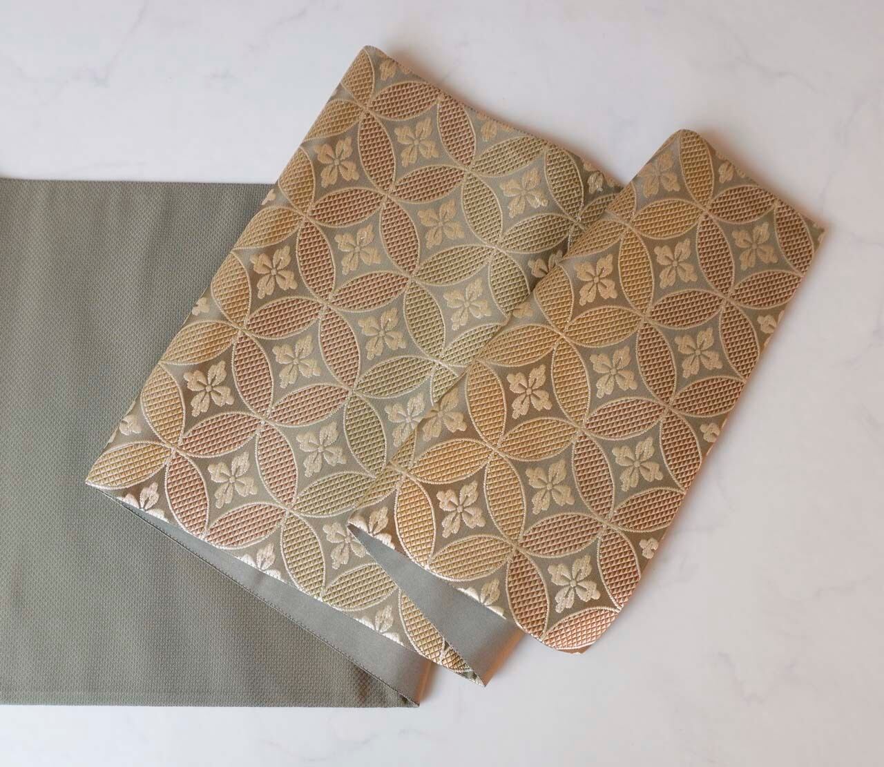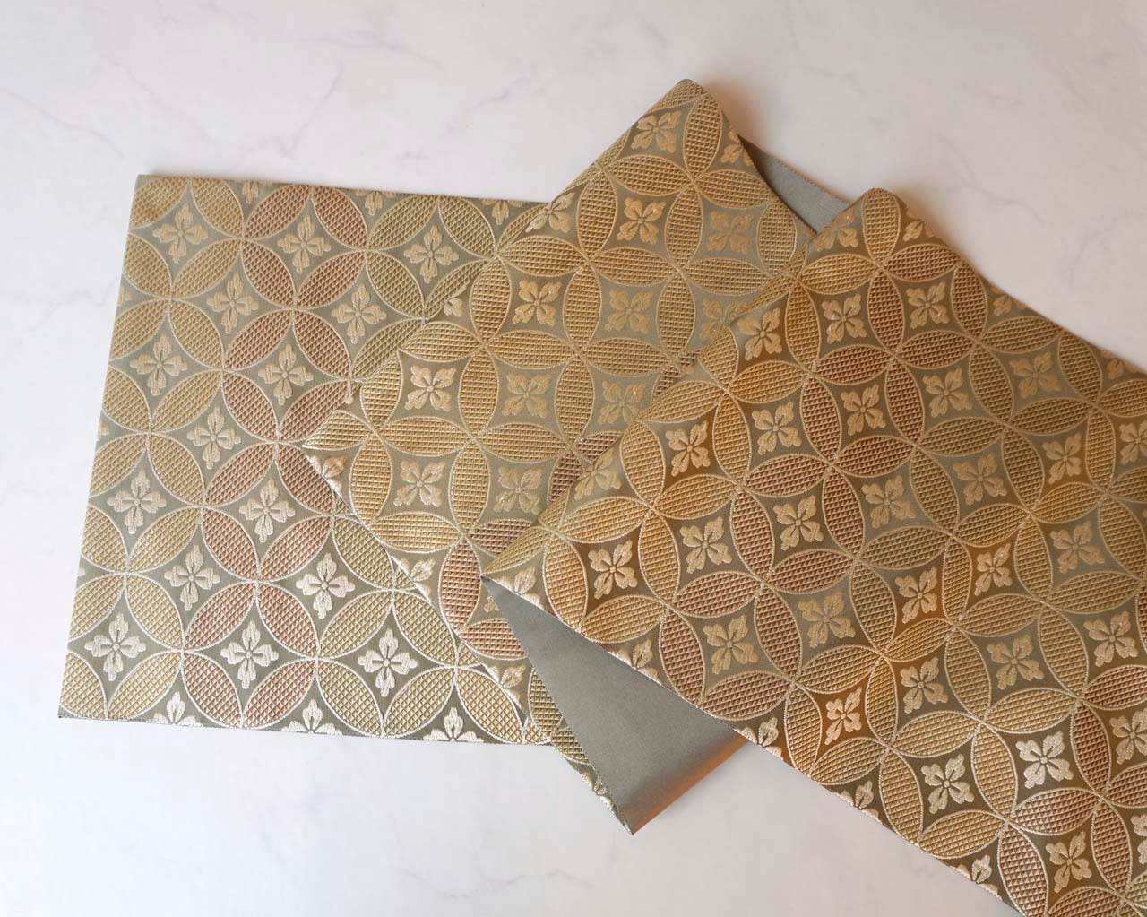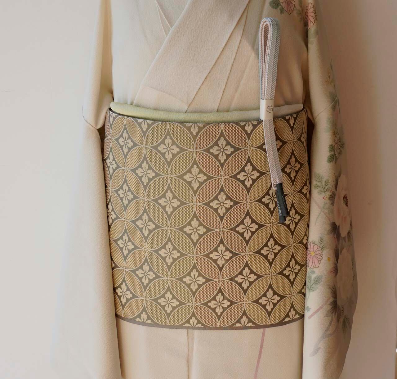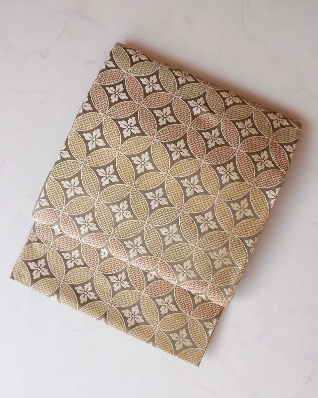 【ふくろ帯】東京ますいわや扱い 白橡地 七宝花文 ふくろ帯