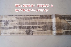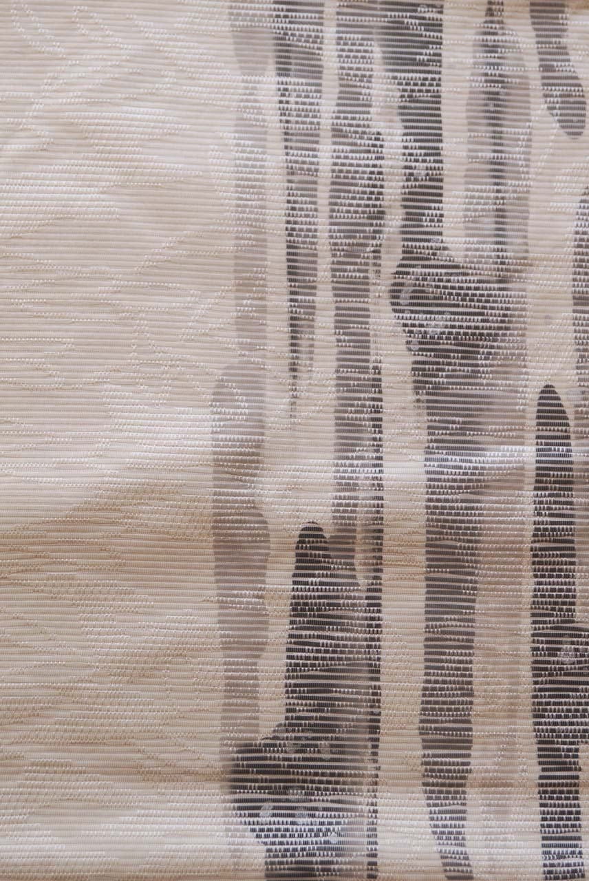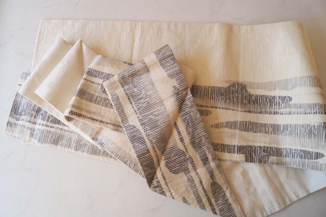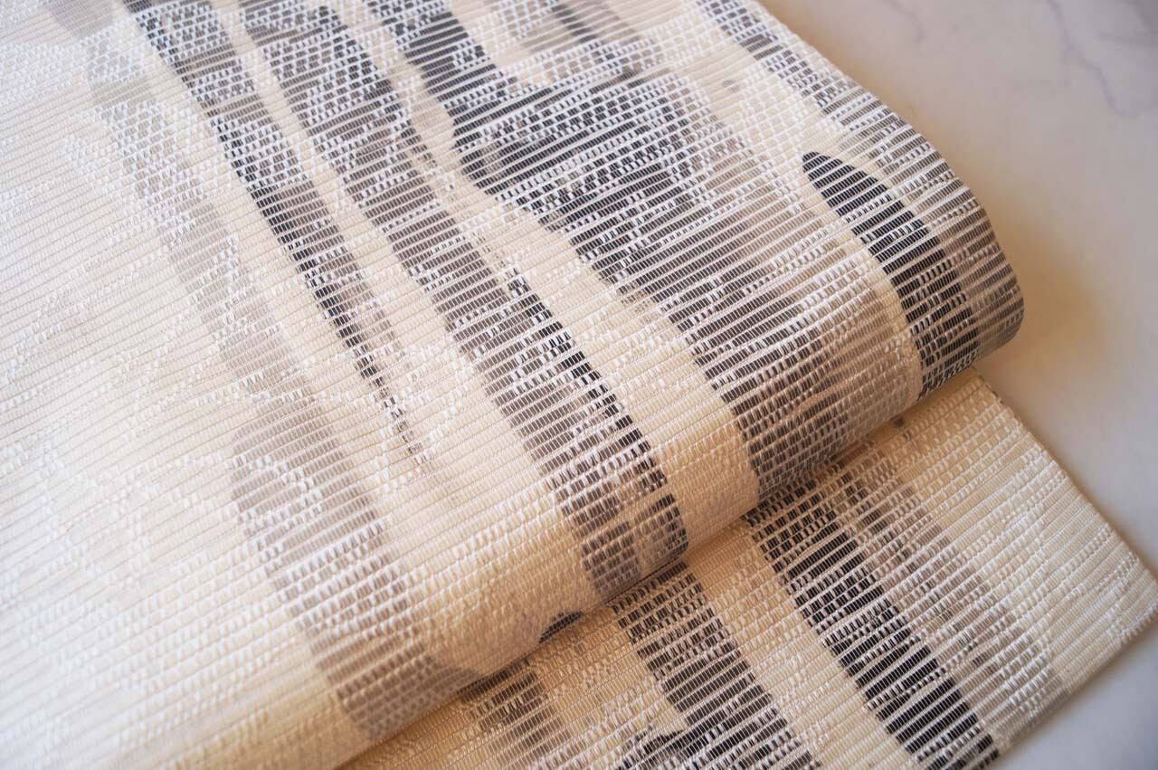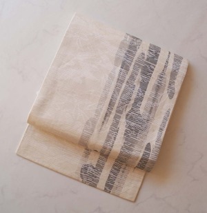 【なごや帯】生成り地 墨色暈かし 抽象垂れ文 なごや帯