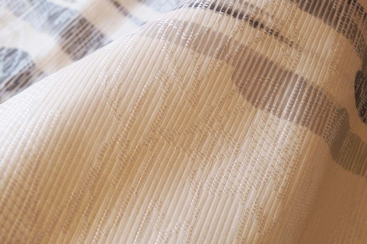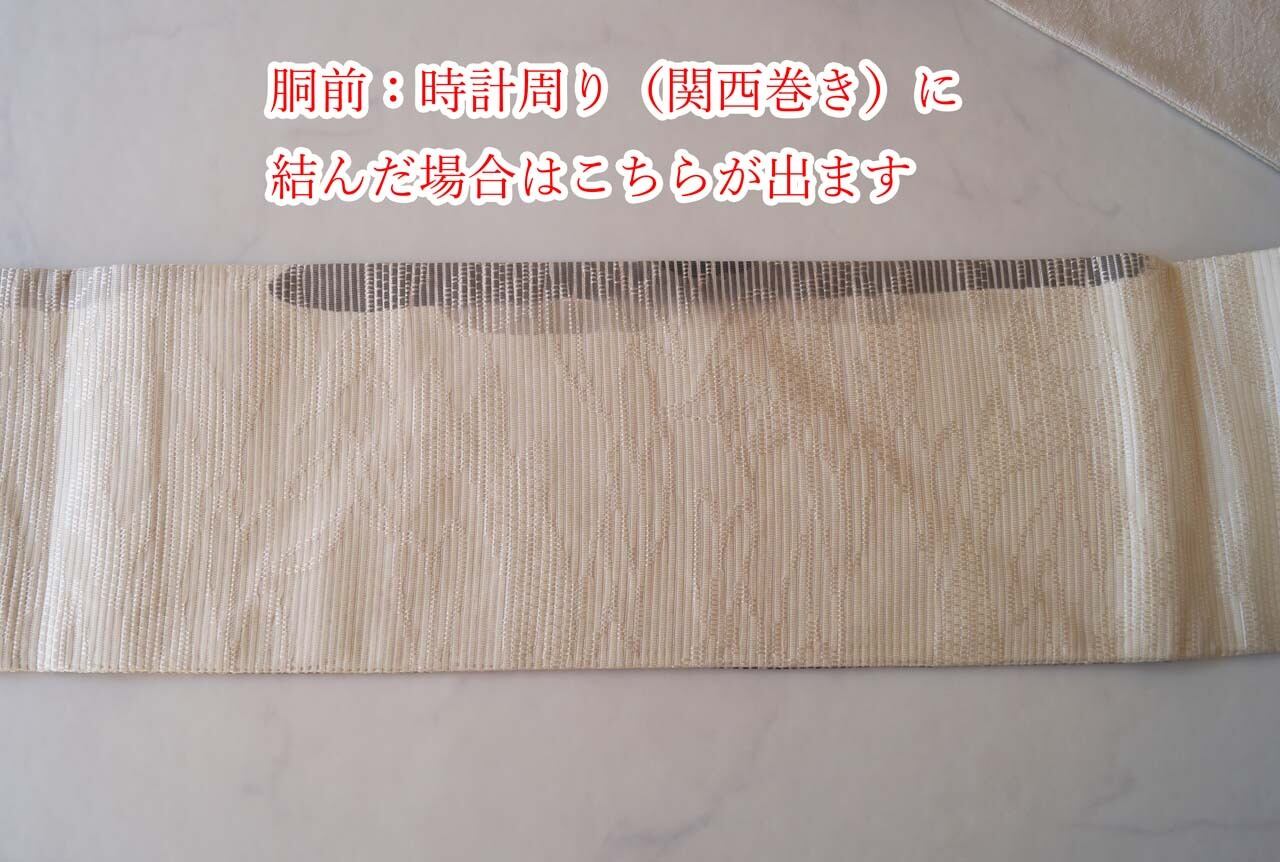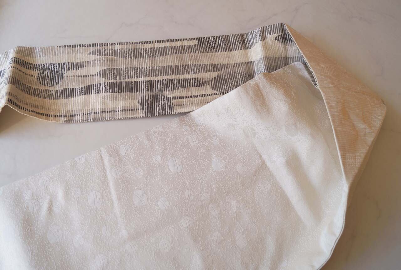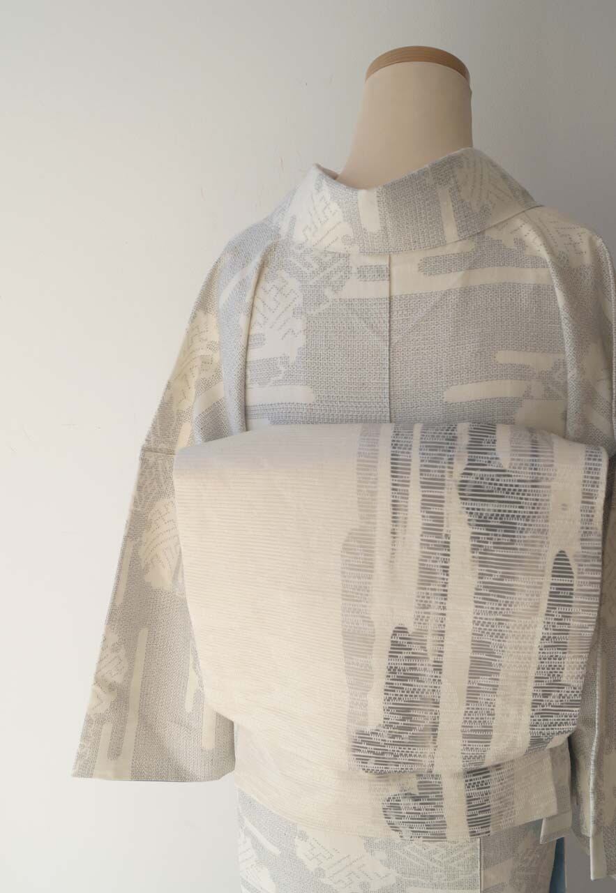 【なごや帯】生成り地 墨色暈かし 抽象垂れ文 なごや帯