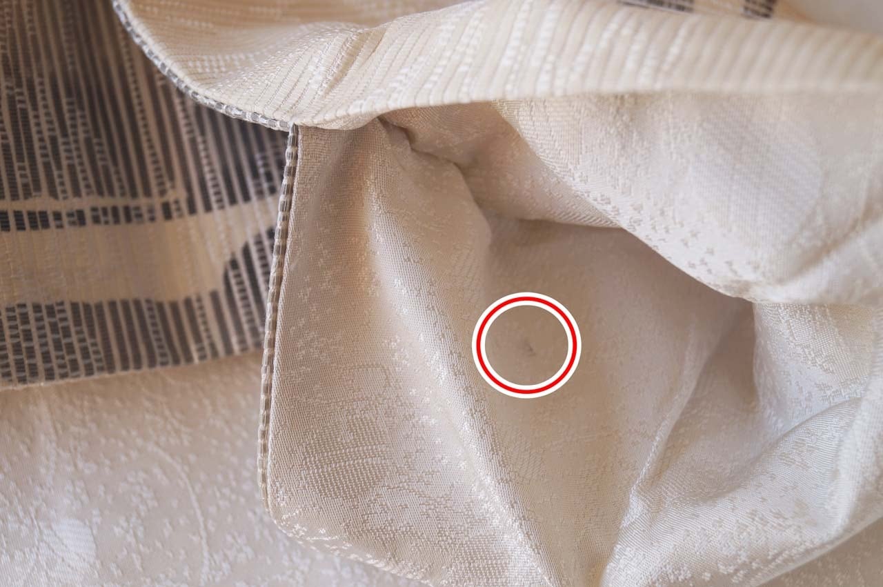 ・て先、お太鼓裏三角部分箇所に薄染み(結んで隠れます)