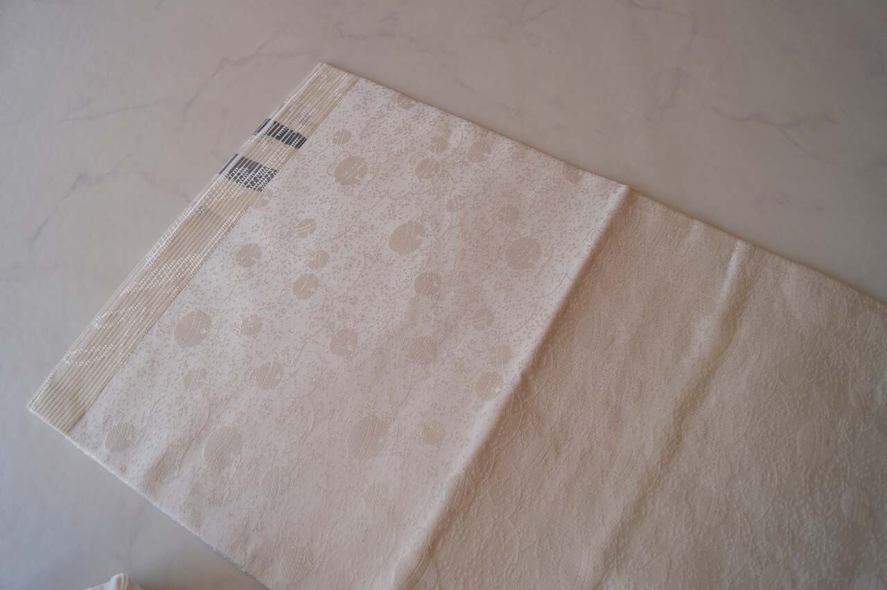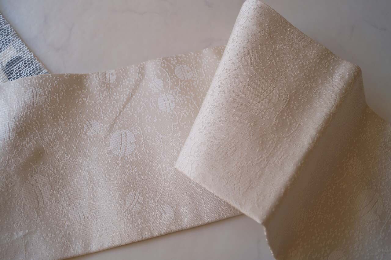 生成りの地には植物やエ霞文様が