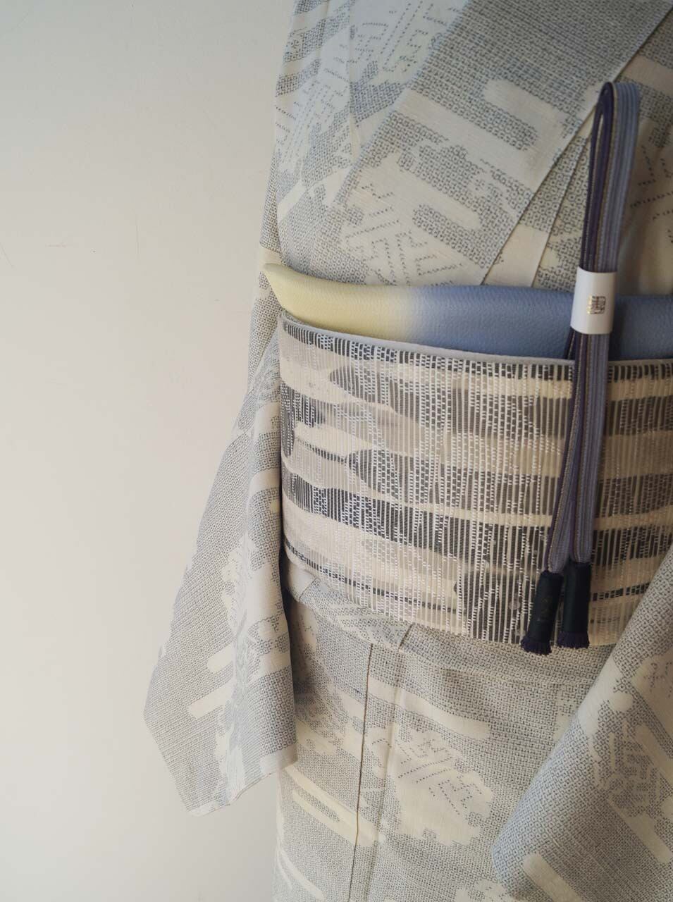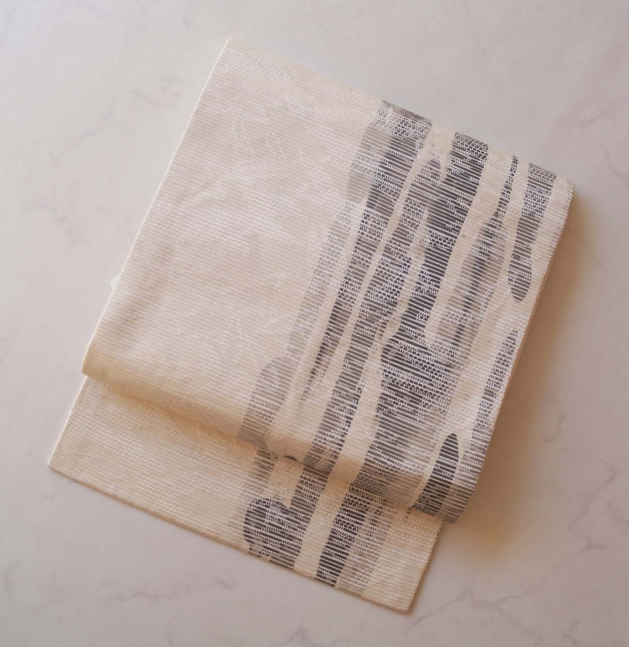 生成り地に墨色暈かしの抽象垂れ文