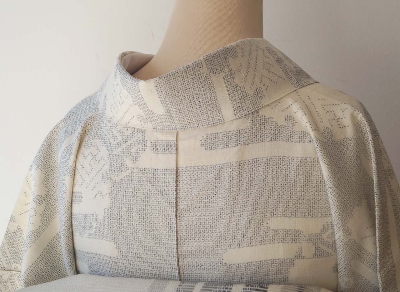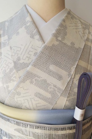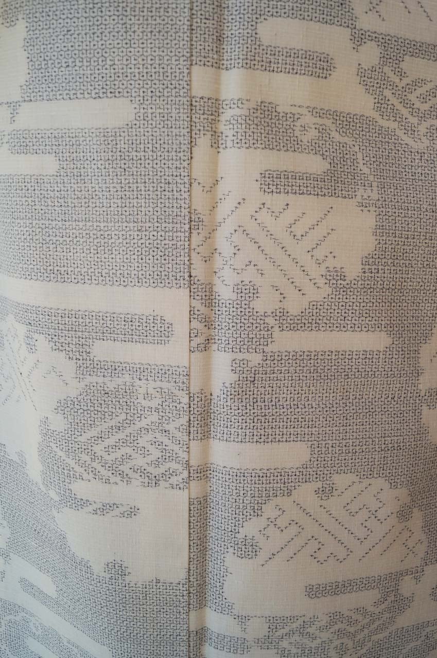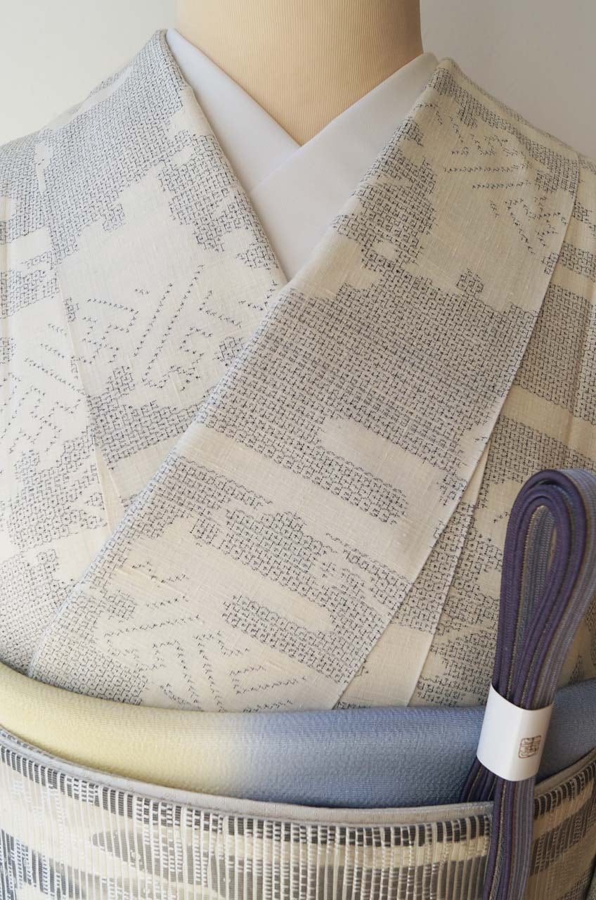 【袷】生成り地 亀甲絣+エ霞に雪輪文 紬