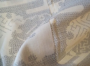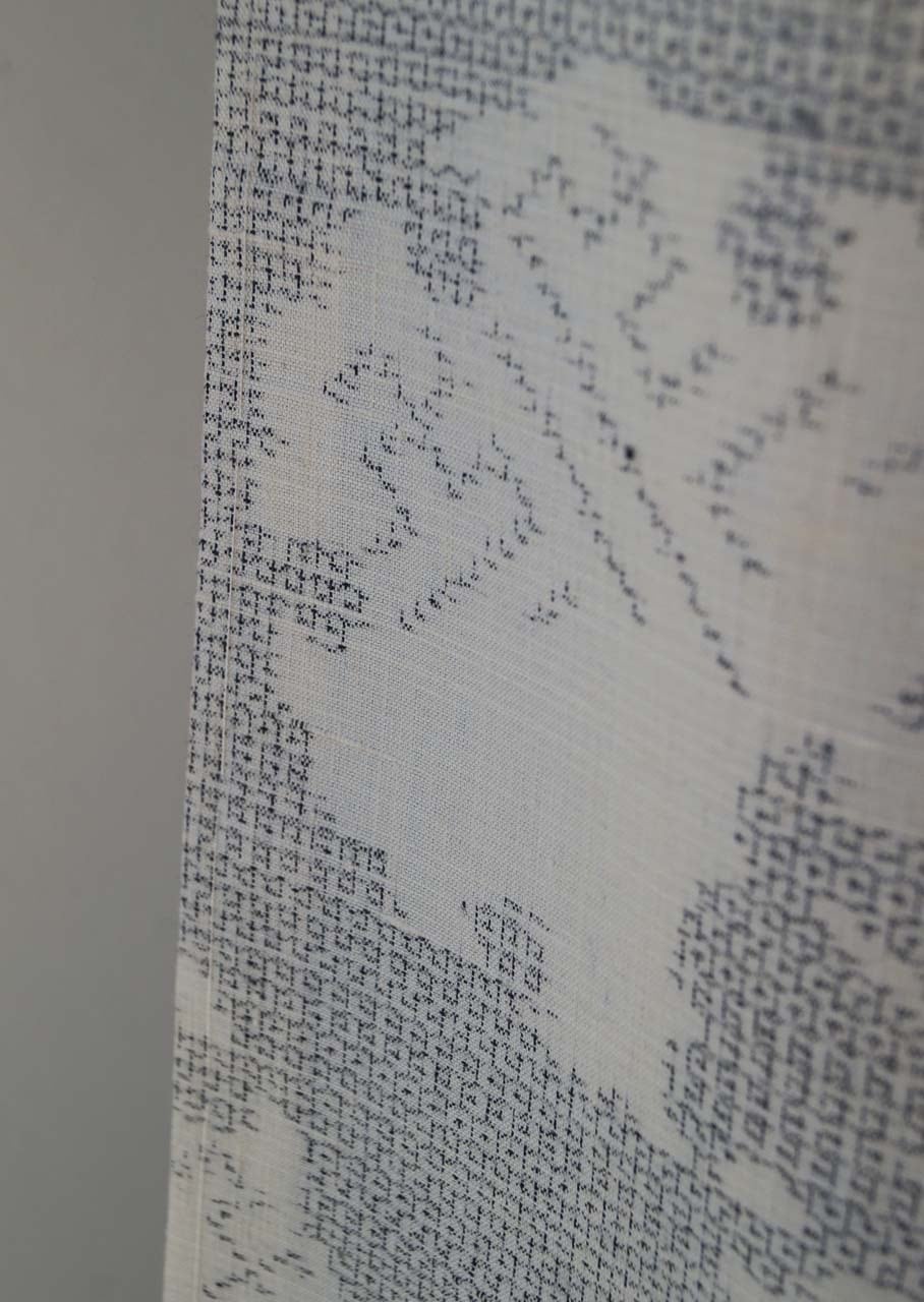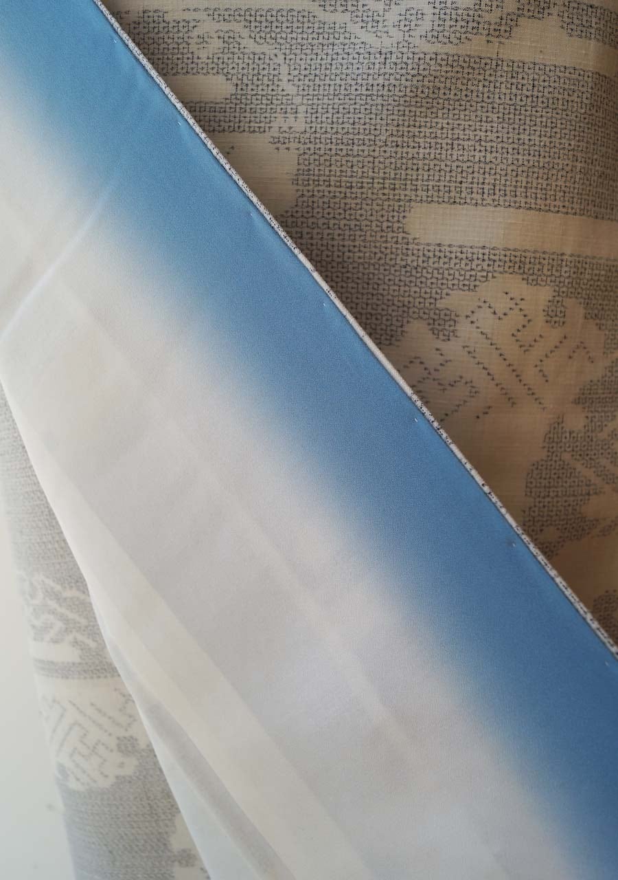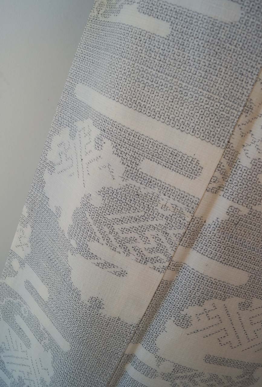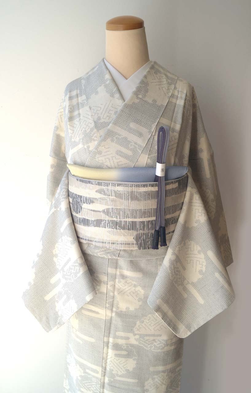 【袷】生成り地 亀甲絣+エ霞に雪輪文 紬
