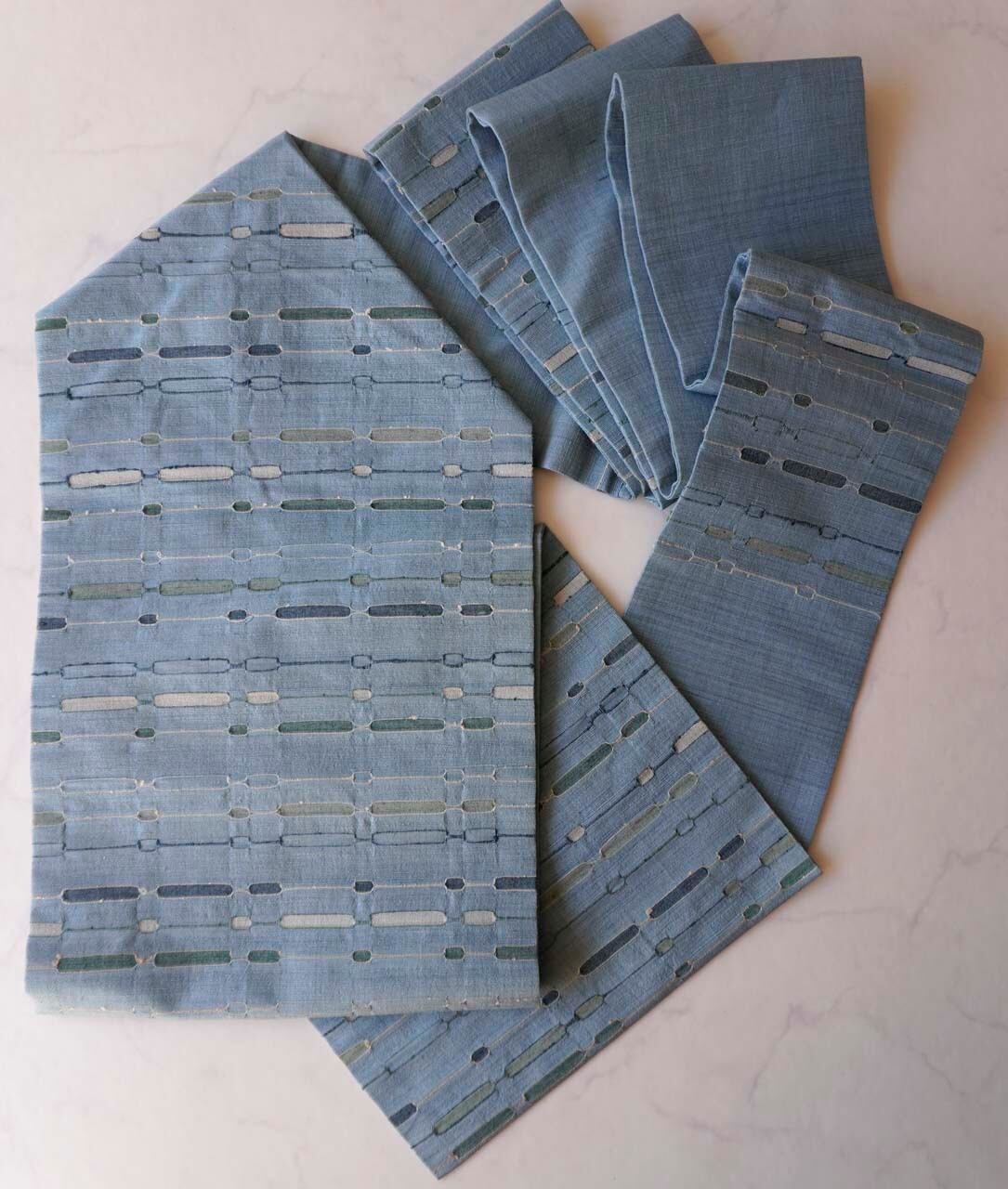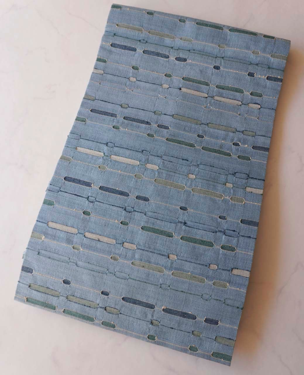 民芸的な温かみと、めがね織のリズミカルなお柄が