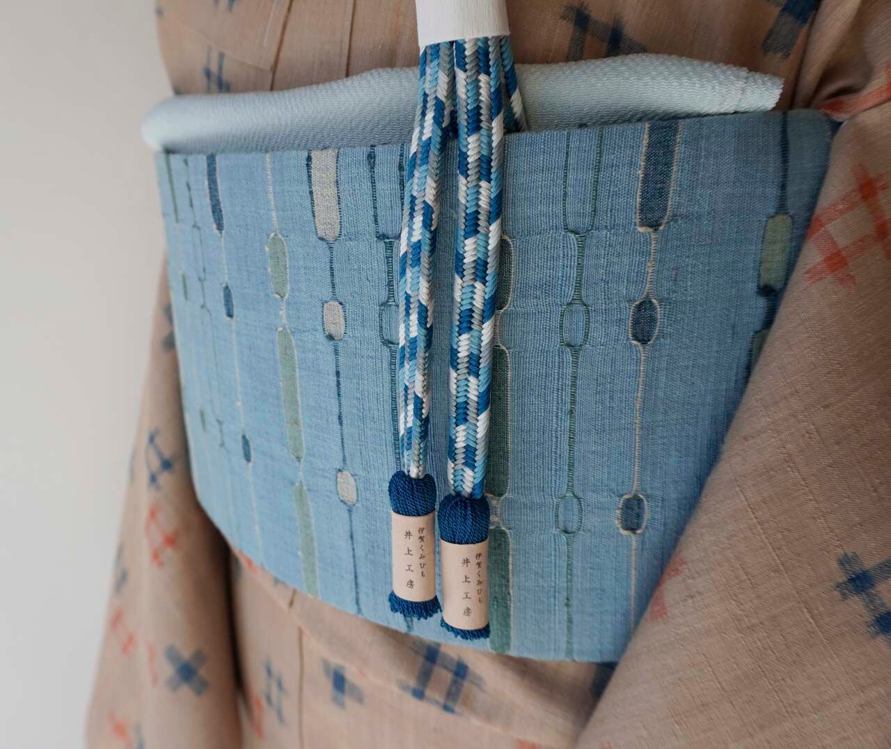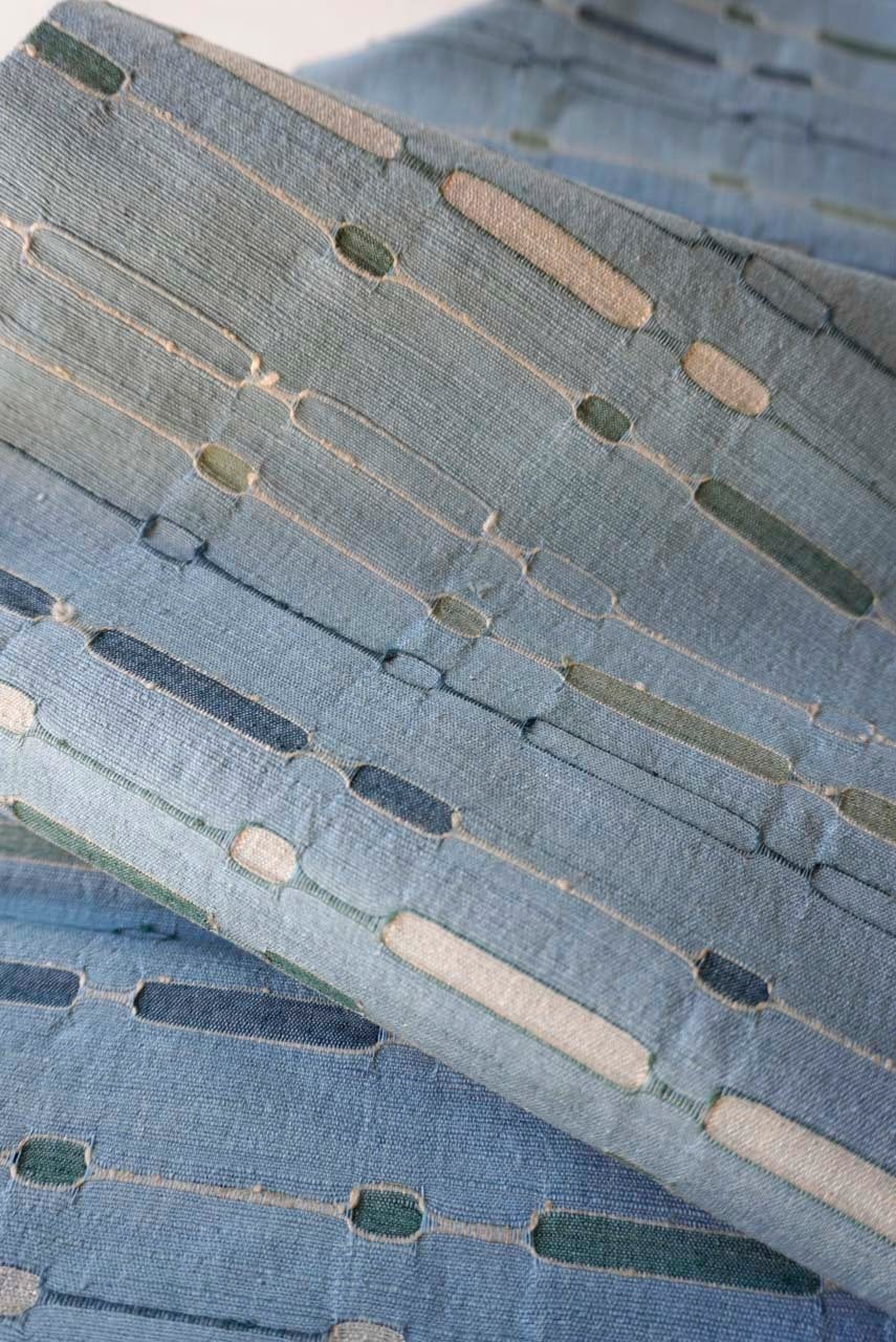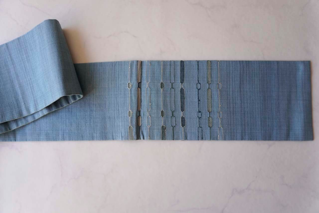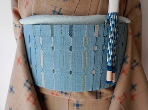 水浅葱色地、吉野間道、めがね織による