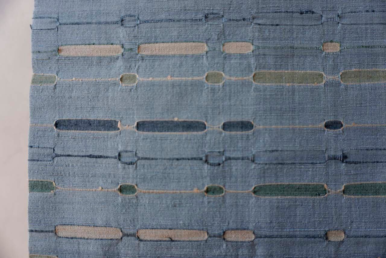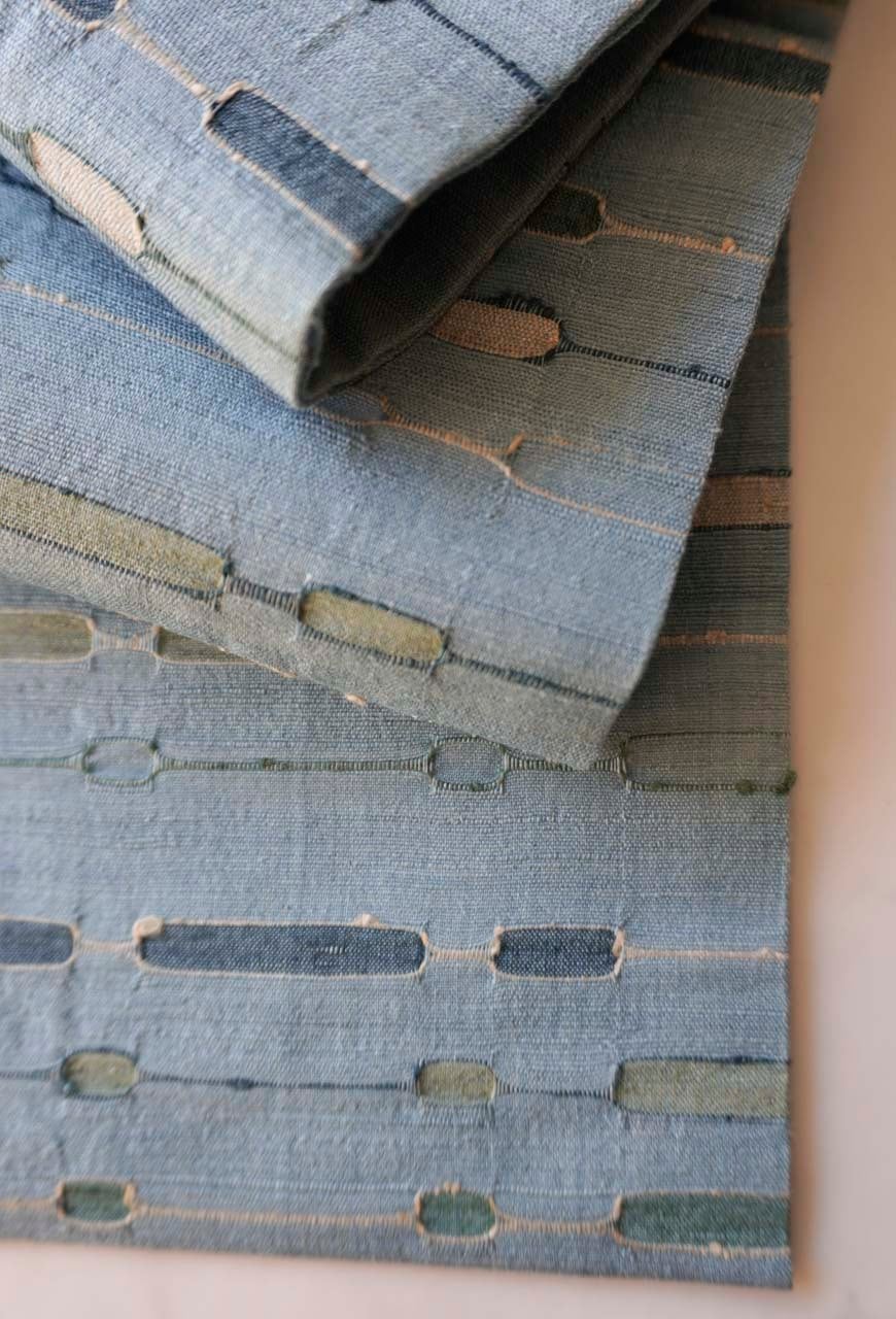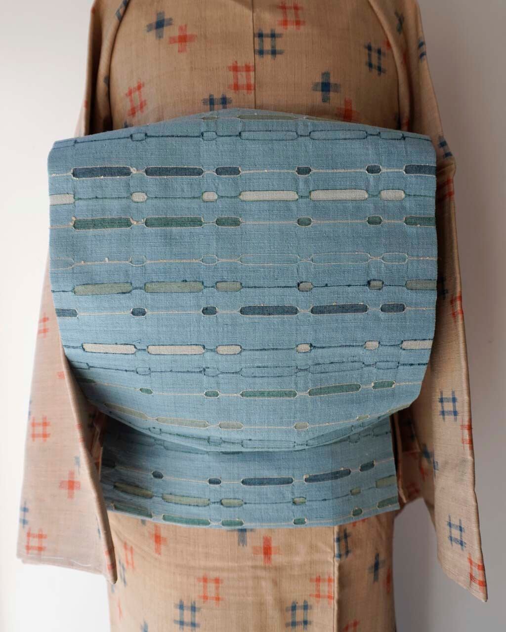 水浅葱色地、吉野間道、めがね織による