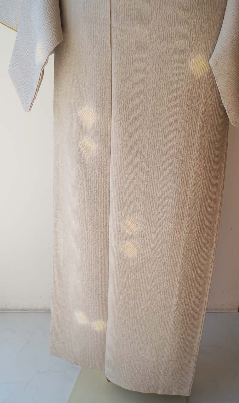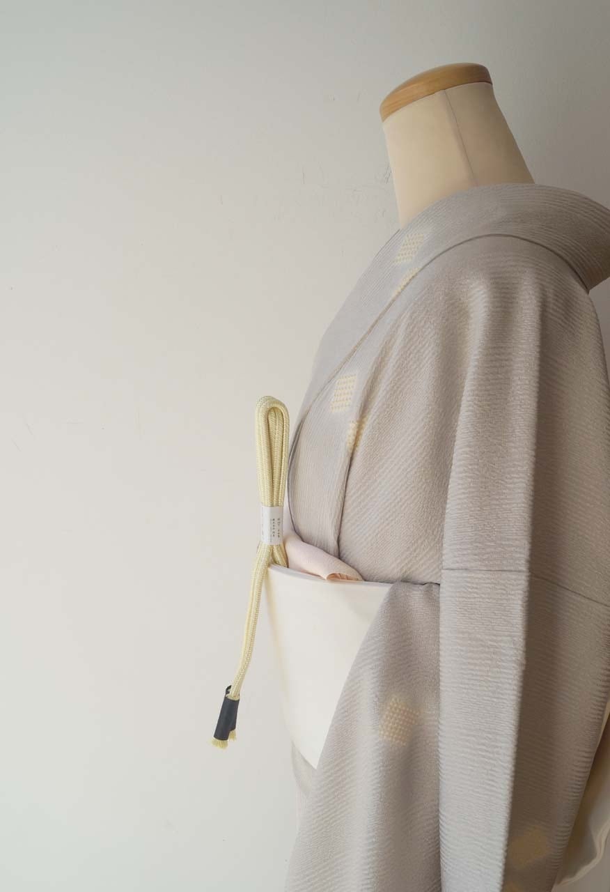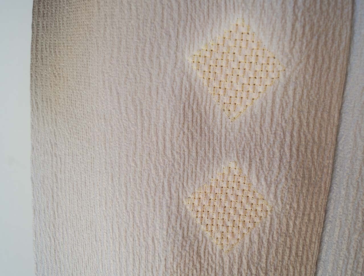 【袷】霞色地 縞に菱絞り 小紋