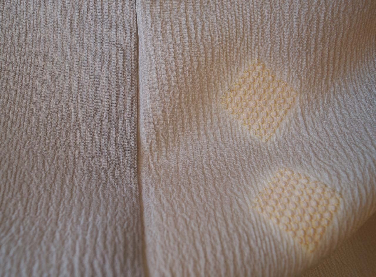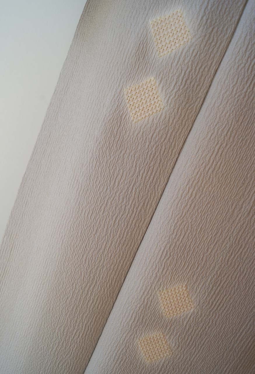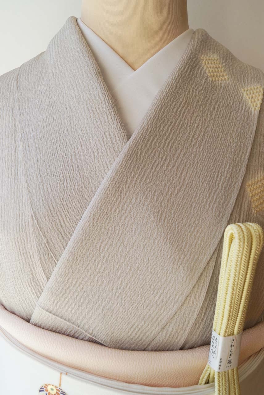 【袷】霞色地 縞に菱絞り 小紋