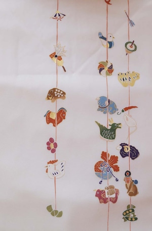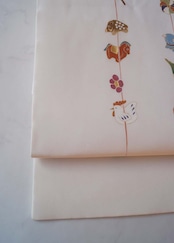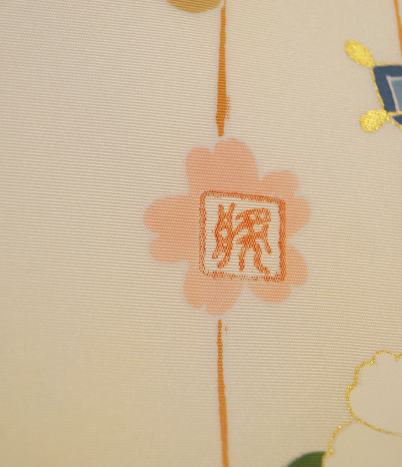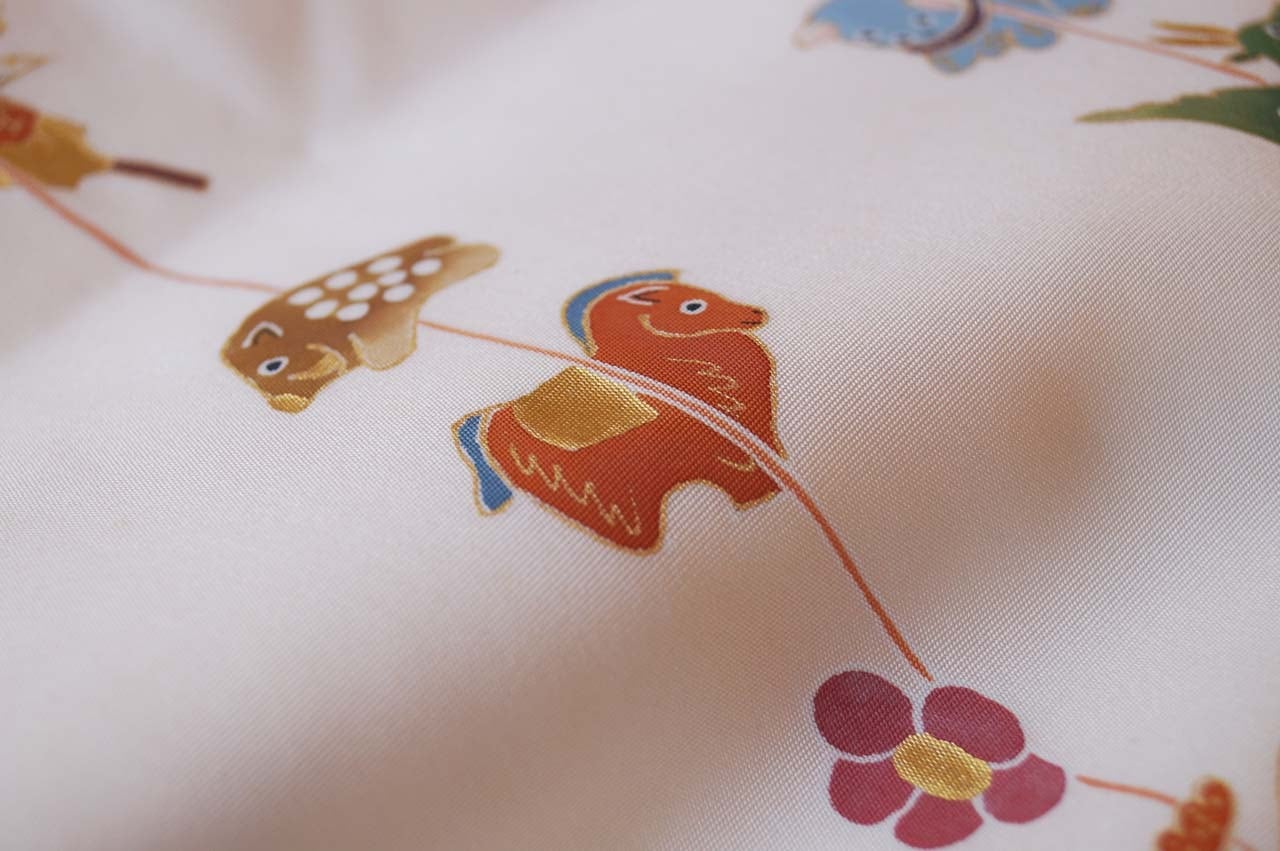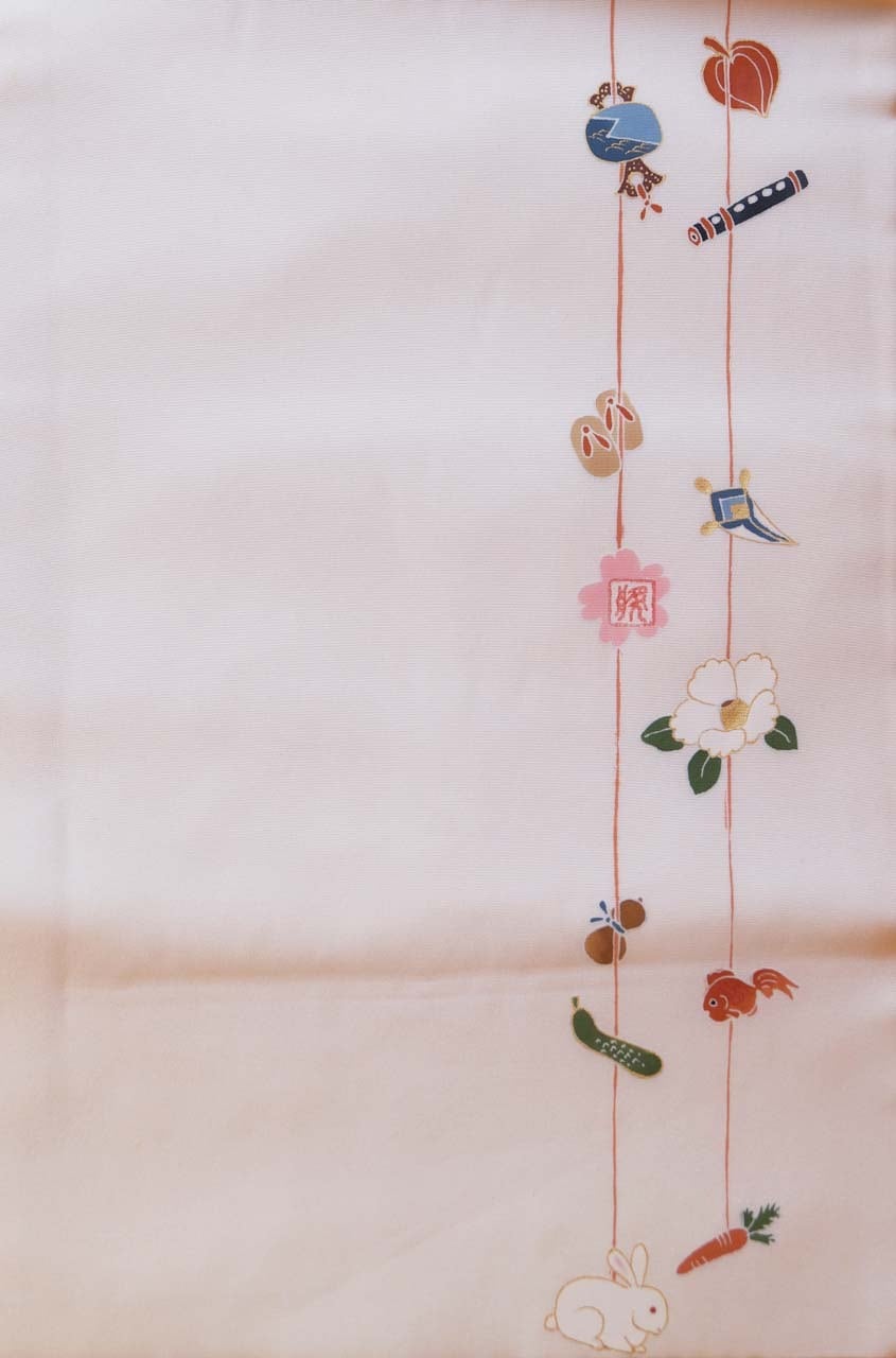 【なごや帯】生成り地 つるし雛の干支飾り 塩瀬なごや帯