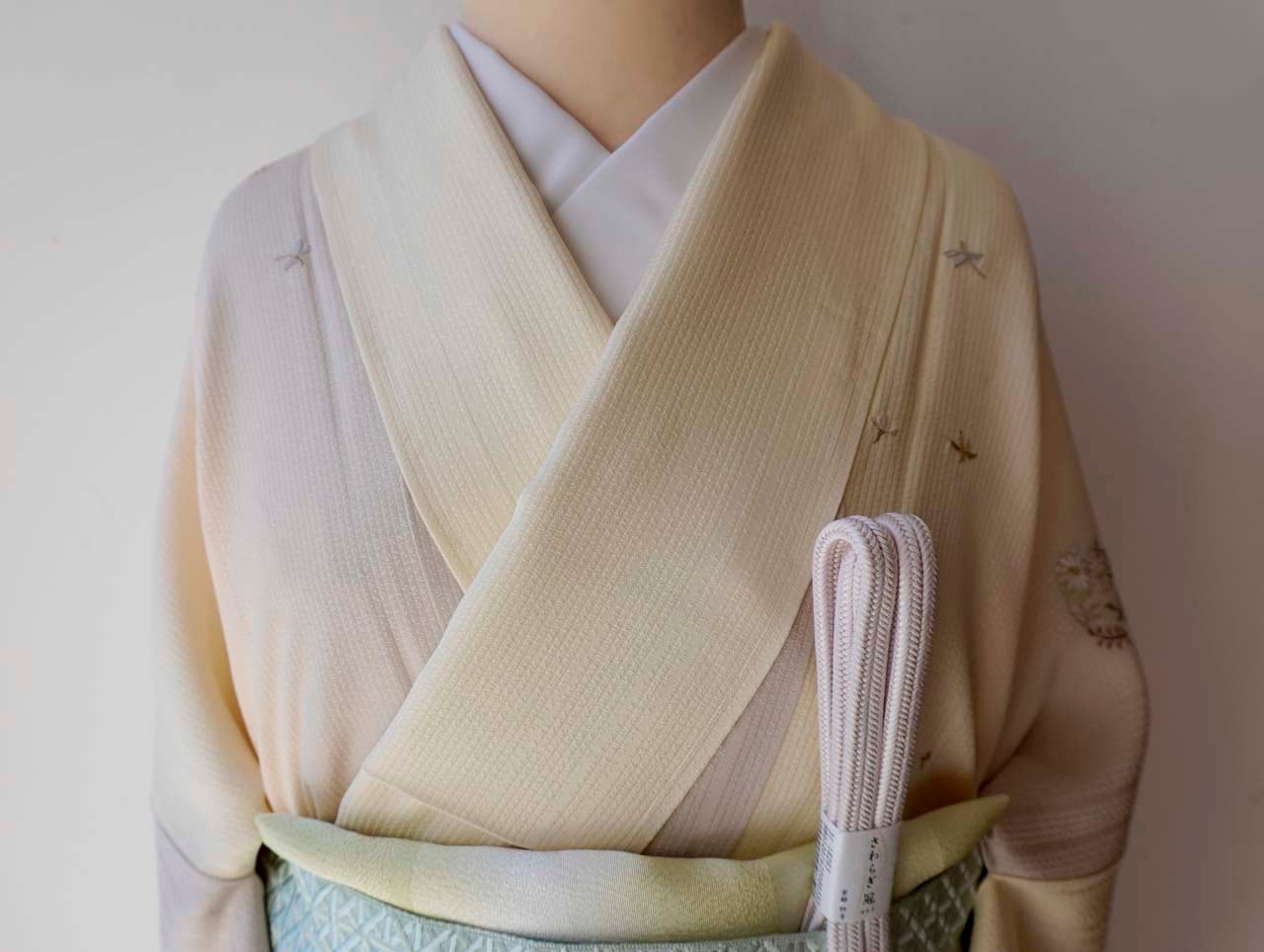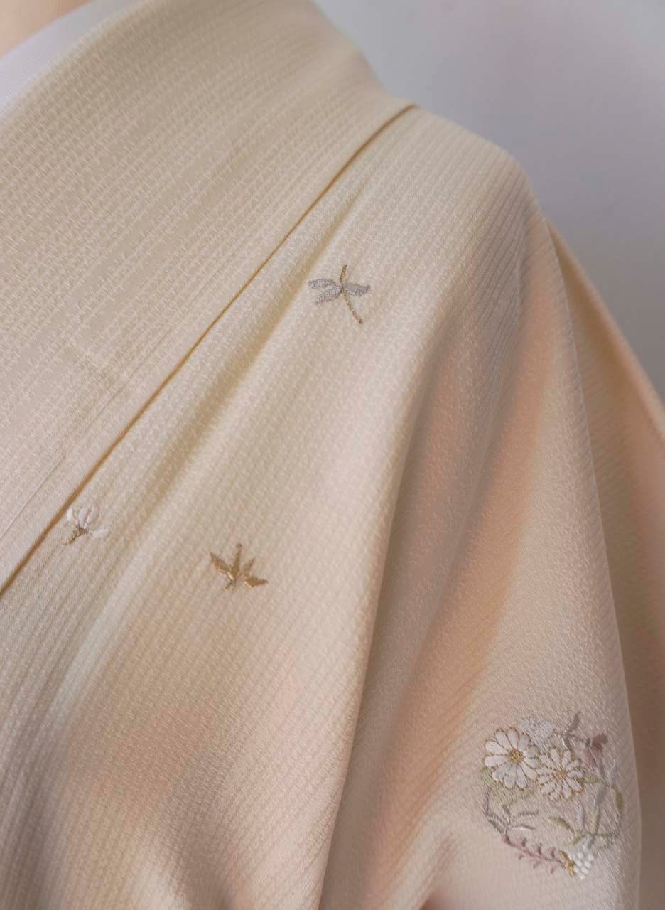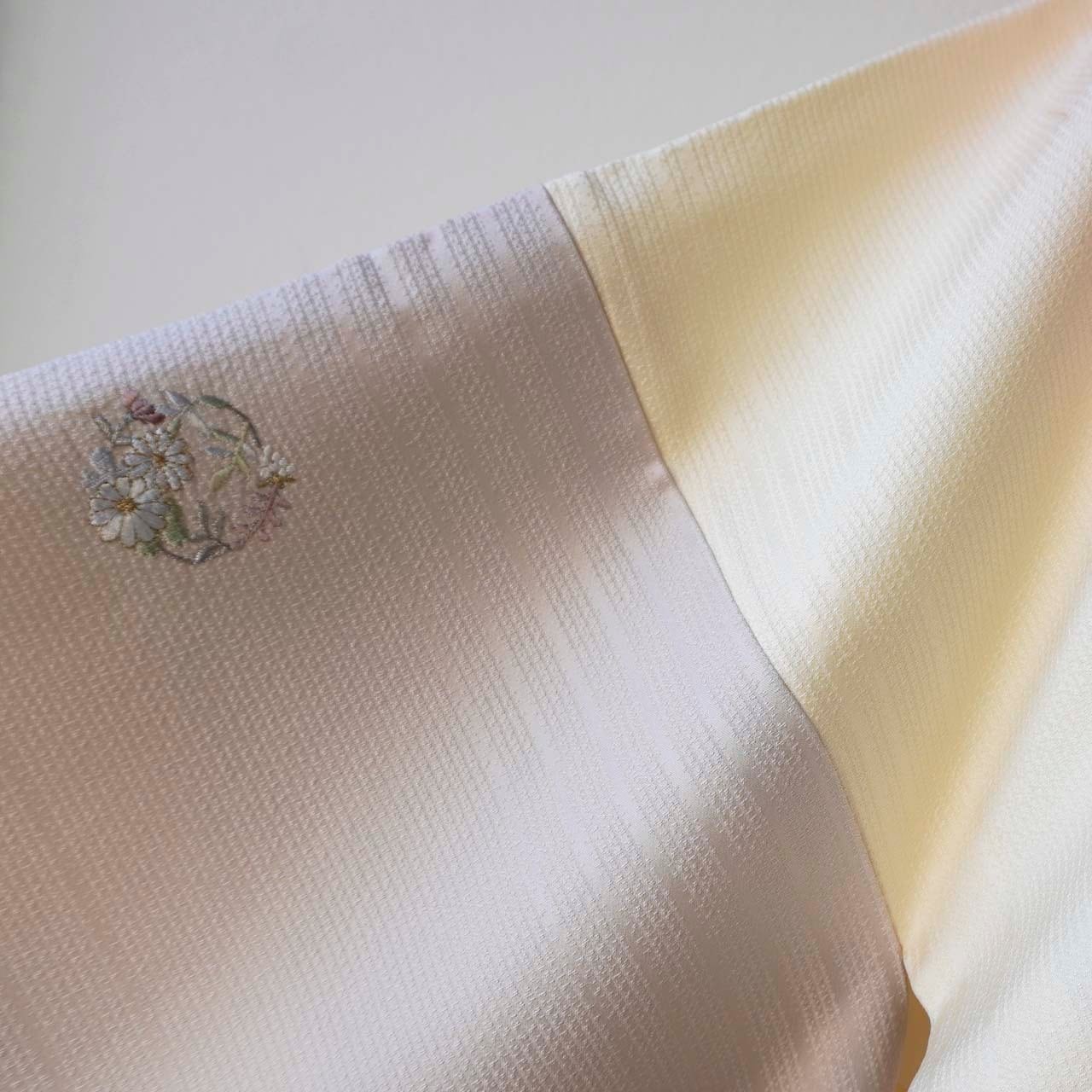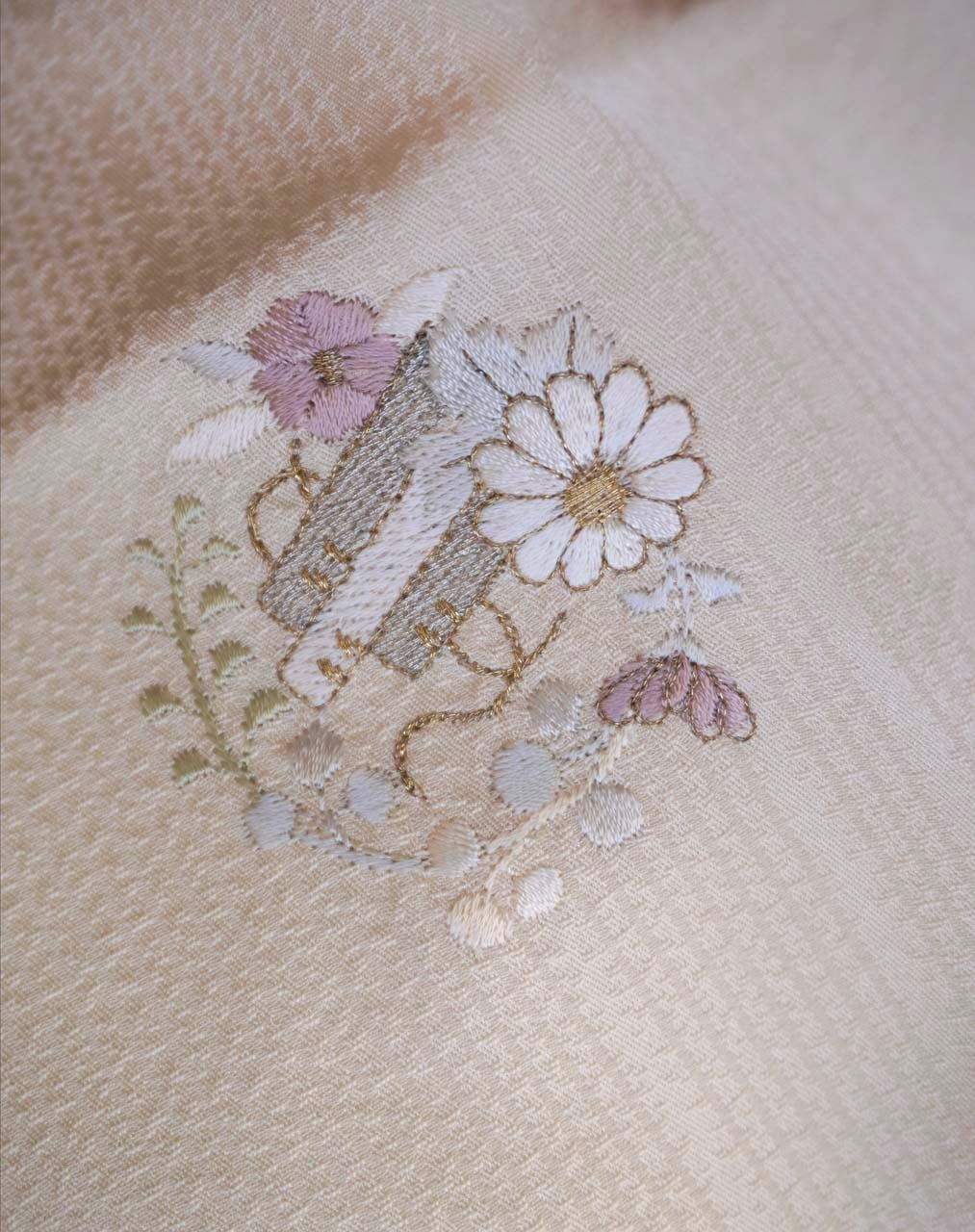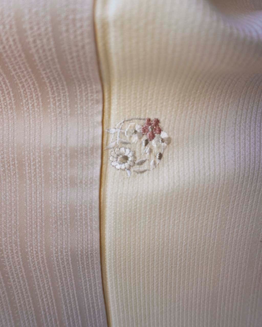 金銀糸使いも控えめな刺繍は主張しすぎず上品で、