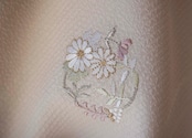 草花以外に、巻物の様な柄も花と一緒に刺繍されている