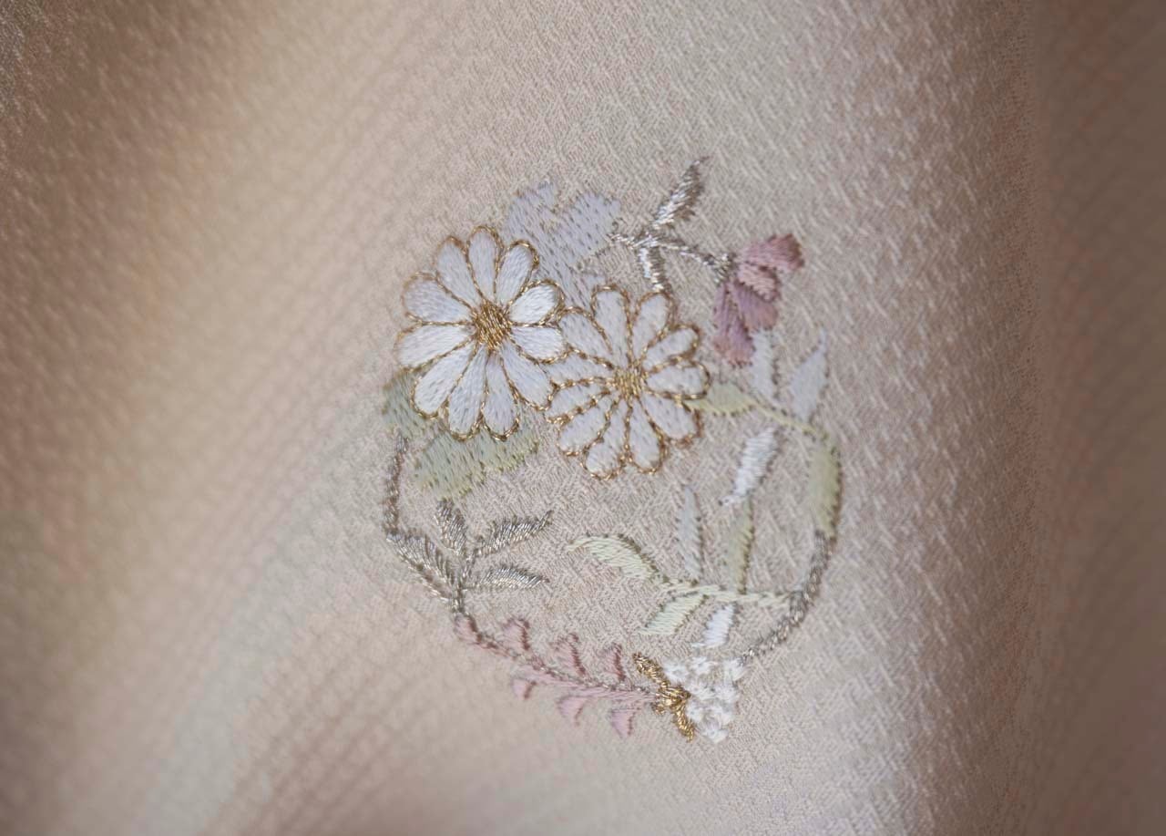 刺繍の丸花文は直径約3~4cmと控えめなサイズで