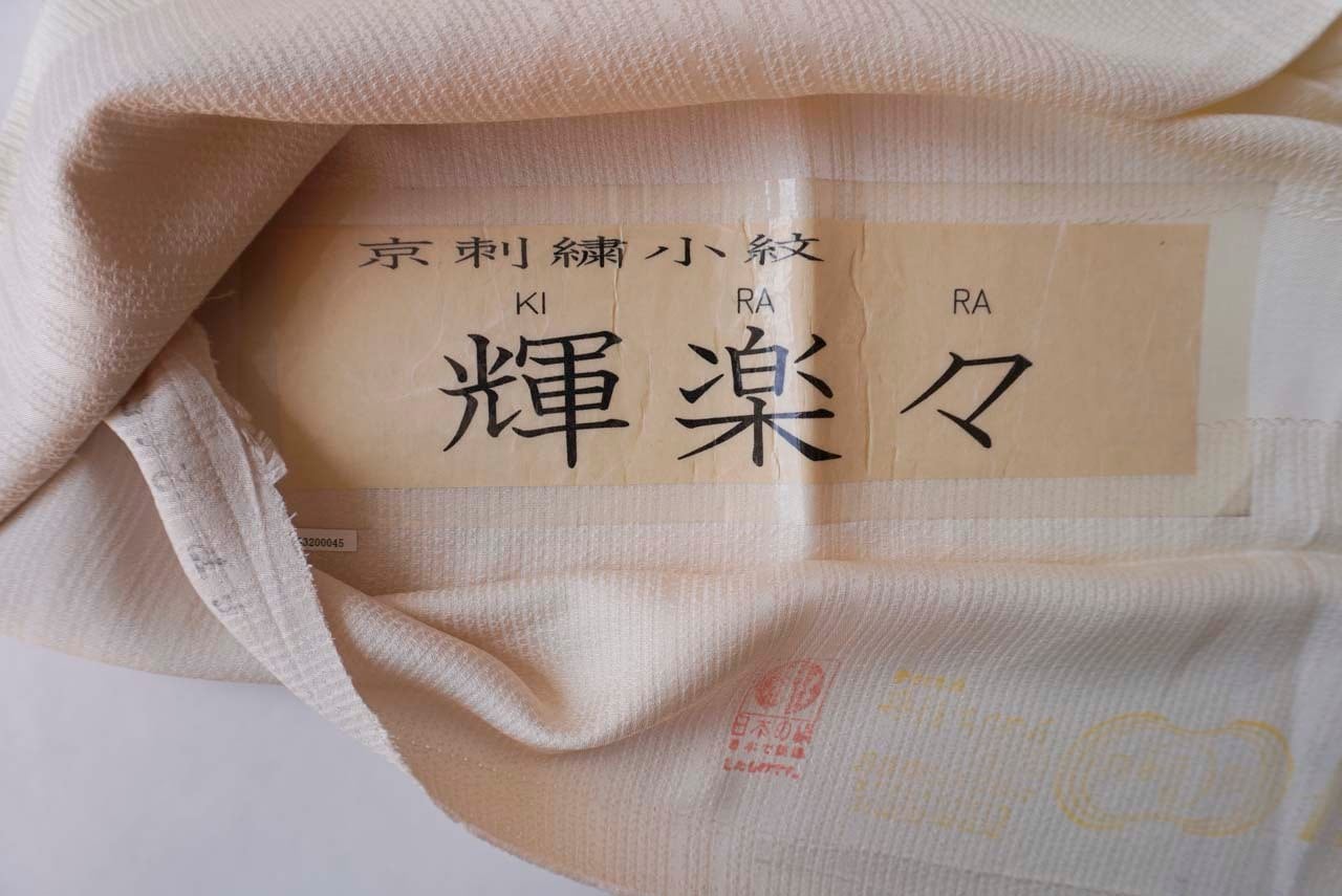 丸花文の刺繍が印象的な小紋です。