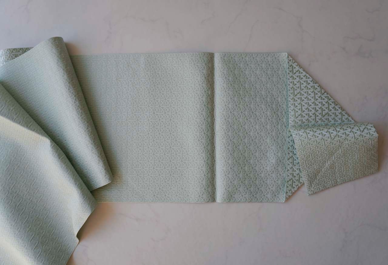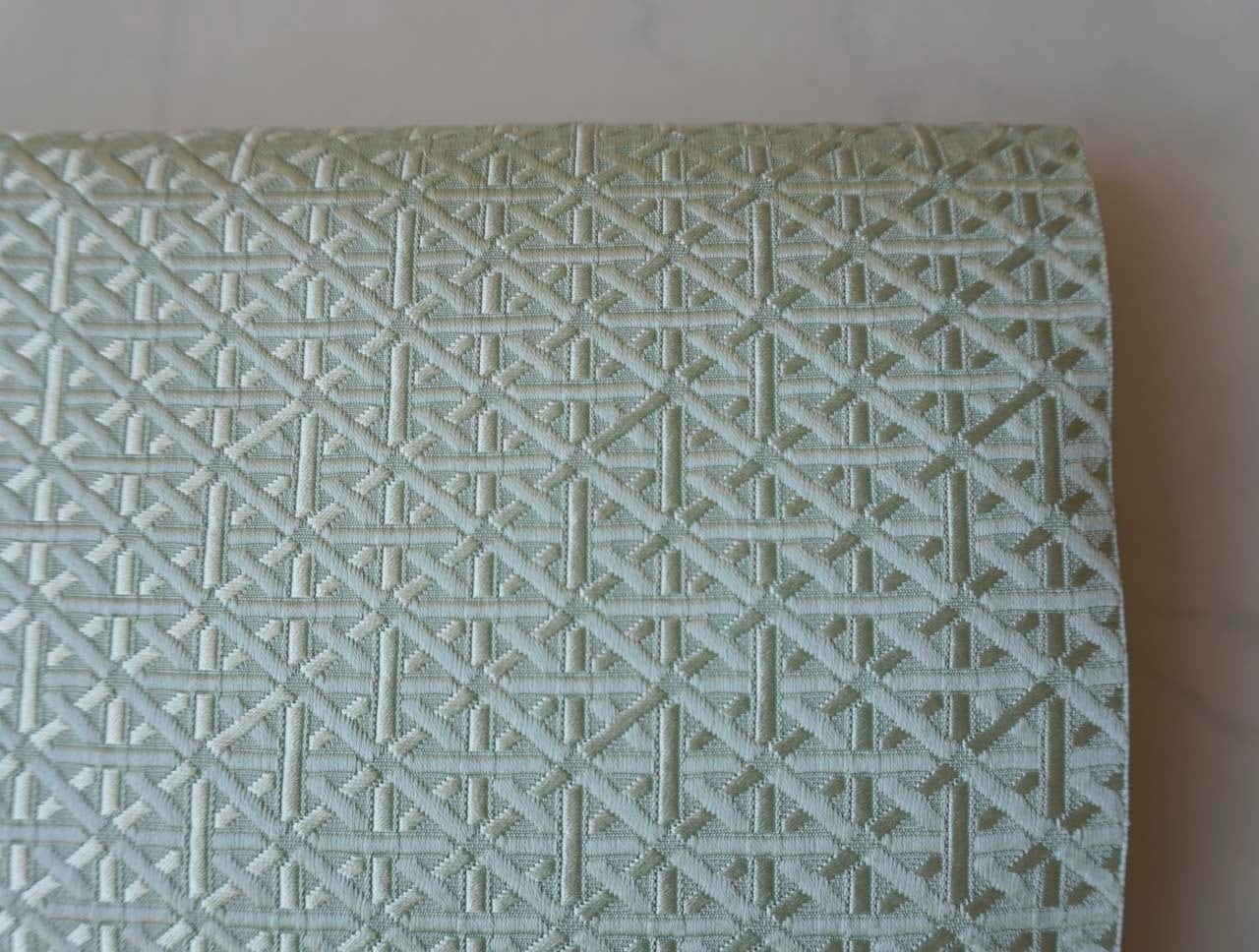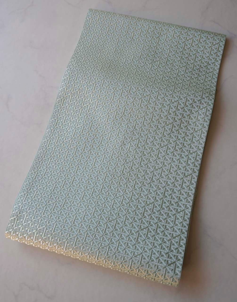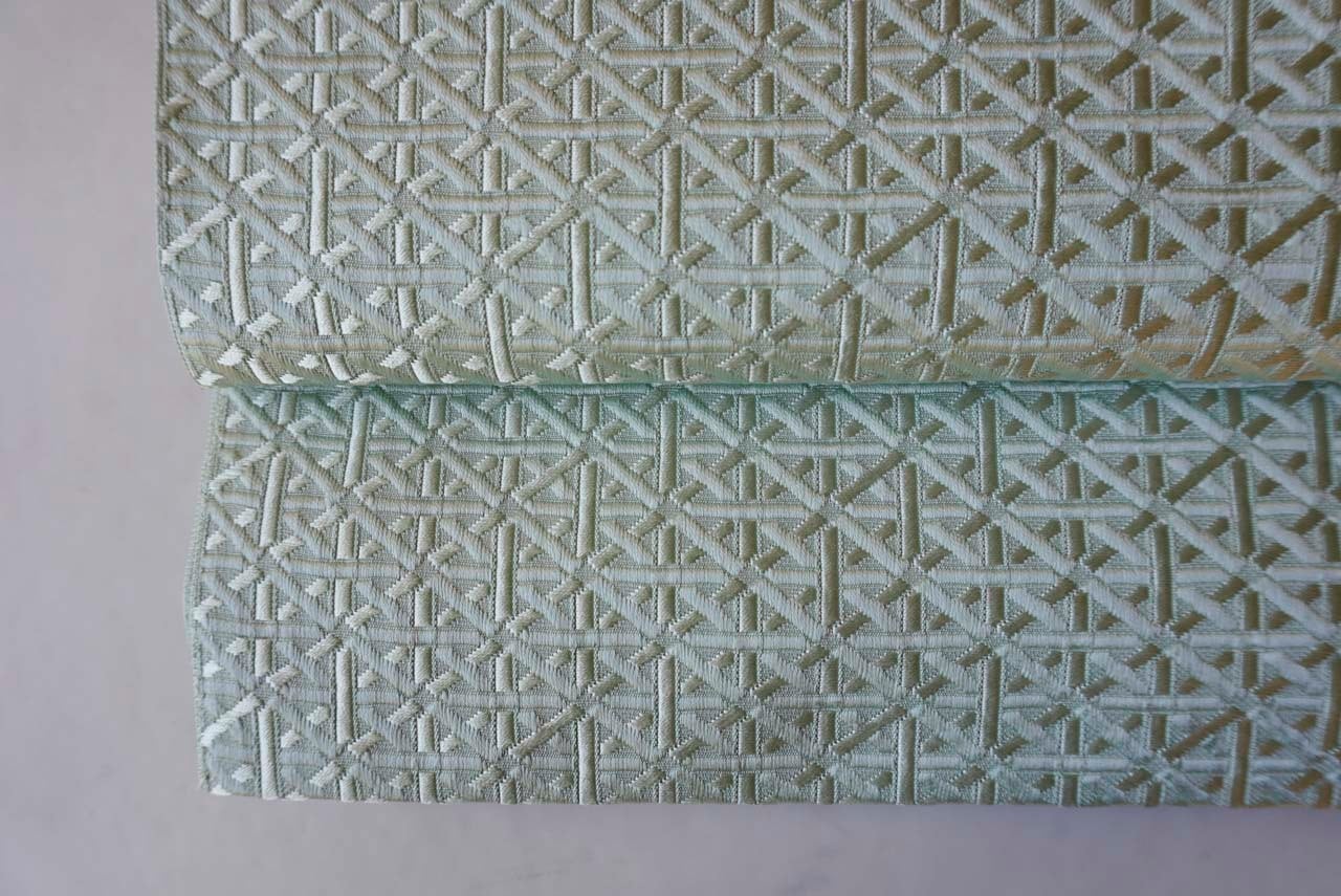 【なごや帯】青磁色地 幾何学文 博多織 八寸なごや帯