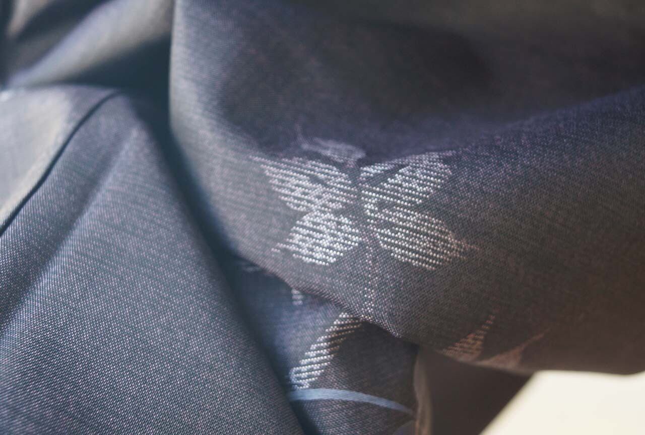 よく見ると、その植物文は織と染めで配され