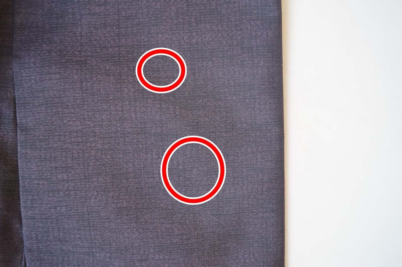 ・薄いですが、左衿に筋汚れ、右衿に3㎜ほどのシミがあります(画像18.19)