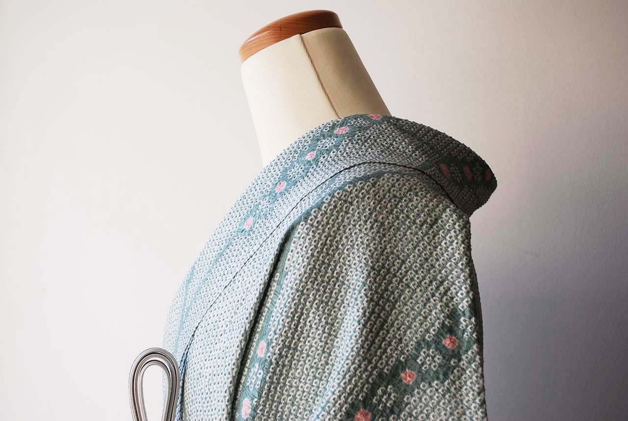 【袷】浅縹色 総絞り小紋