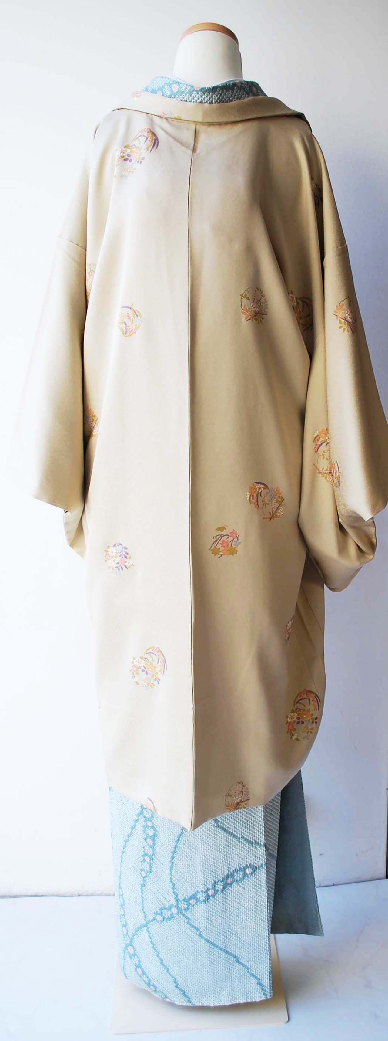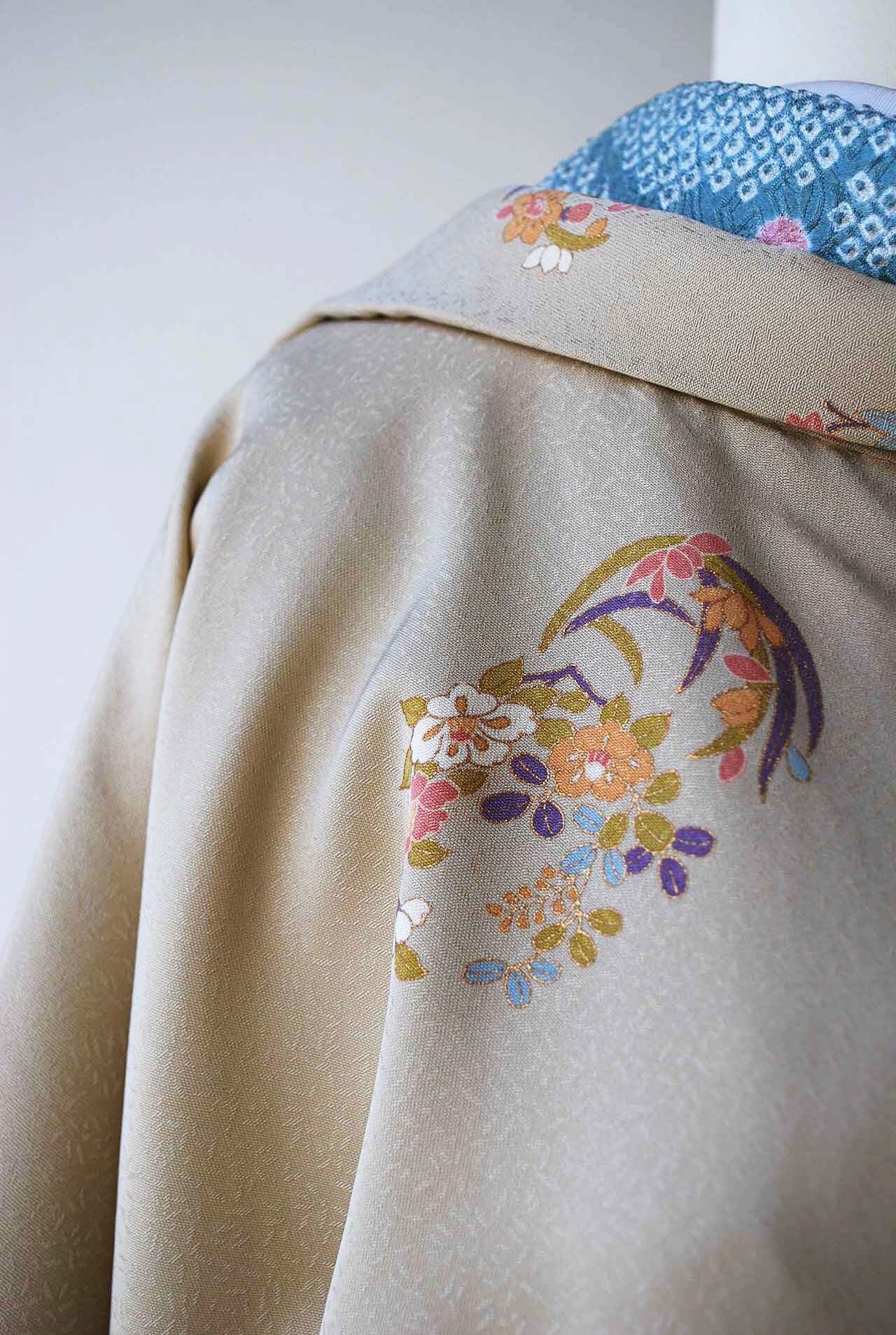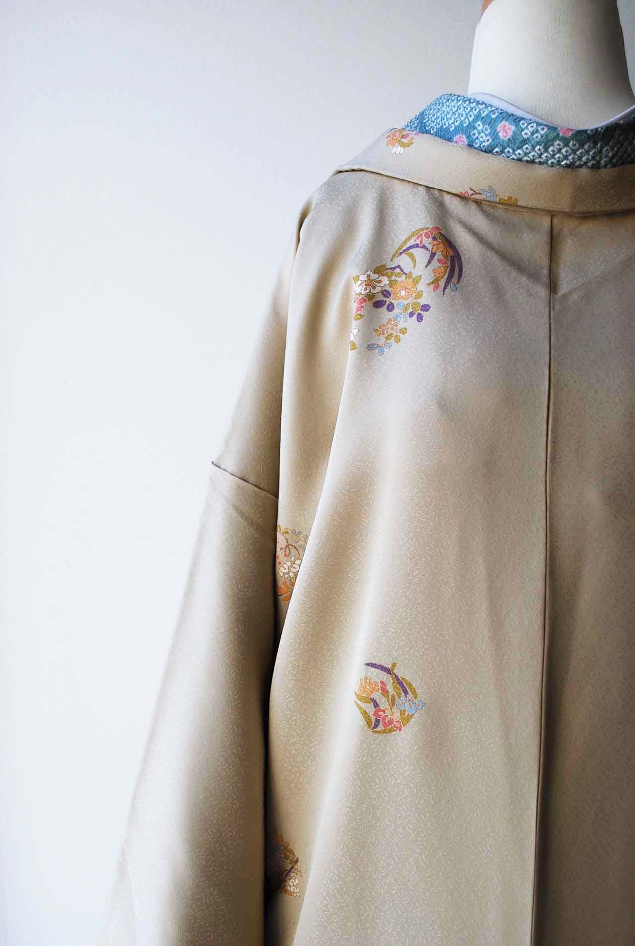 【袷羽織】亜麻色 草花丸文 袷羽織