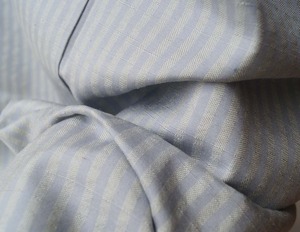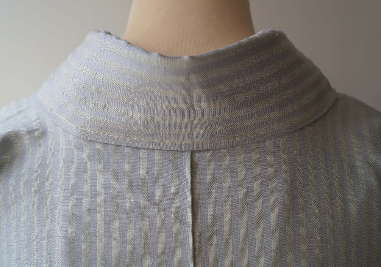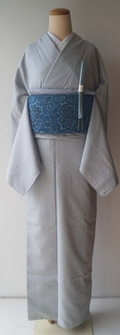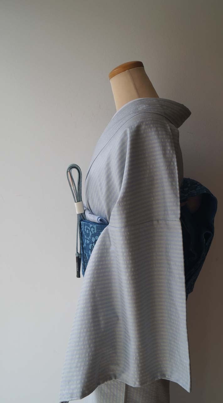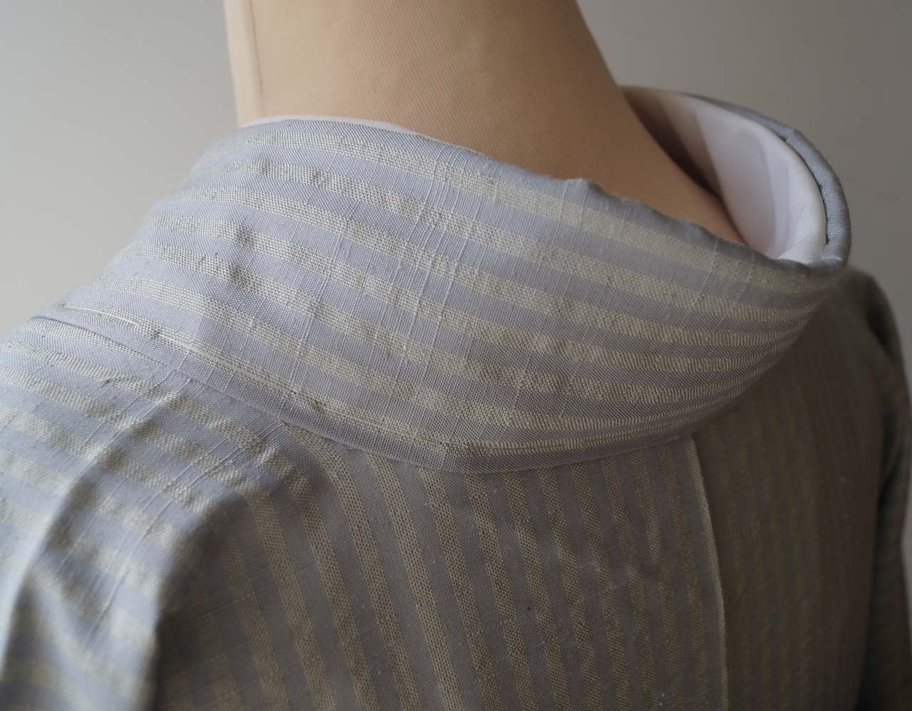【袷】藤鼠×淡灰黄緑 縦縞文 紬