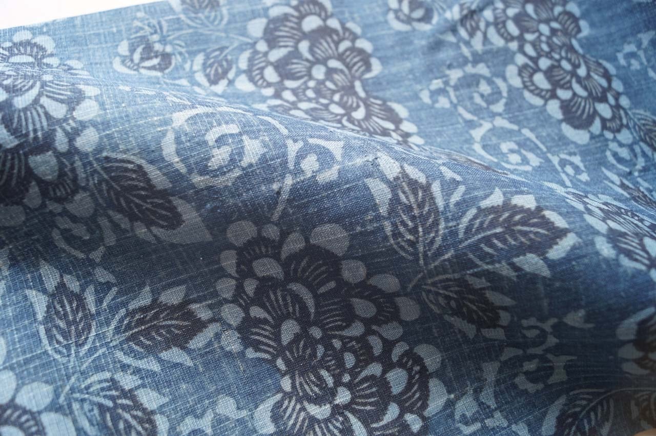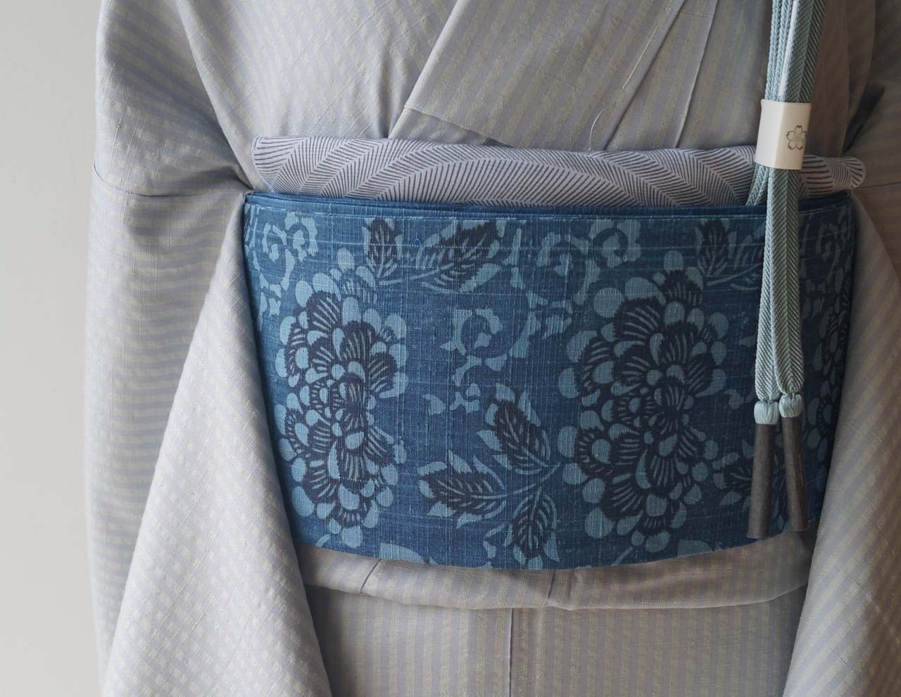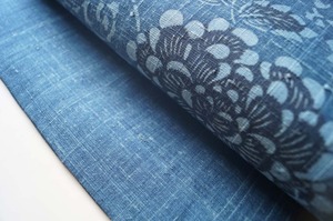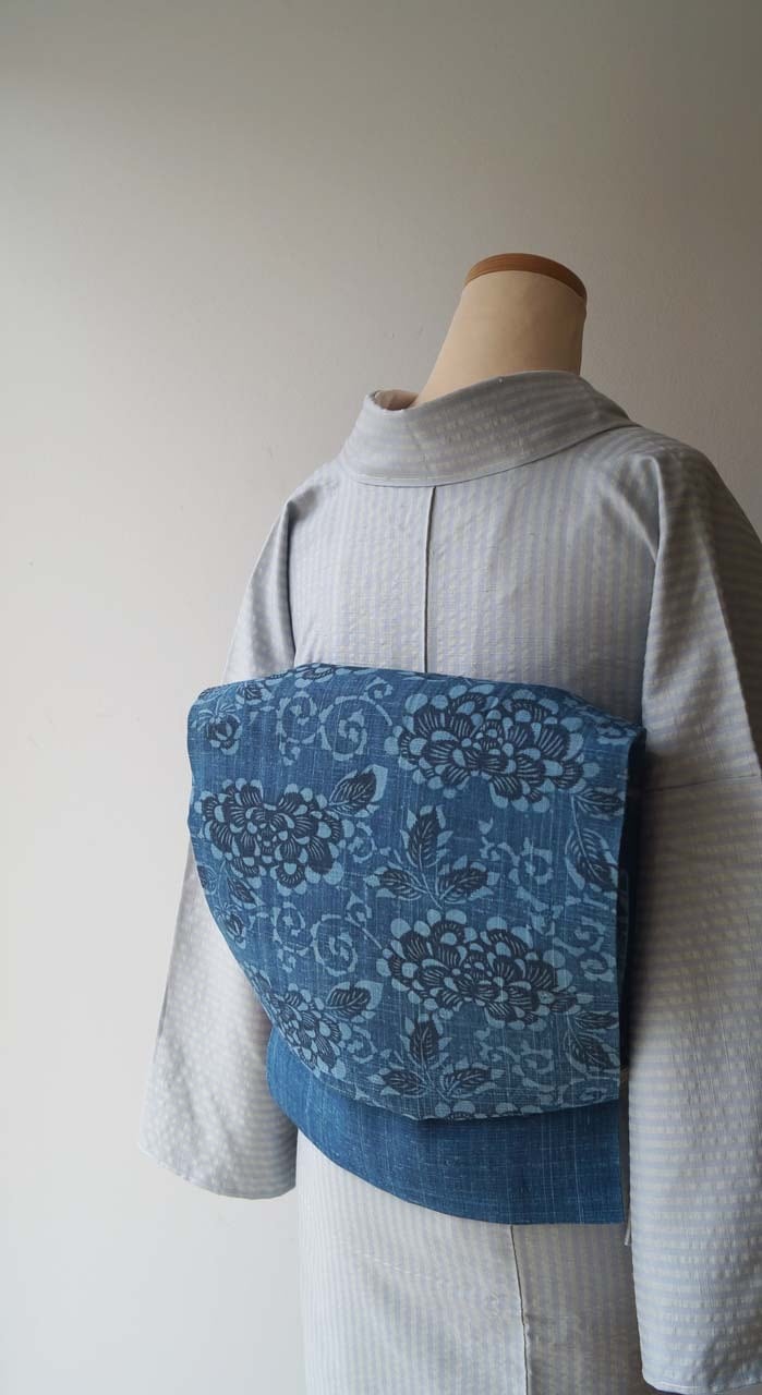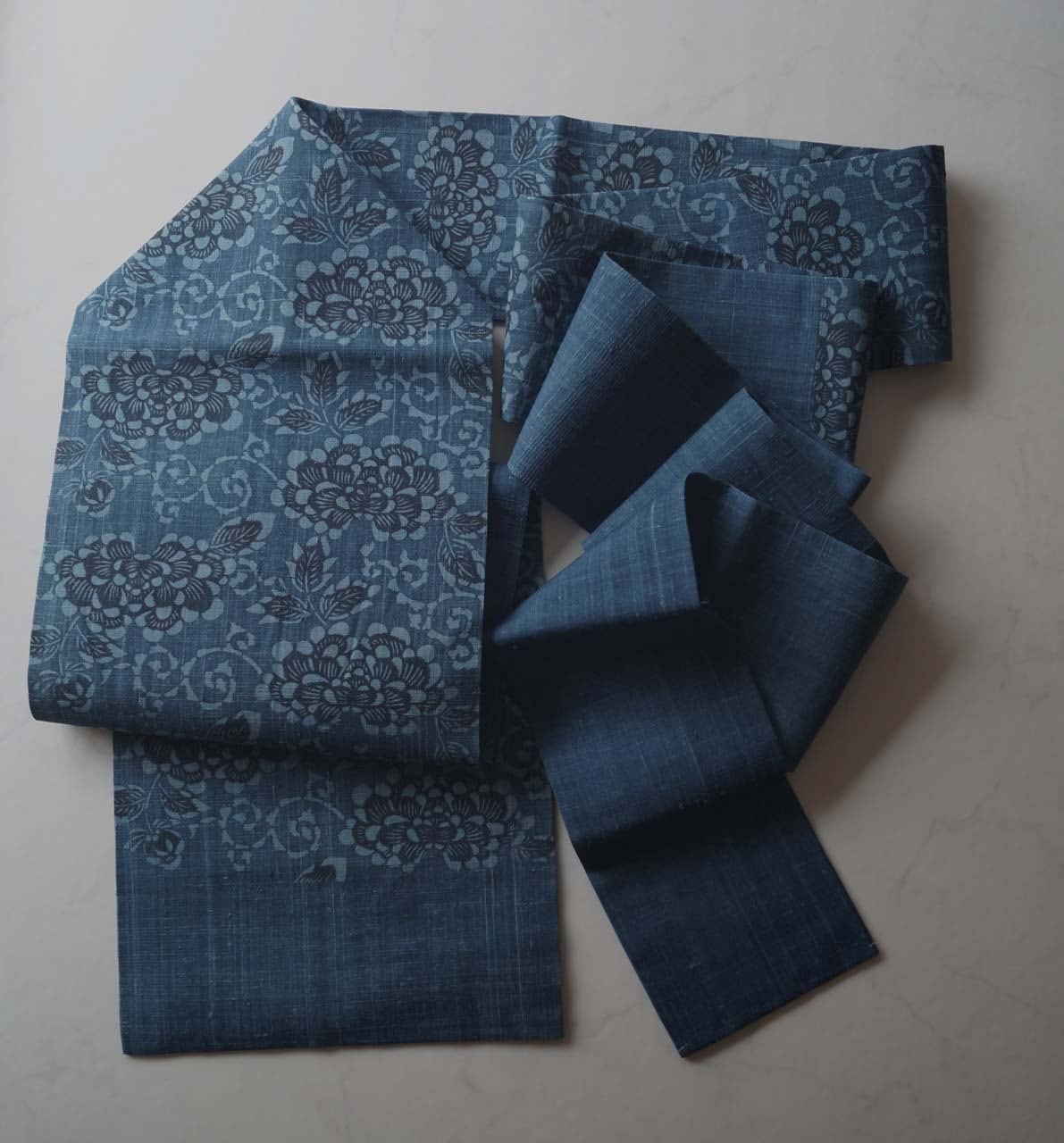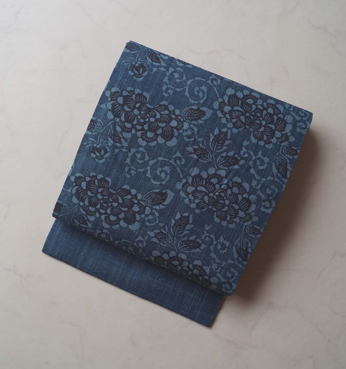 【なごや帯】綾の手紬染織工房 本建正藍染 抽象植物文 南部古代型染 なごや帯
