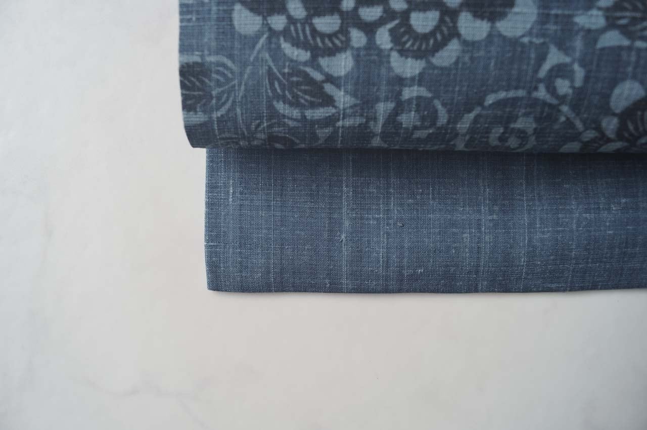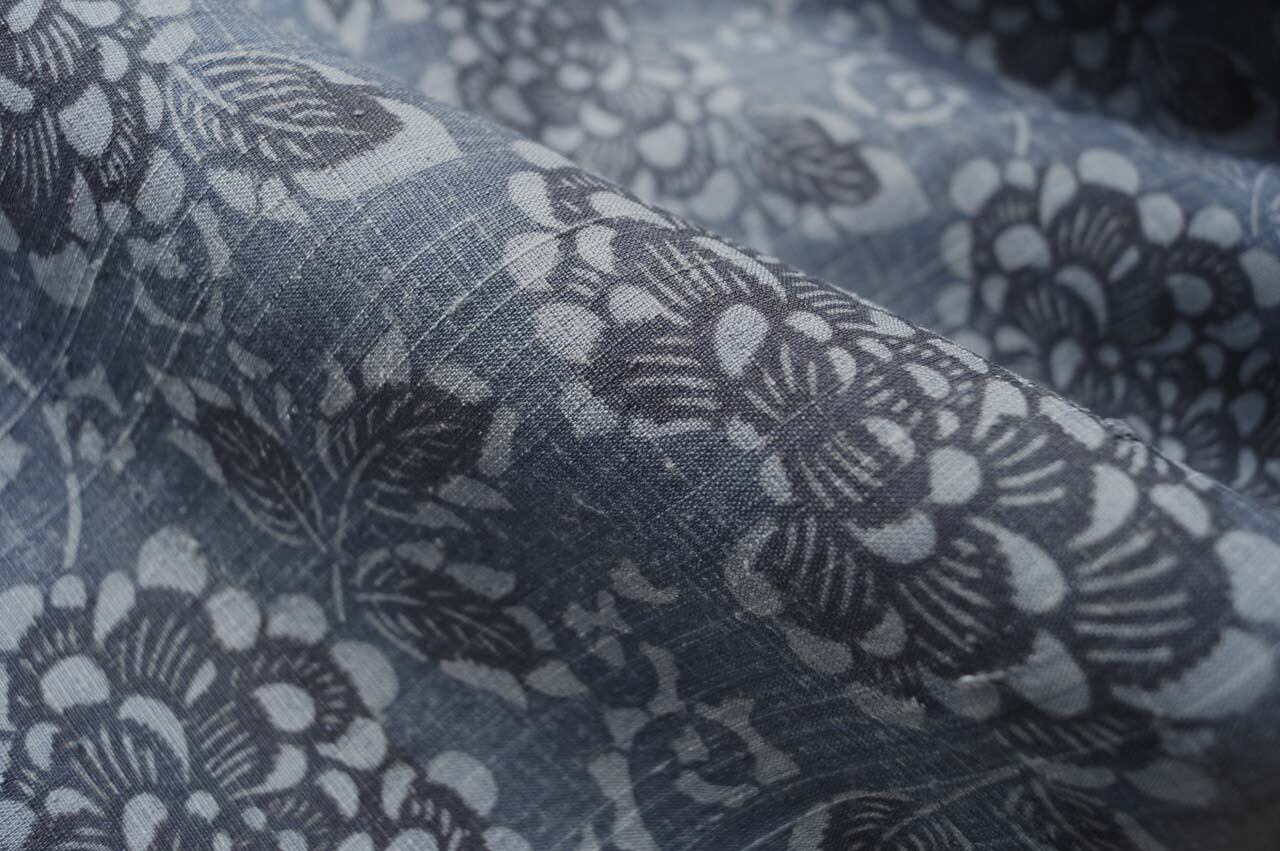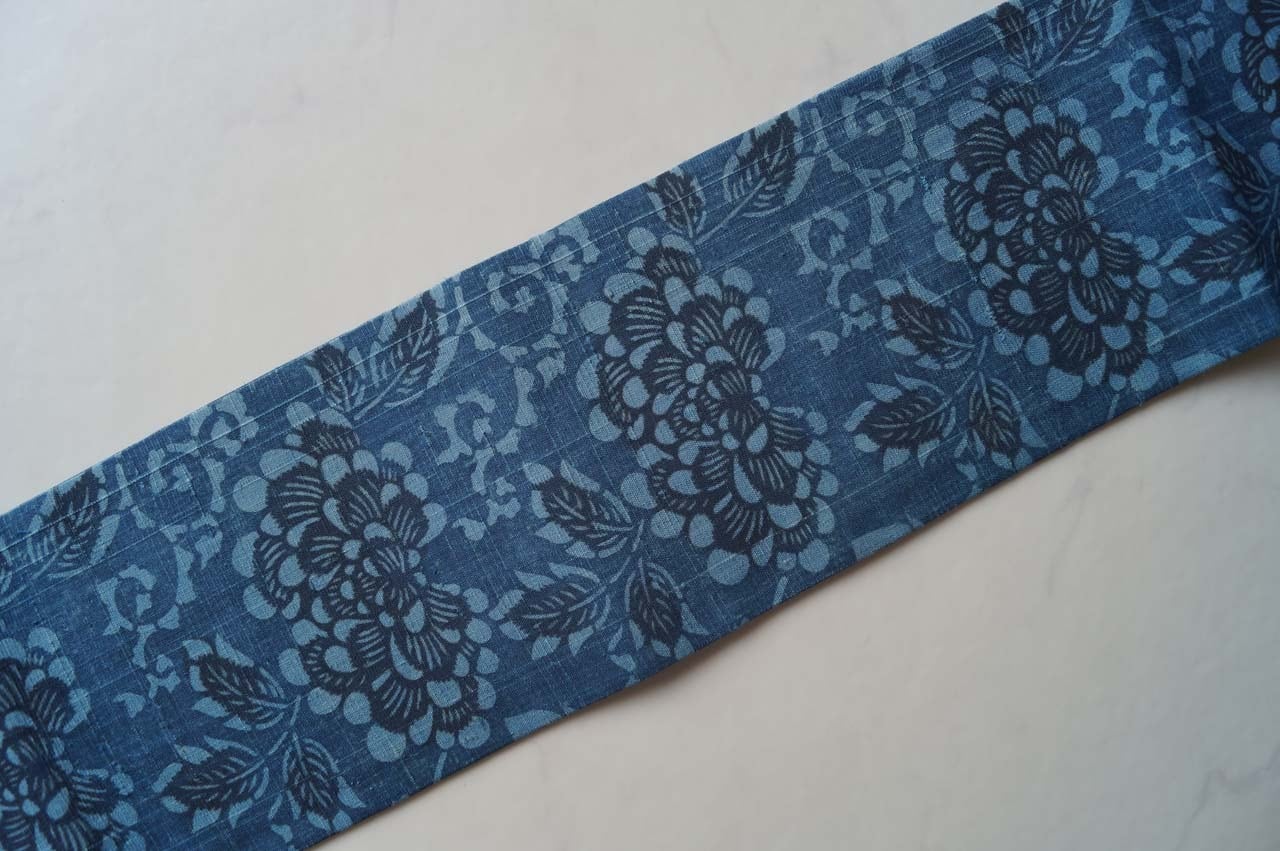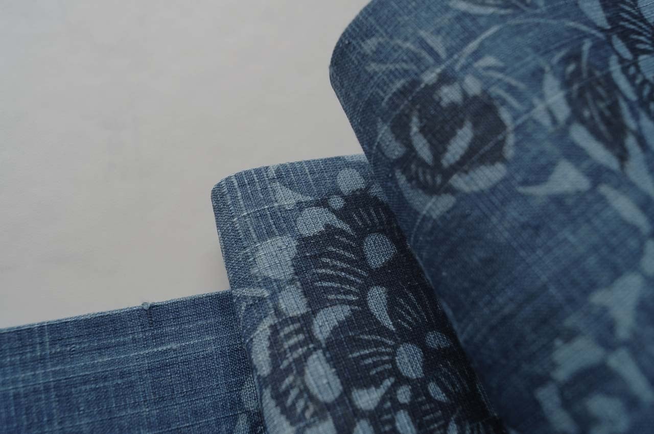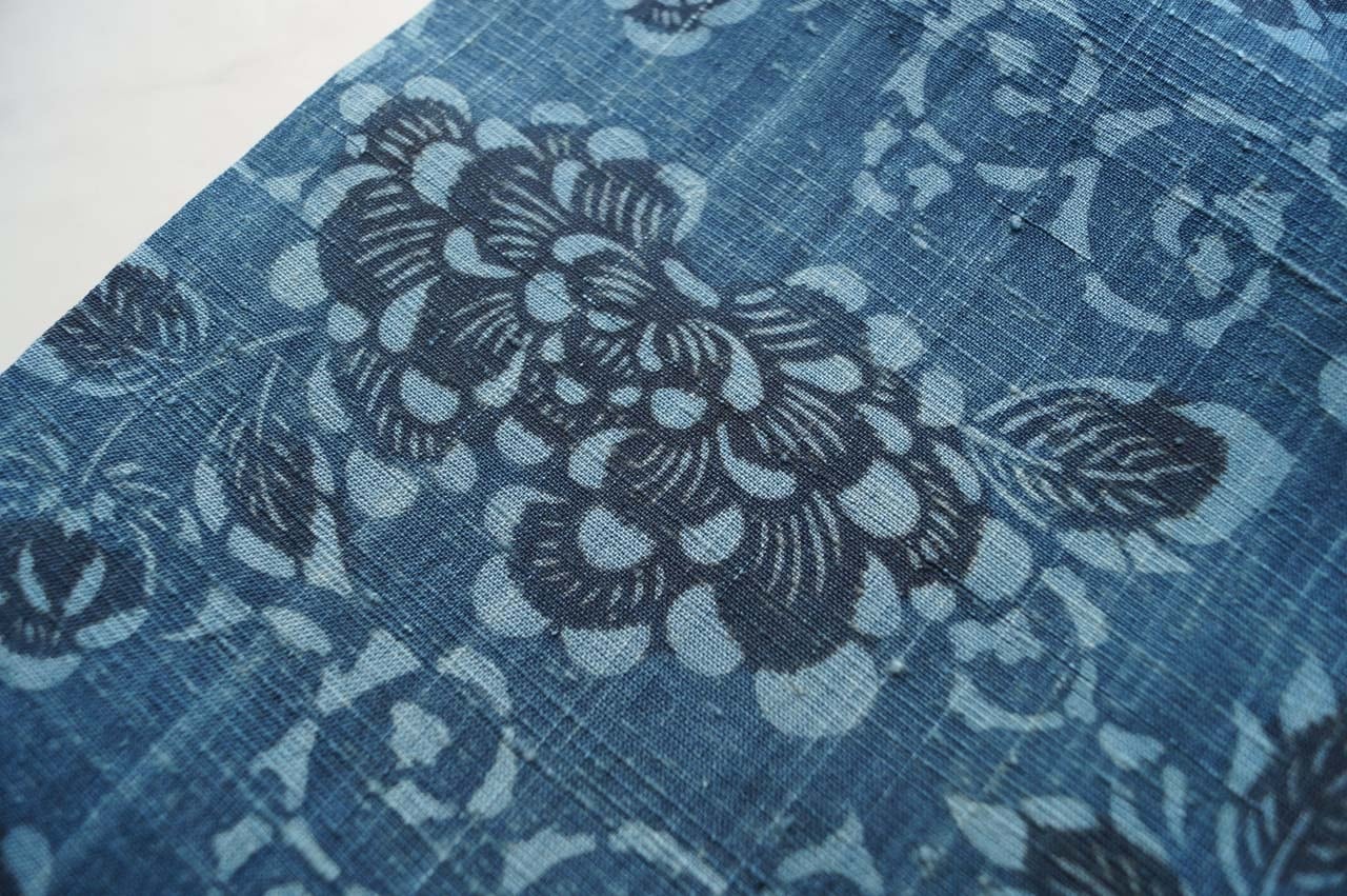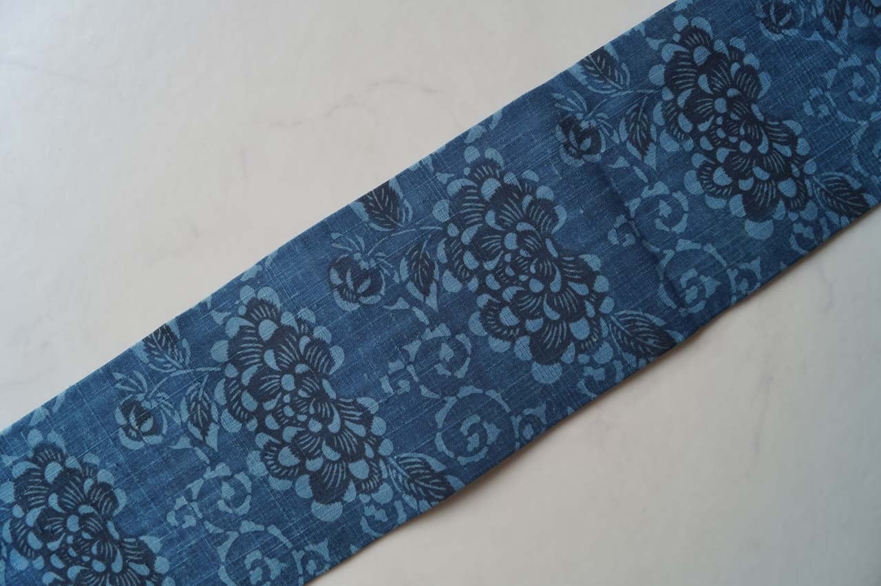 【なごや帯】綾の手紬染織工房 本建正藍染 抽象植物文 南部古代型染 なごや帯