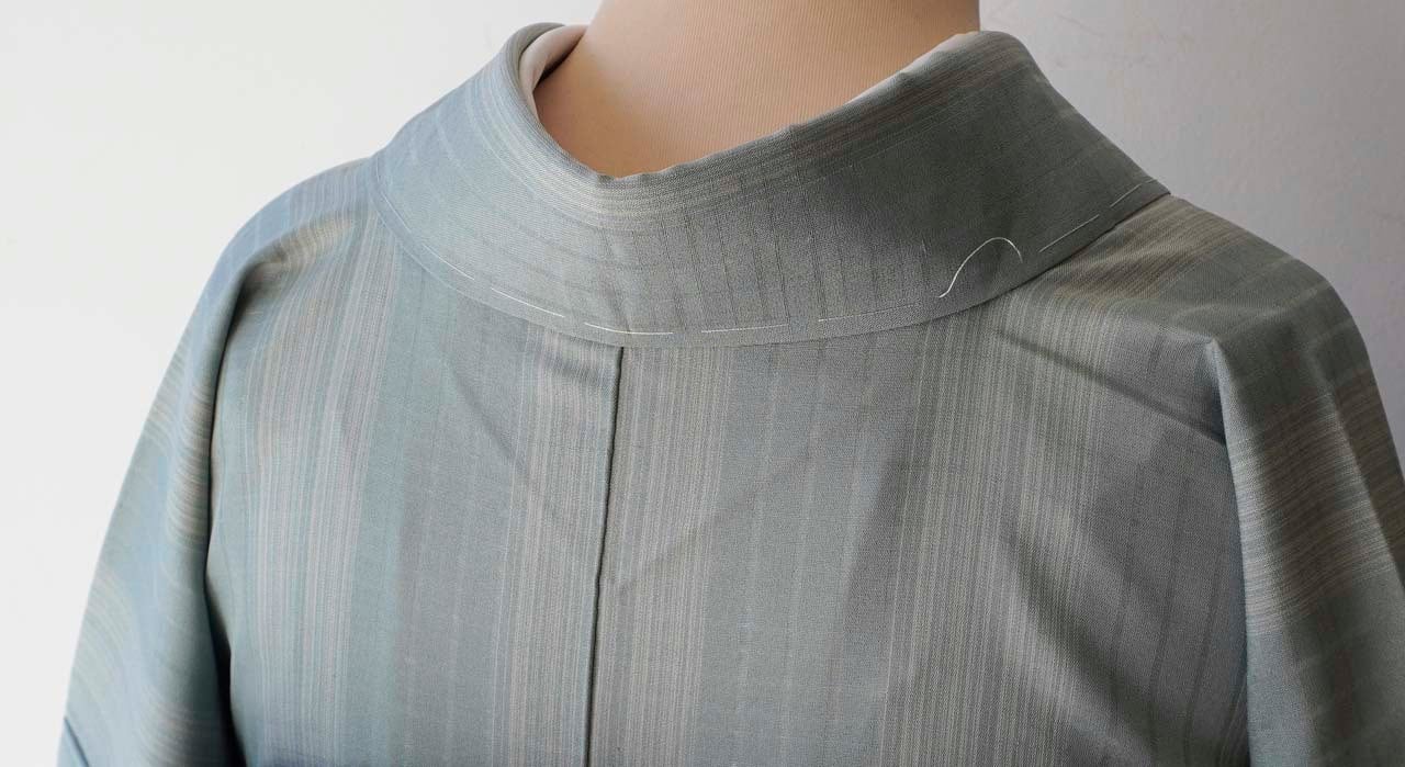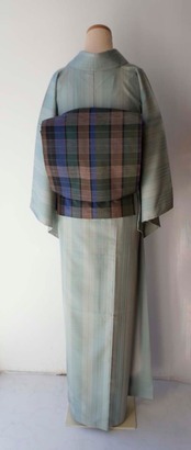 灰味がかった淡い青系の紬です。