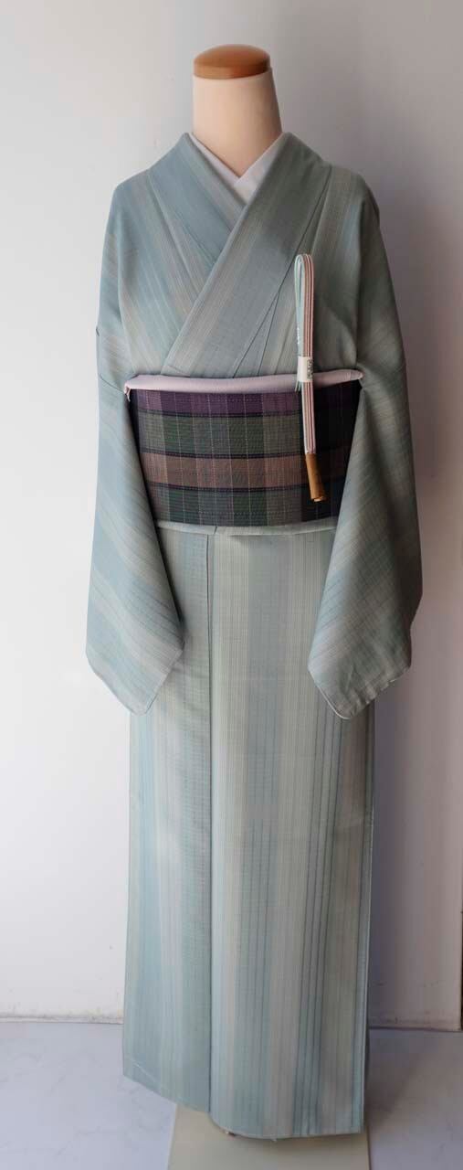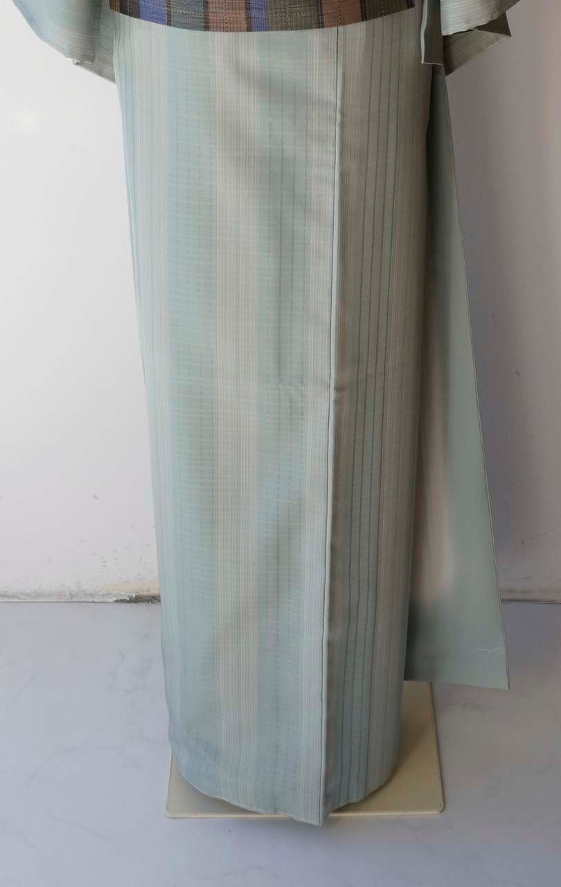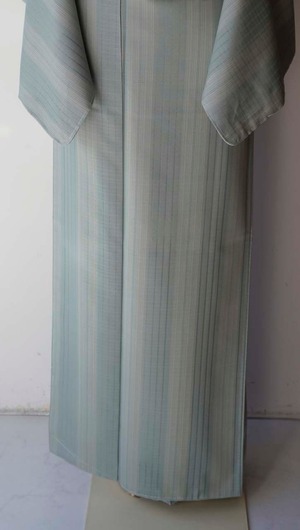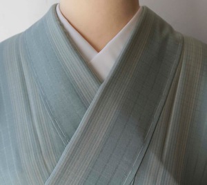 【袷】スモールサイズ 白群地 縞文 紬