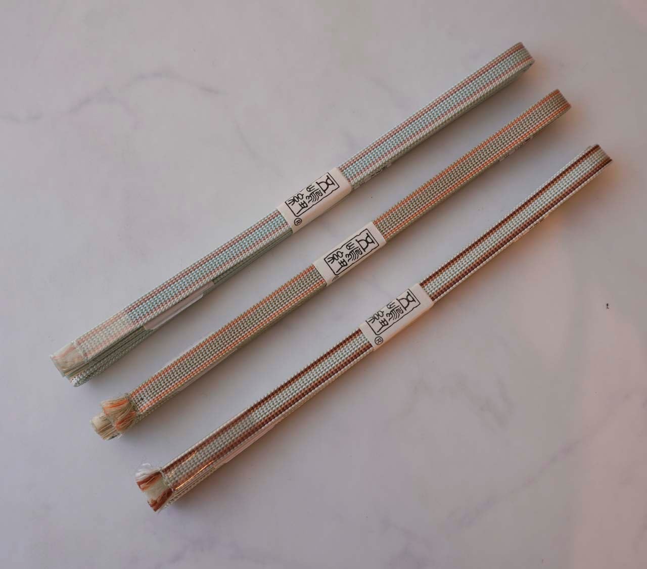 【帯締め】水色×ときがら茶×生成り色 三分紐 両端ライン 250903㉔