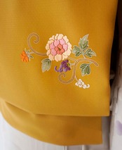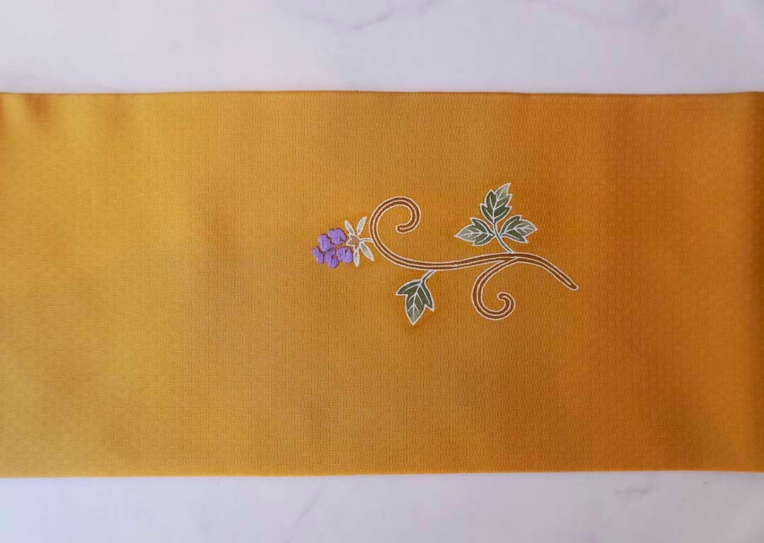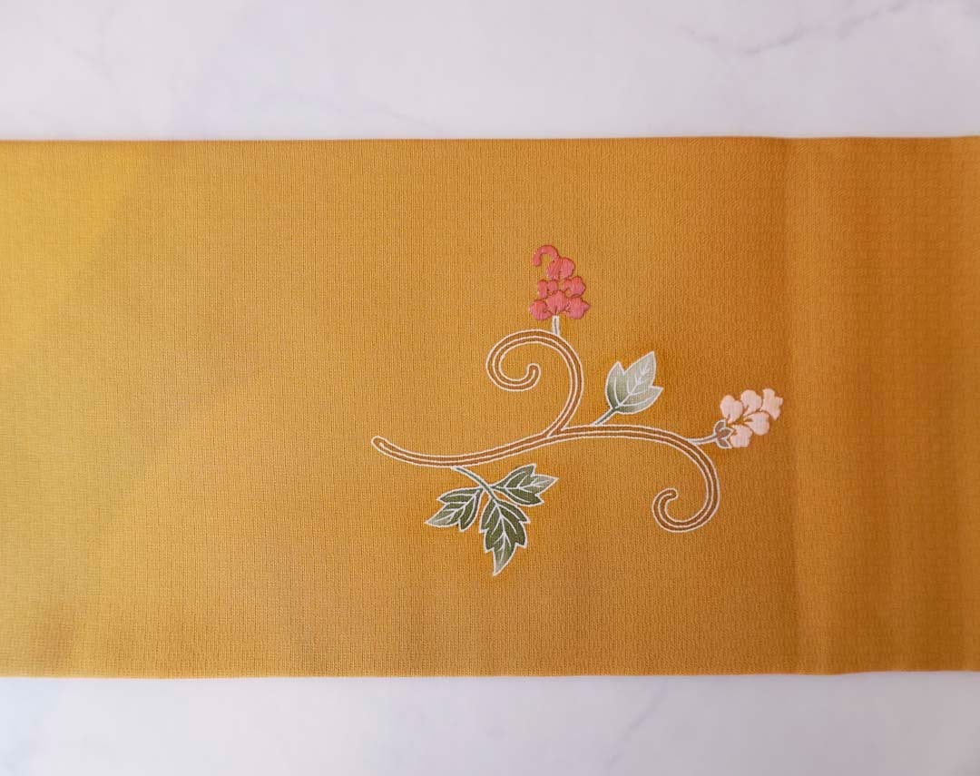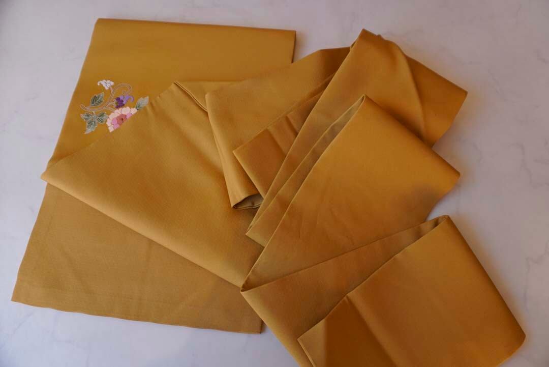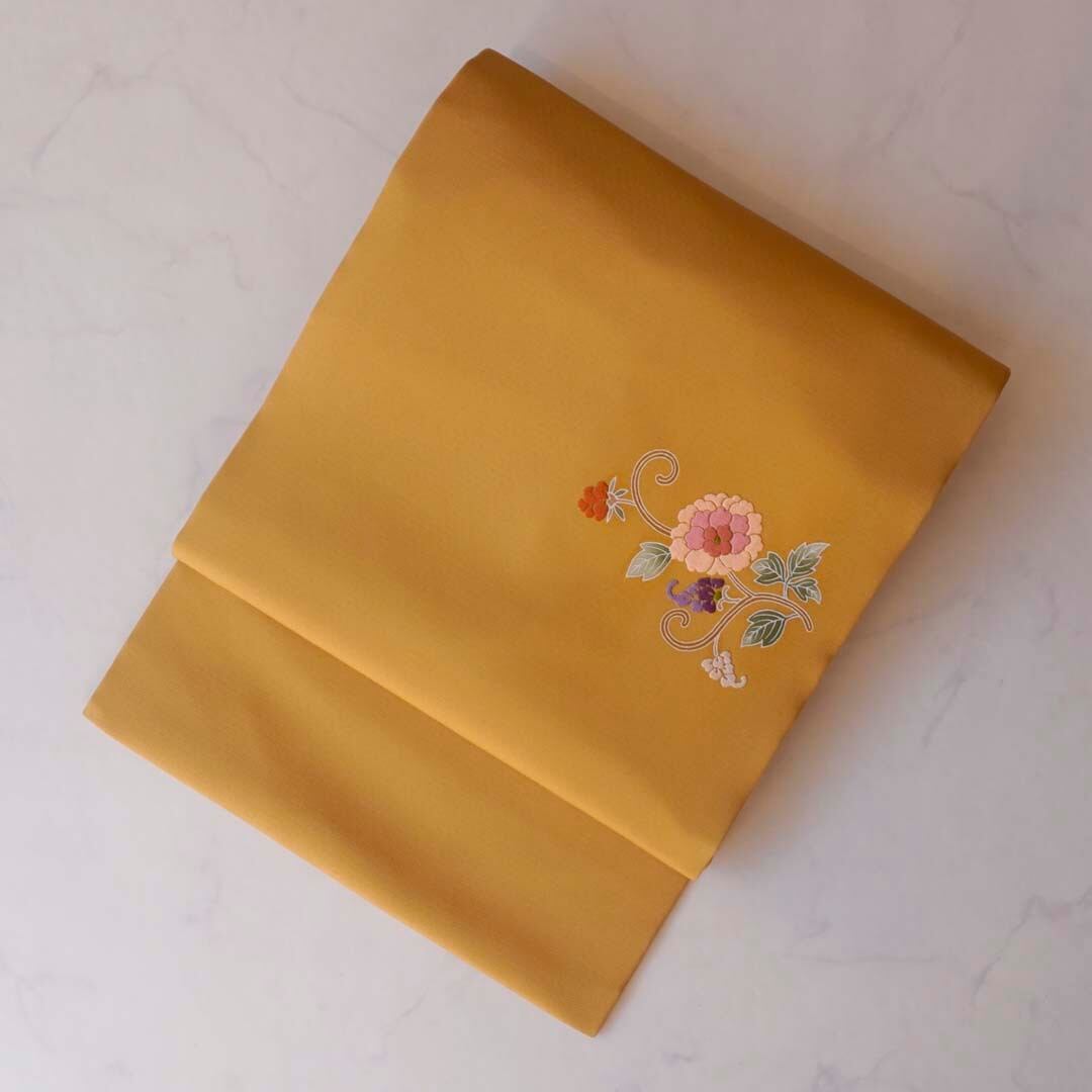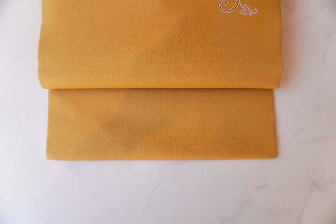仄かな地紋が浮かぶ山吹茶色の地に、