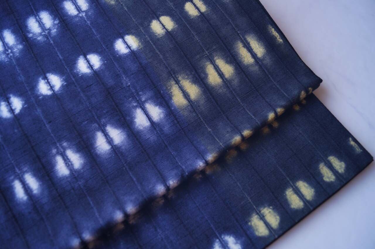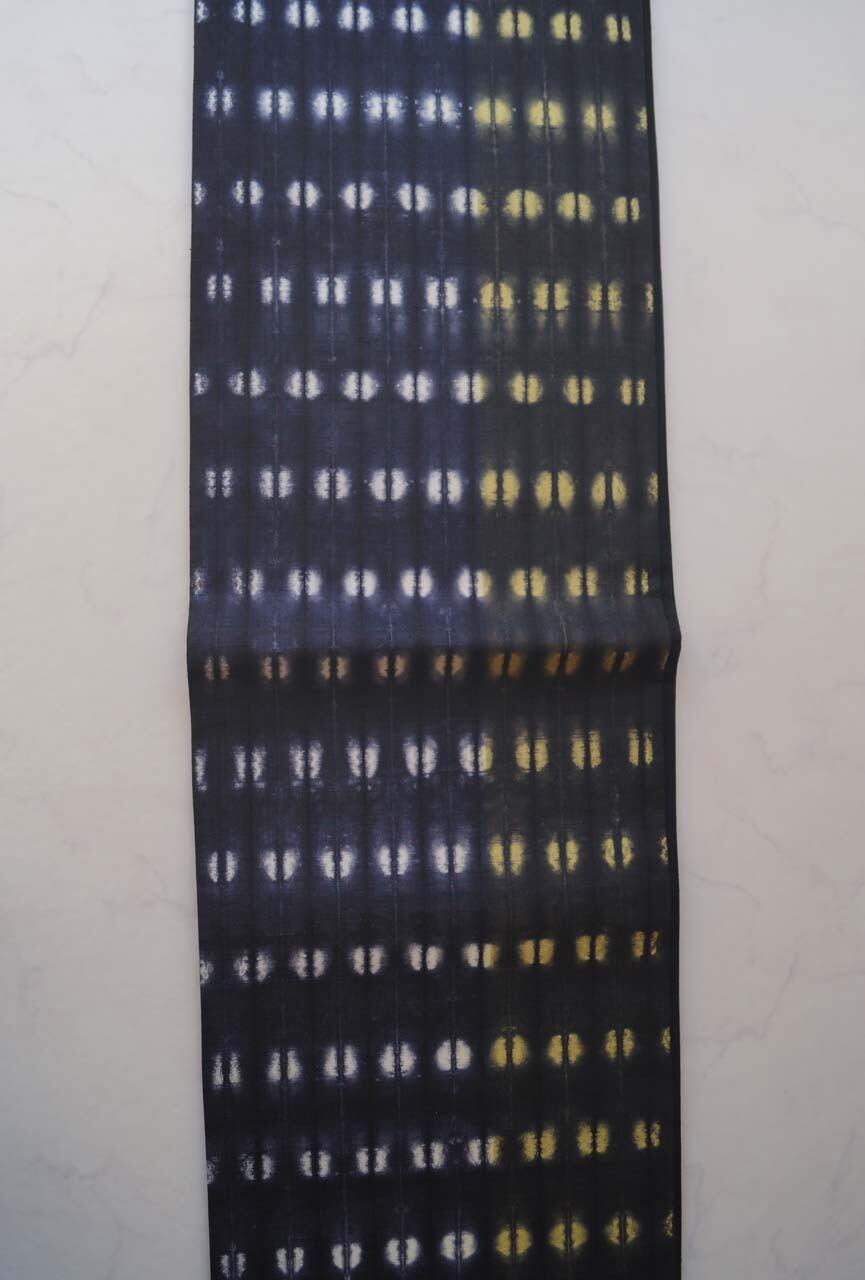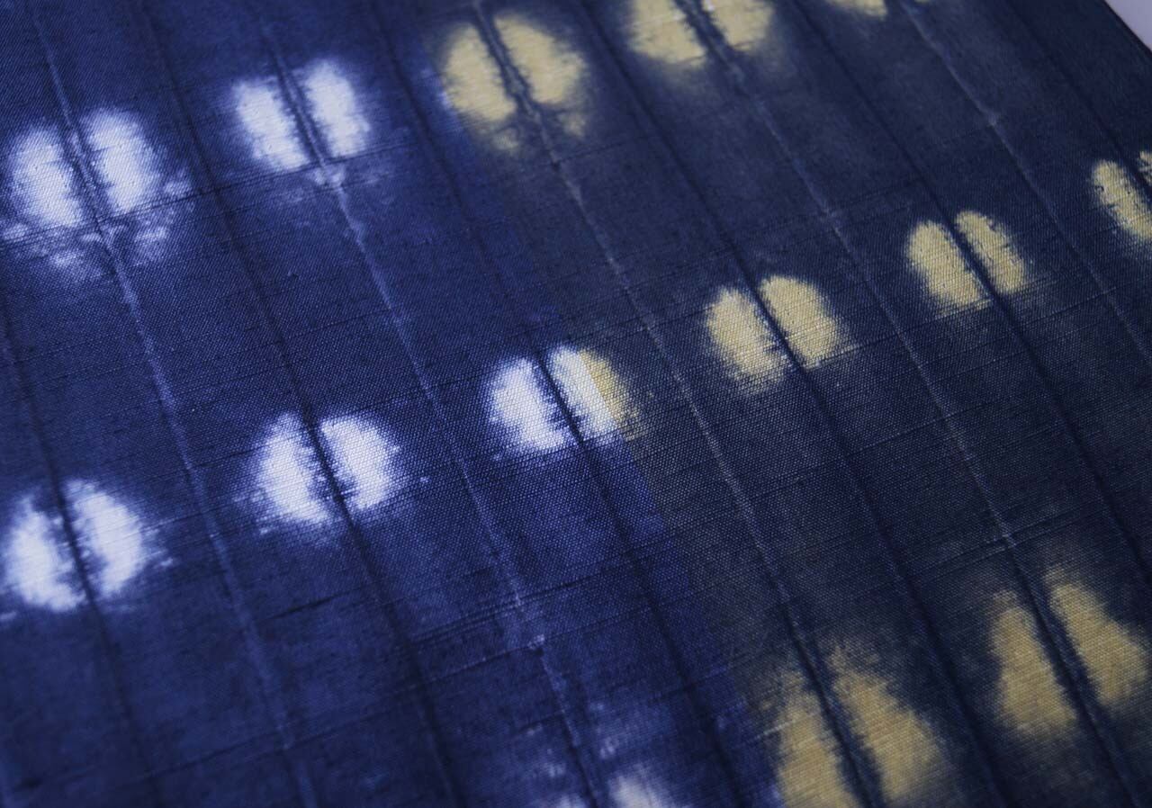 濃い藍色、漆黒に白と淡黄の染め分け