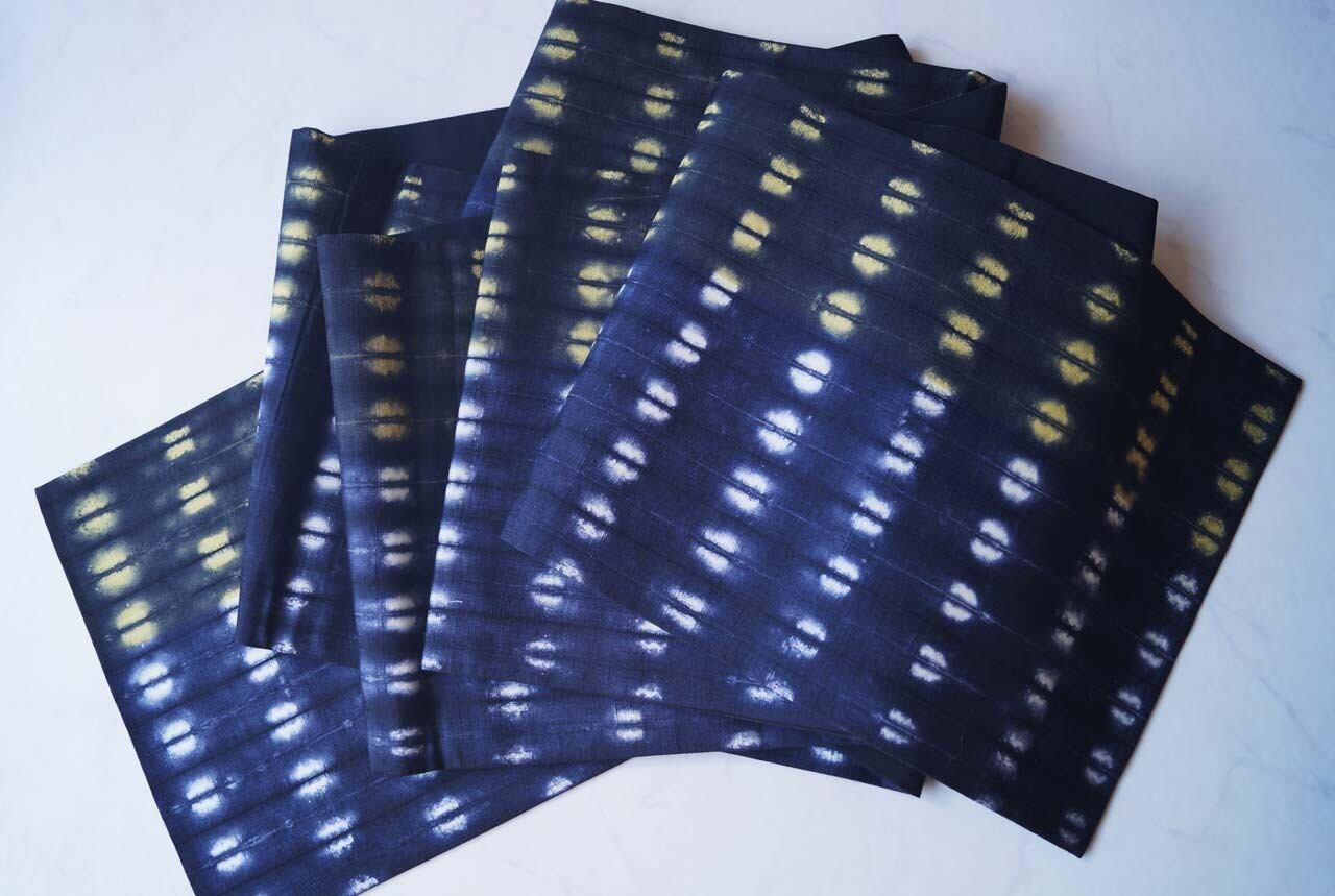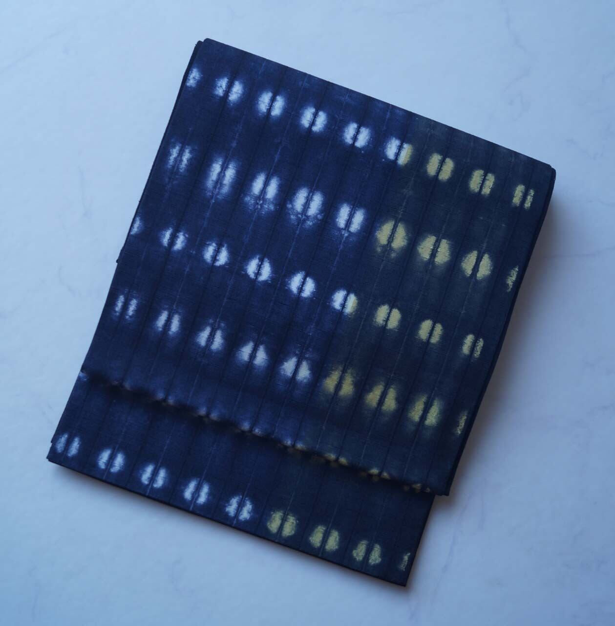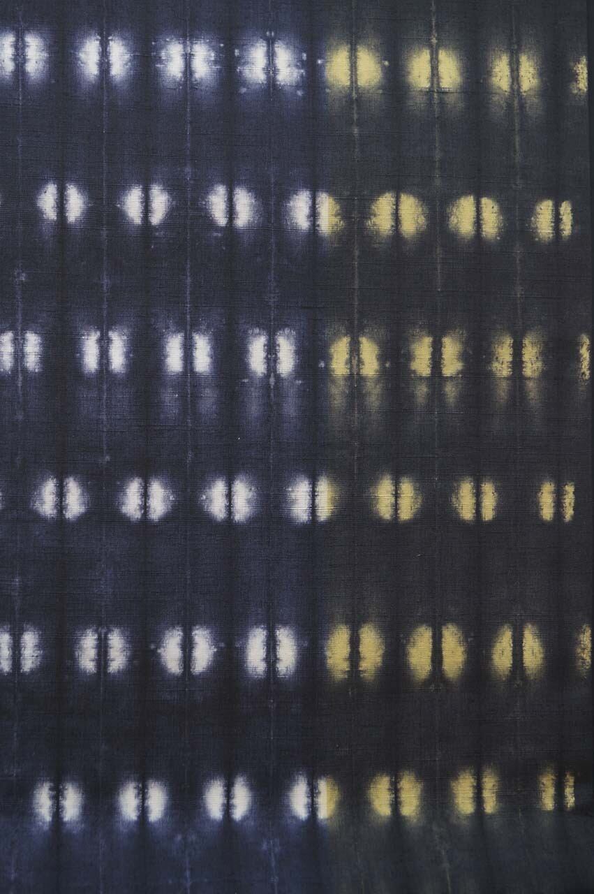 濃い藍色、漆黒に白と淡黄の染め分け
