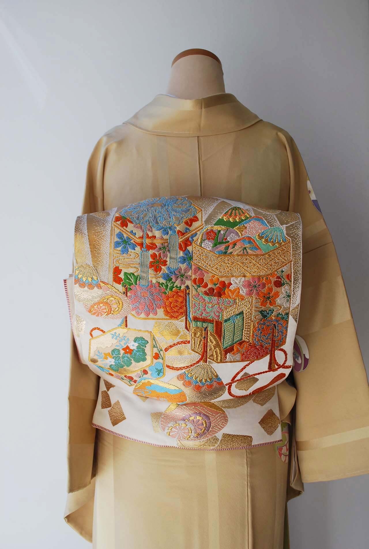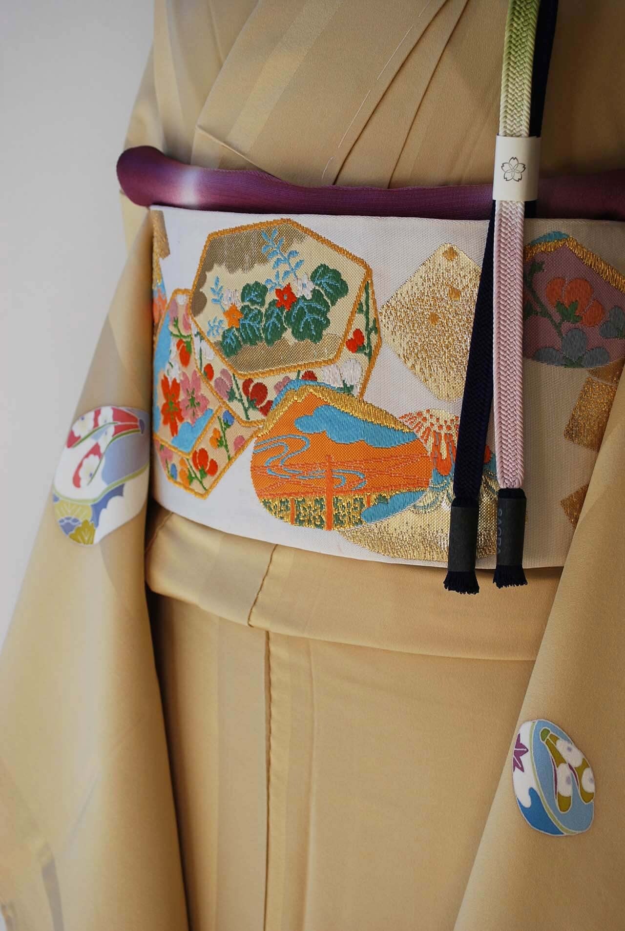 アンティーク帯を合わせて遊び心を
