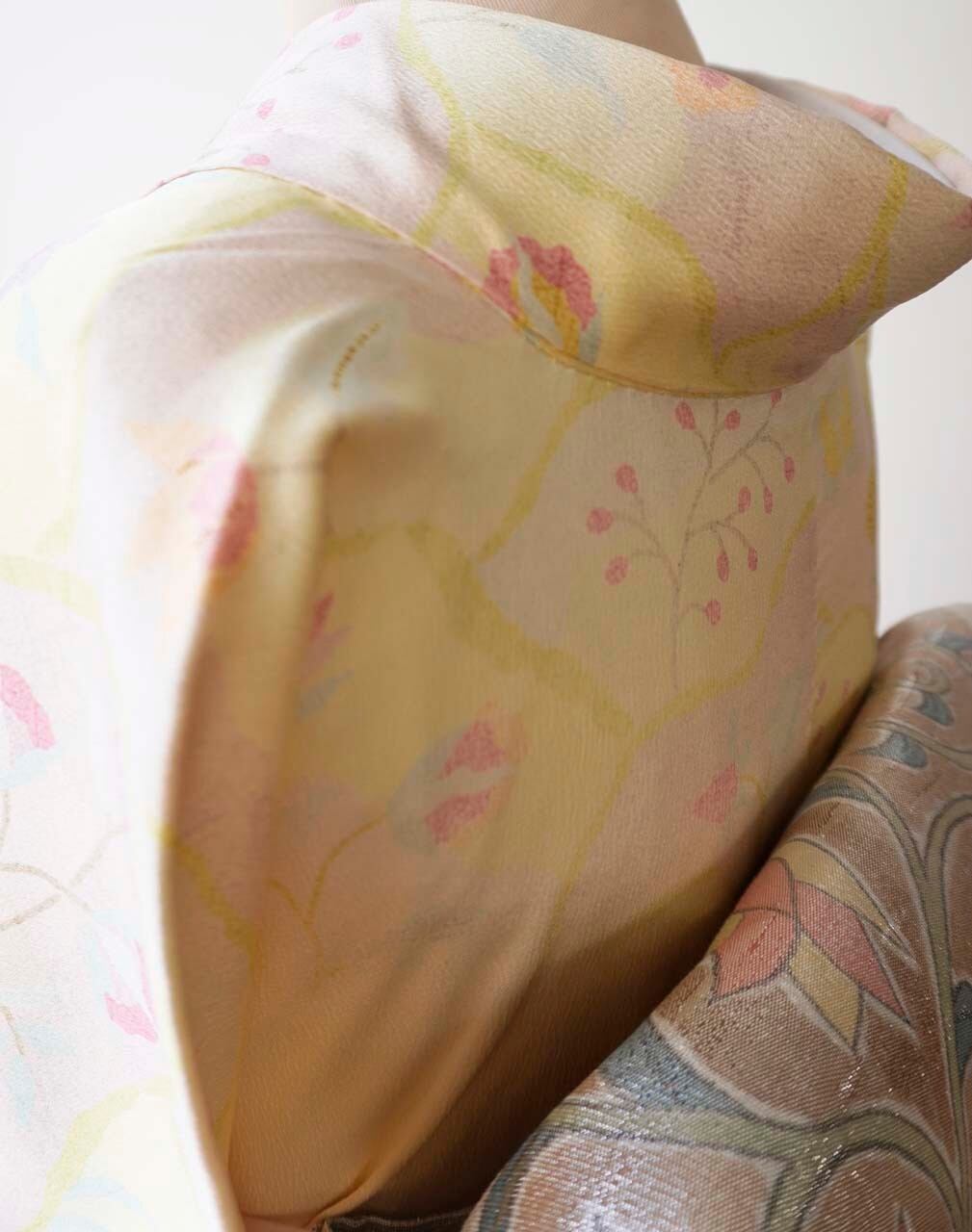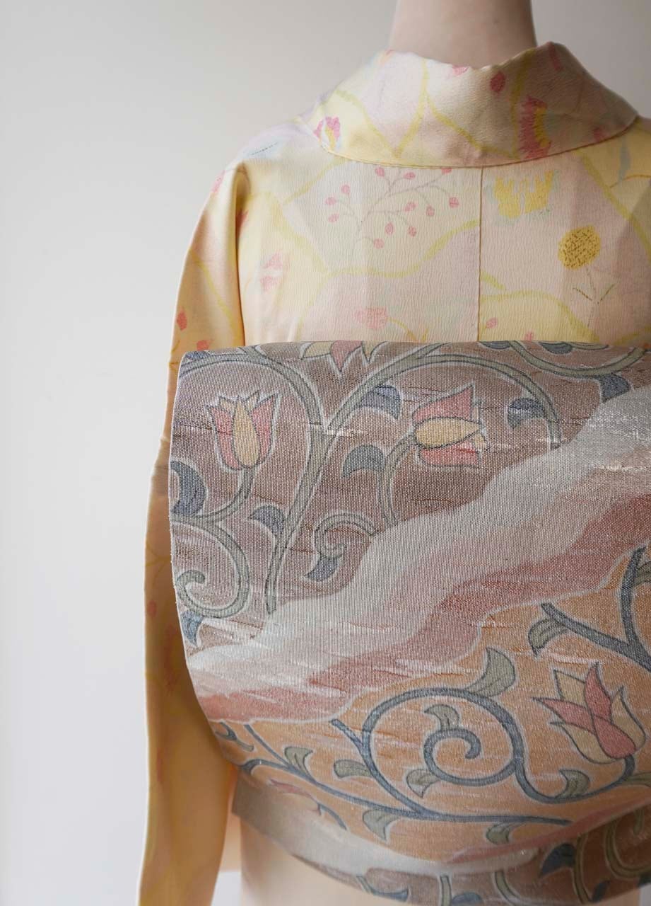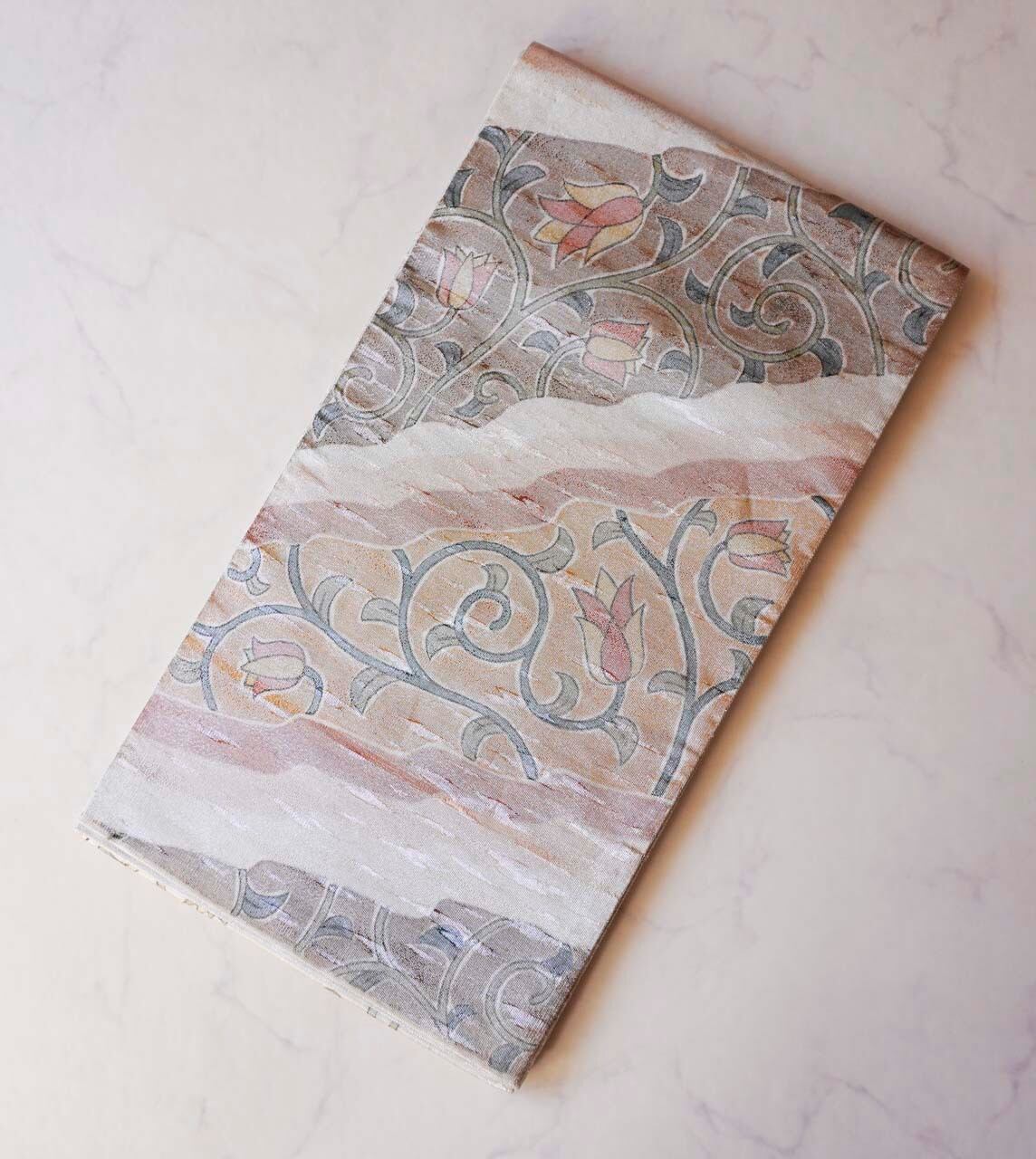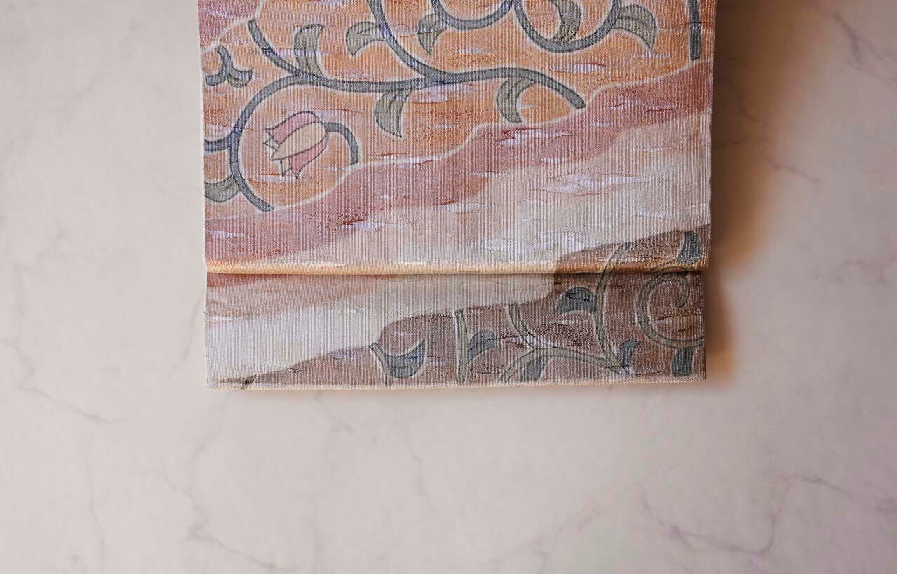 【ふくろ帯】銀色地 華唐草 ふくろ帯