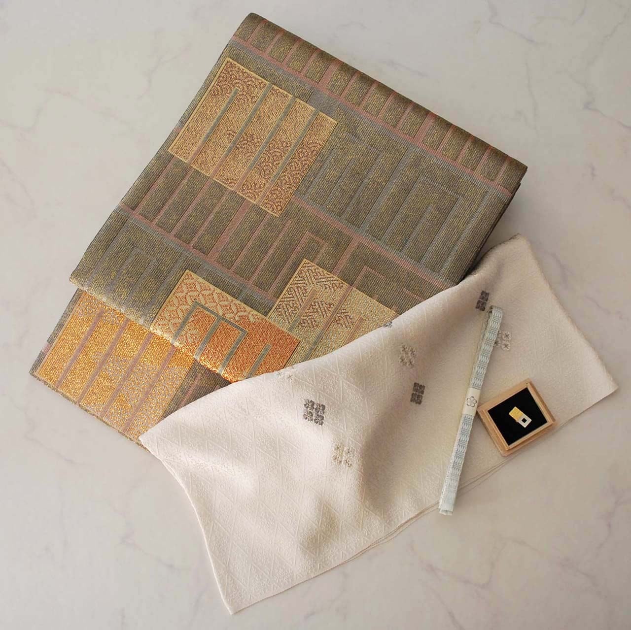 全体に微細な純金の輝きが織り込まれ、