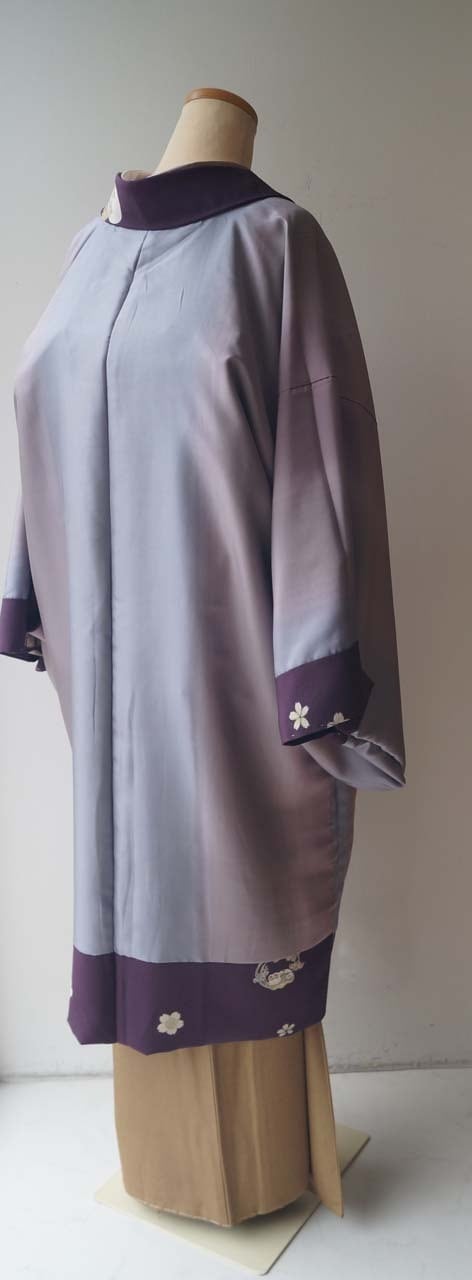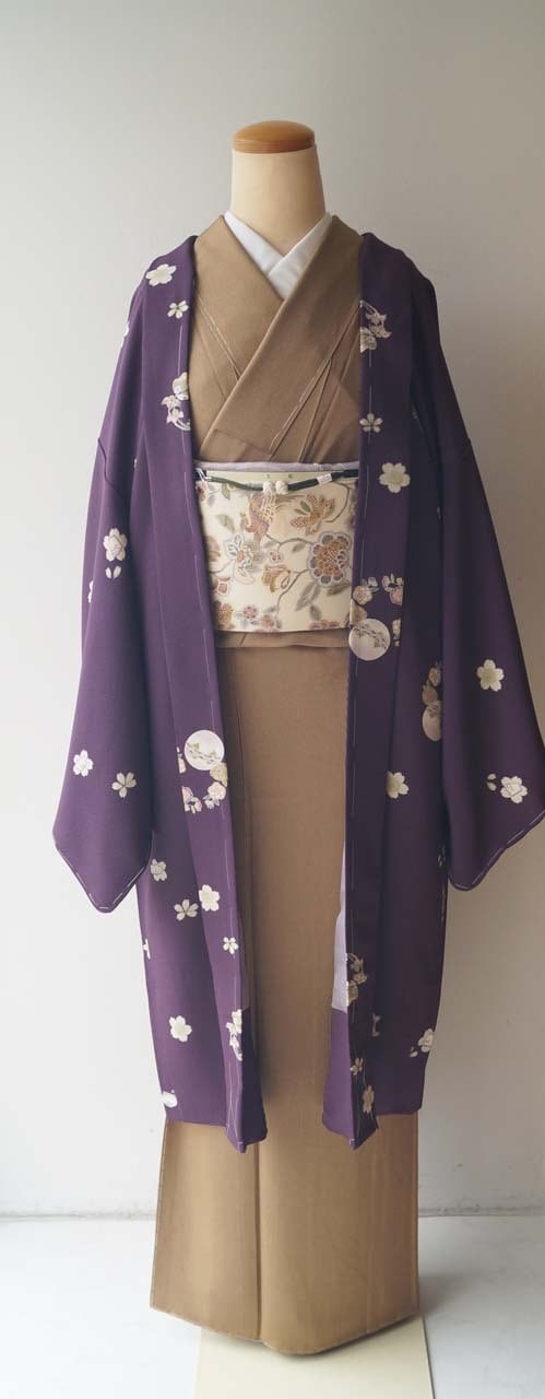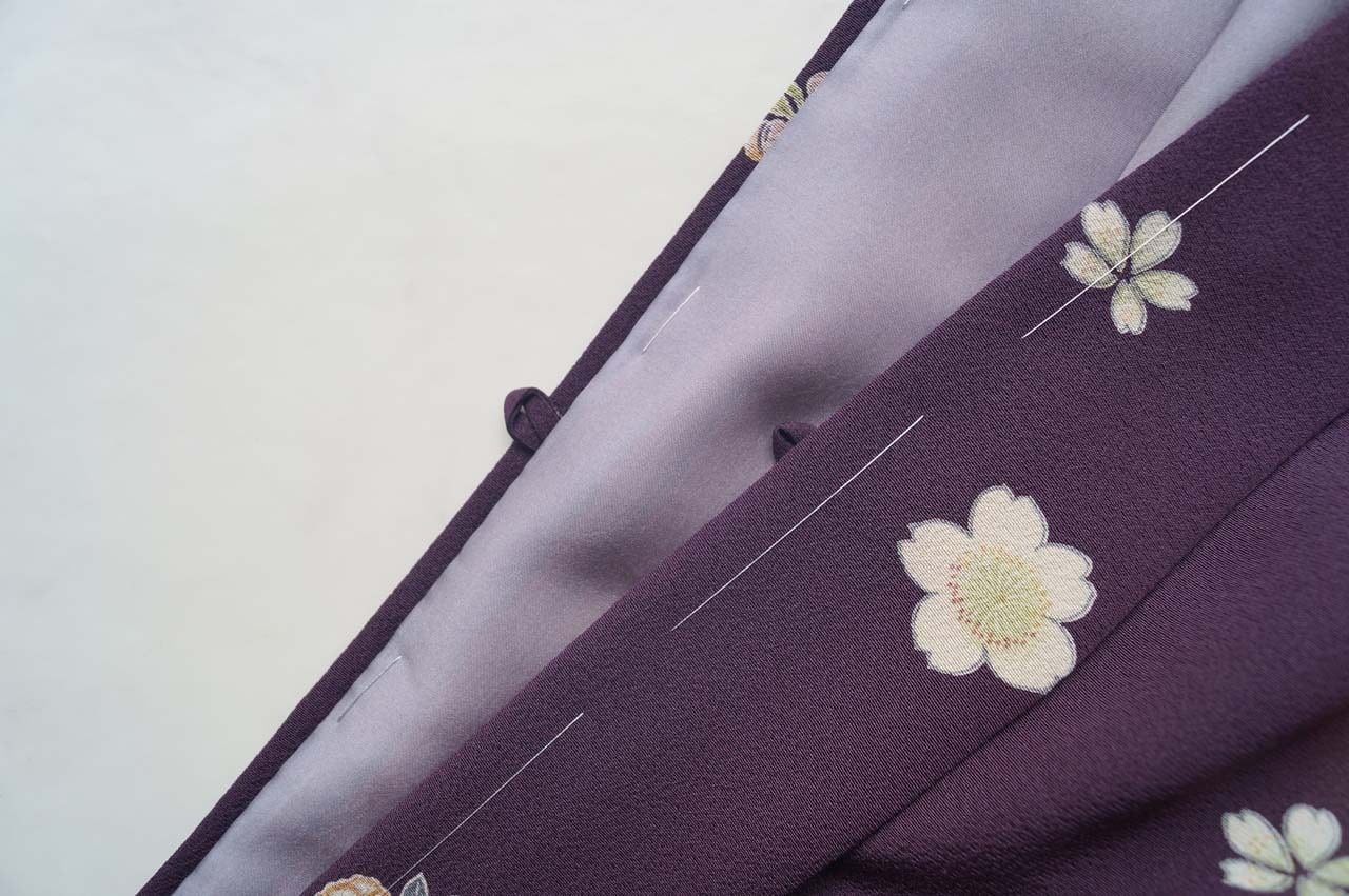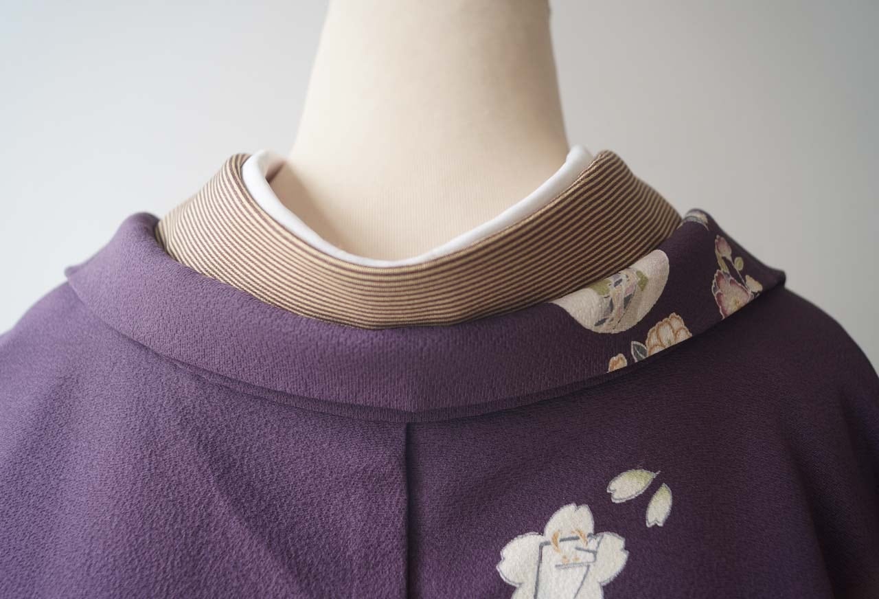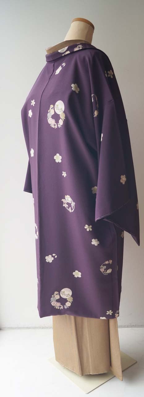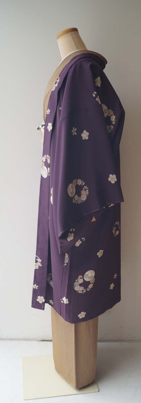 【袷羽織】紫紺色 さくらと花丸文 袷羽織