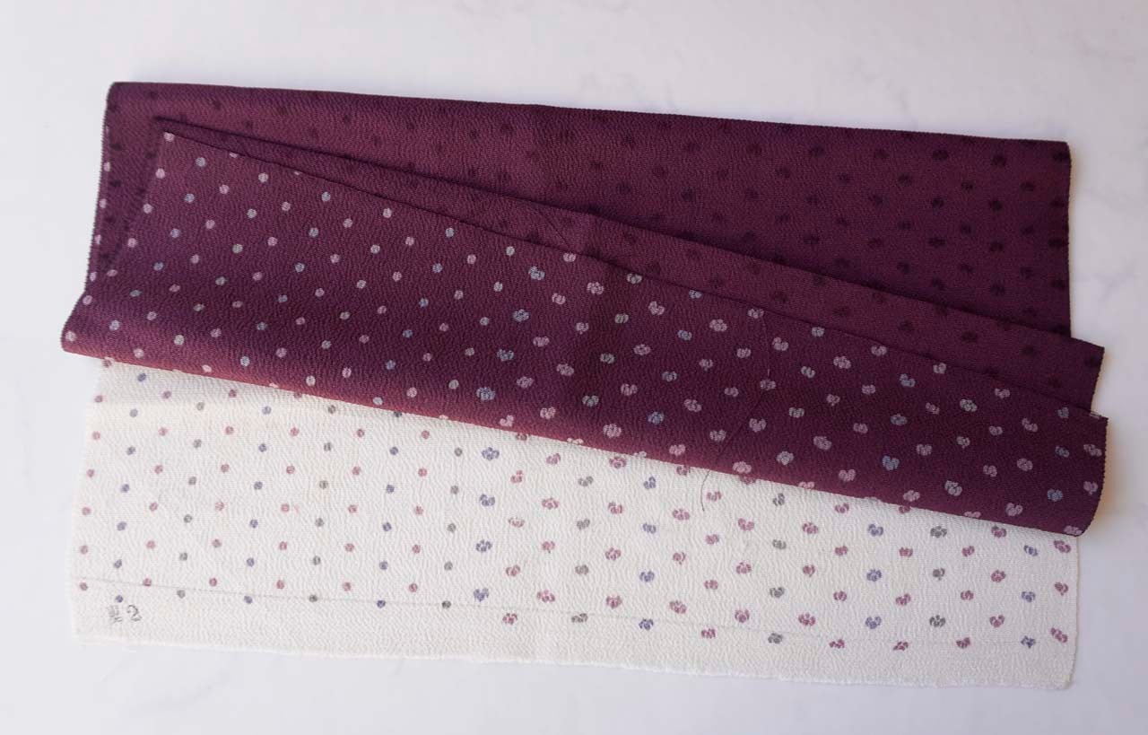 縮緬のお生地、美しい落ち感の着姿を作ります。